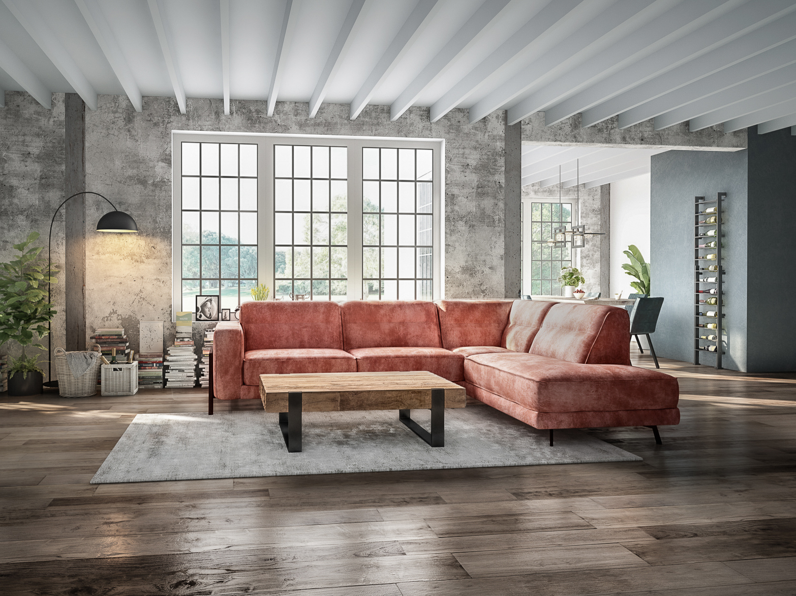 Deze bank is voorzien van een koudschuim vulling en nosag veren in de zitting, afgedekt met mix van comforel en visco en een polyether SG25 vulling in de rug. Veel modellen zijn ook leverbaar in een hoekopstelling, met open eiland of een chaise longue gedeelte. Dit verschilt per model.