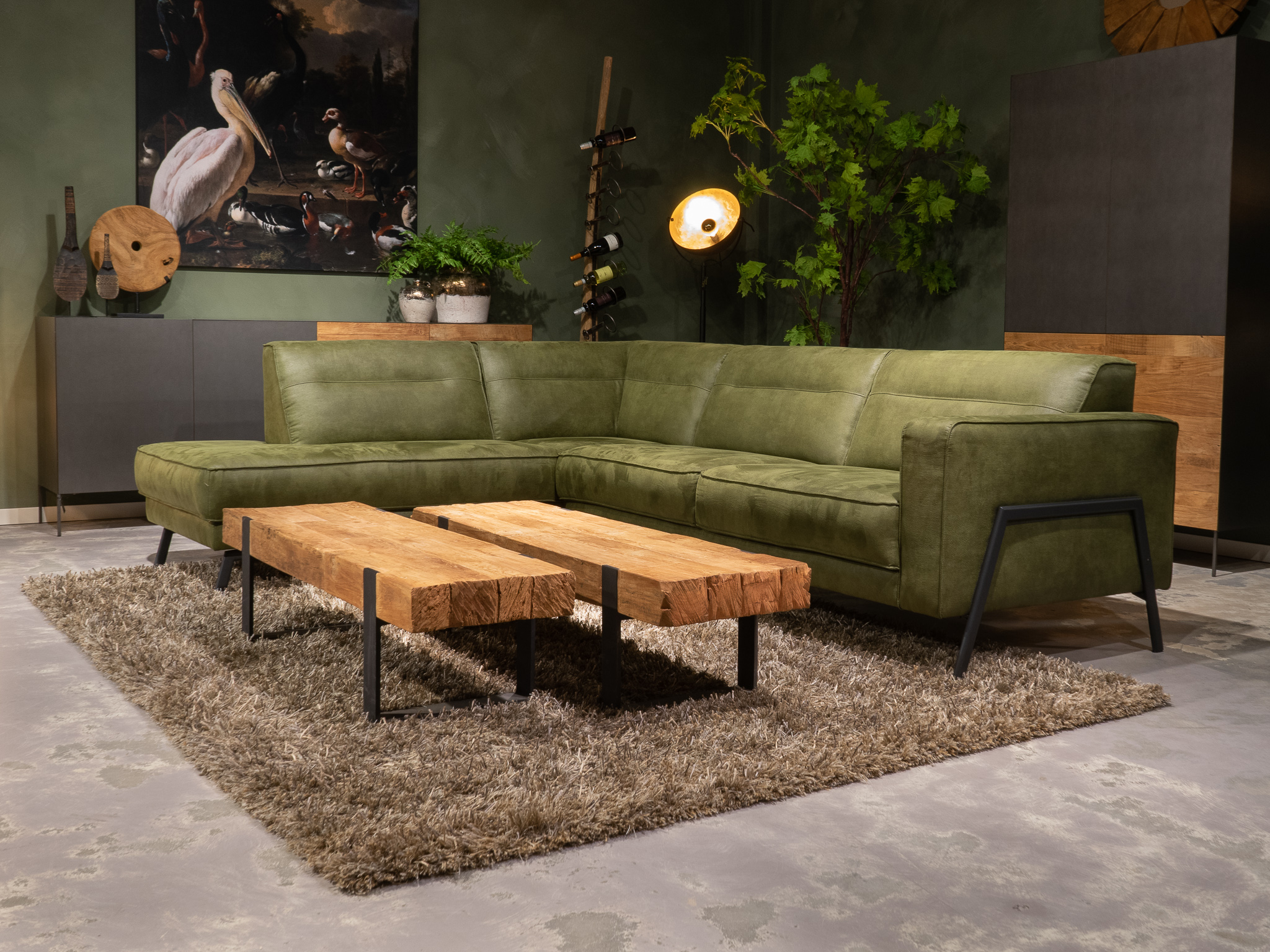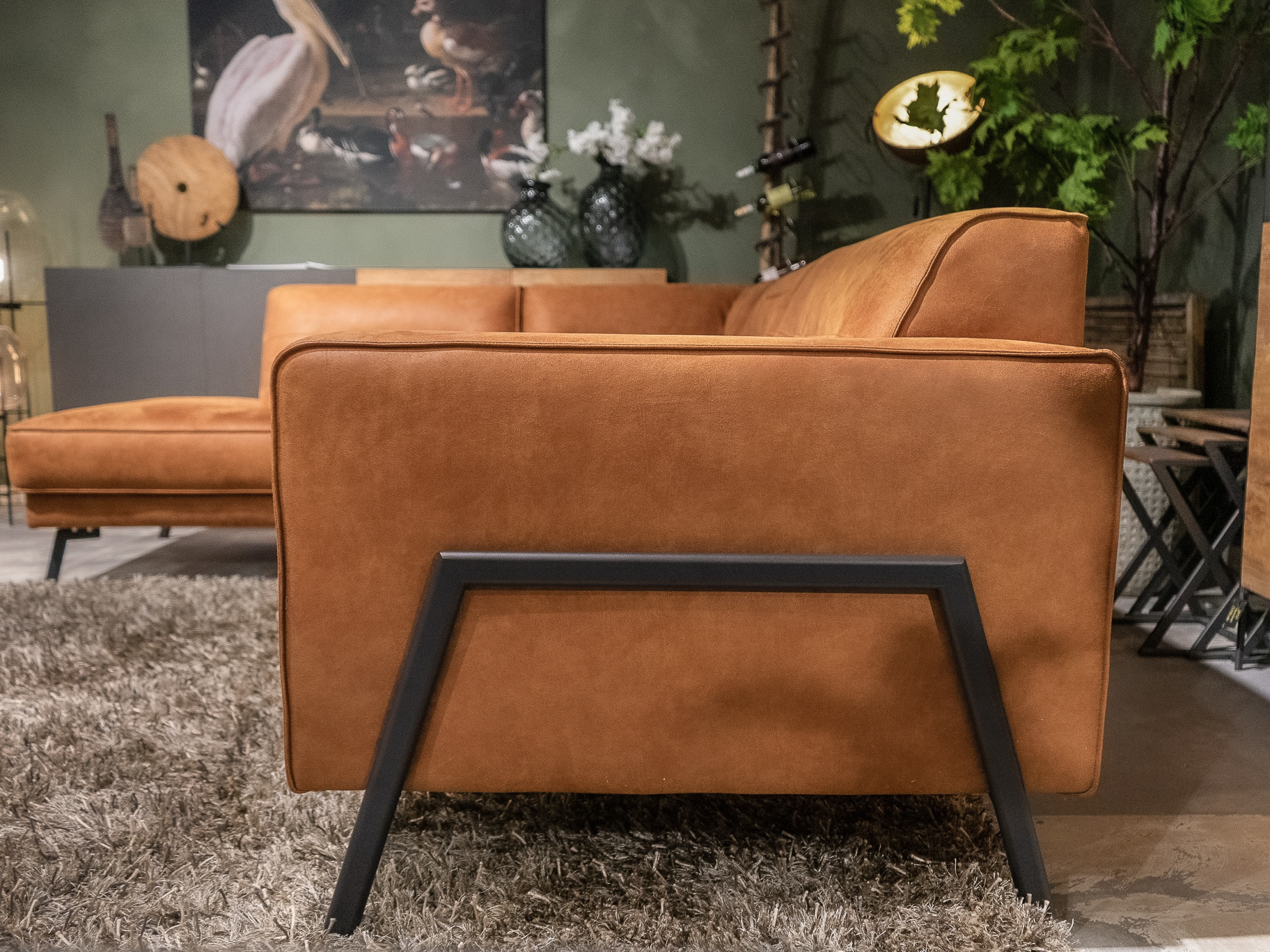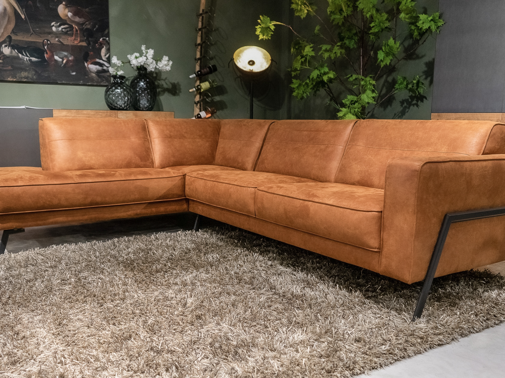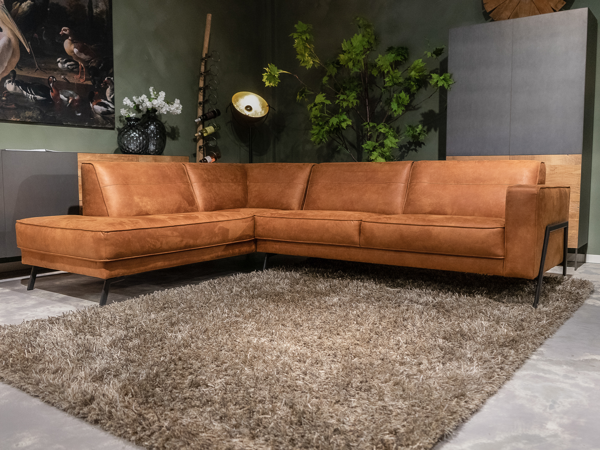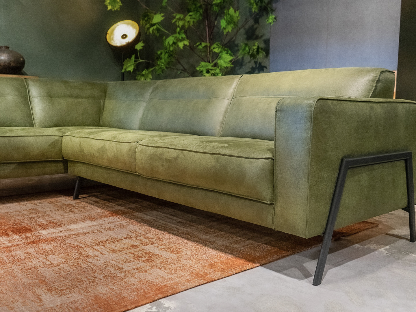 Dit model staat in Sliedrecht met een open eiland in de relax stof kleur Hunter. In Gramsbergen staat een hoekopstelling in velvet liver. In beide showrooms staan diverse banken gemaakt van dit leer en deze stof, daarnaast liggen in beide showrooms grote kleurstalen om goed kleur te kunnen bepalen.