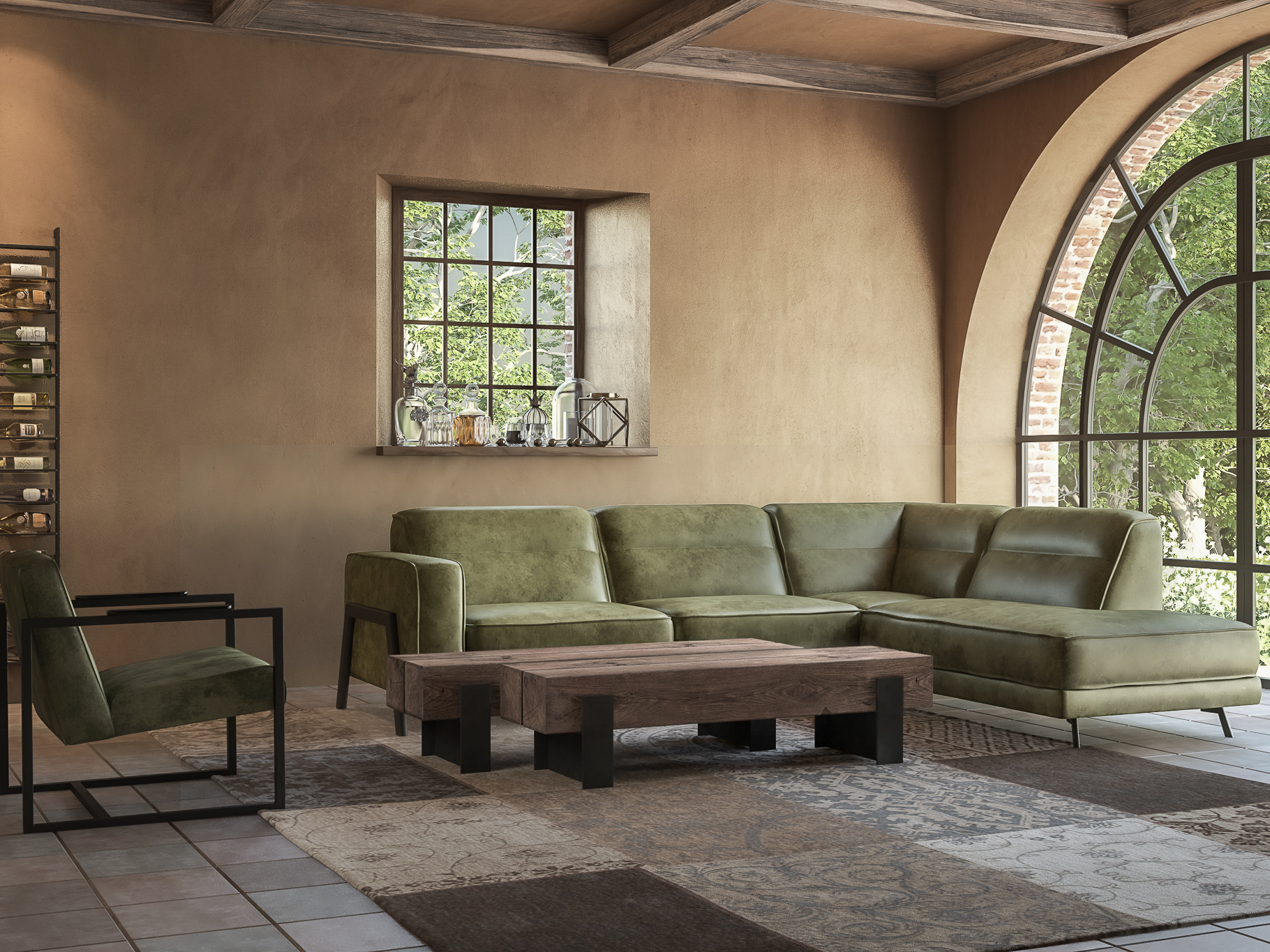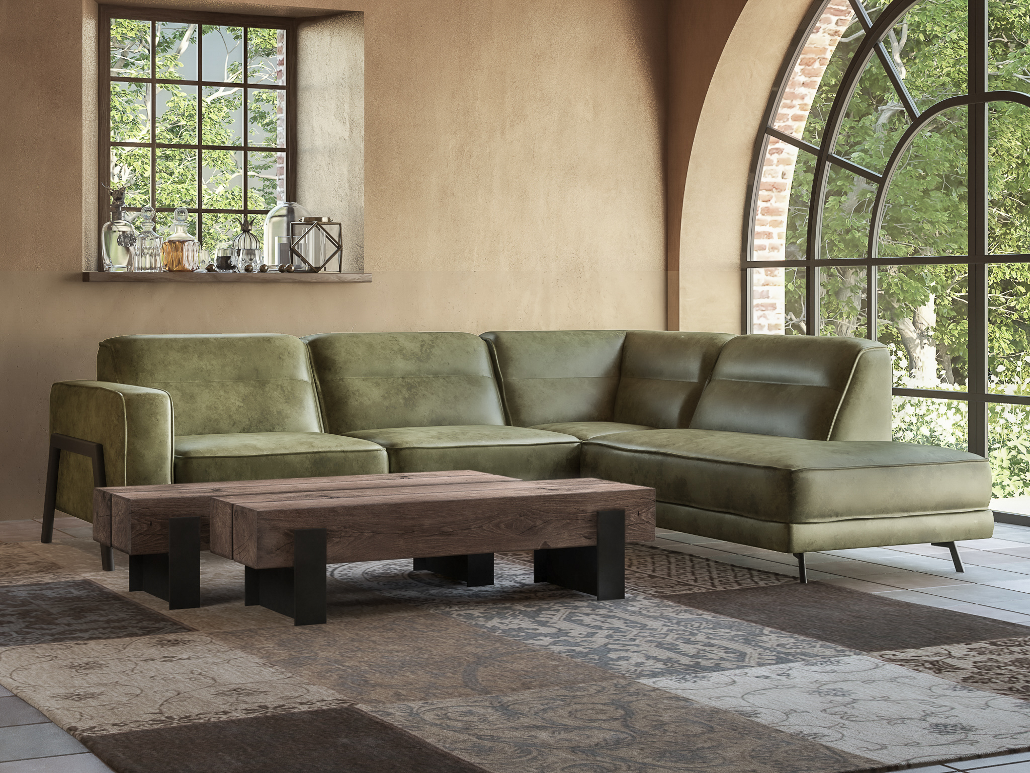 Het op deze bank verwerkte leer is van absolute topkwaliteit. De verwerkte huiden zijn afkomstig van Europese runderen waarbij uitsluitend de beste huiden geselecteerd worden. Middels een dubbele looiing en een speciale nabehandeling met wax en olie wordt een uniek doorgekleurd leer verkregen met een ruige stoere uitstraling. Ondanks deze ruige uitstraling heeft het leer een zeer comfortabele en soepele feel. Het leder is 1,3 tot 1,5mm dik. Het natuurlijke ongecorrigeerde karakter wordt gekenmerkt door de aanwezigheid van littekens, hoornsteken, schrammen en andere oneffenheden. Het op deze bank gebruikte leer heeft een middelsterke beschermende finish gekregen en is beperkt vocht- en vuilwerend. Het is het soort leer wat met de jaren alleen maar mooier wordt.