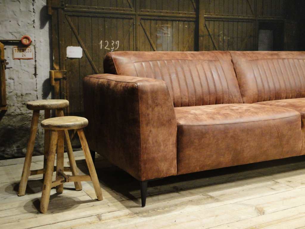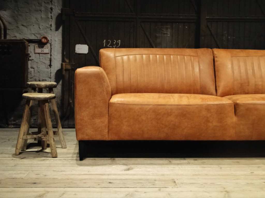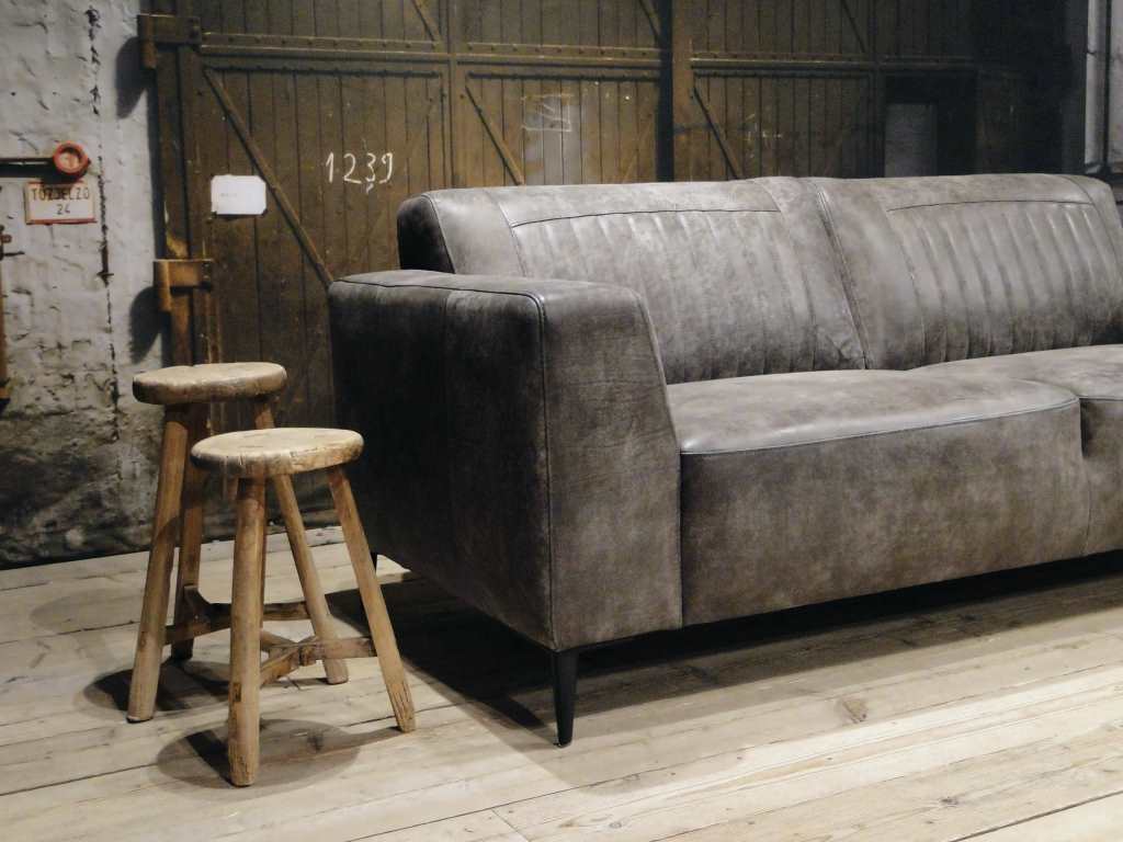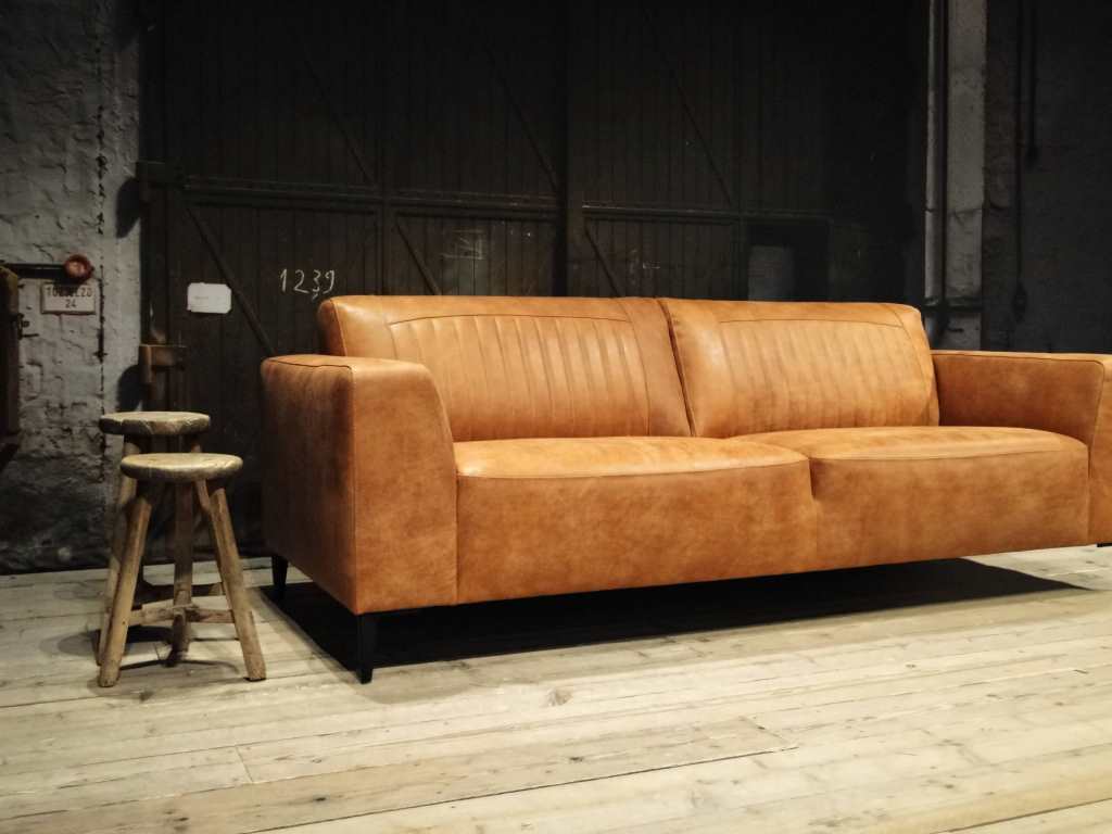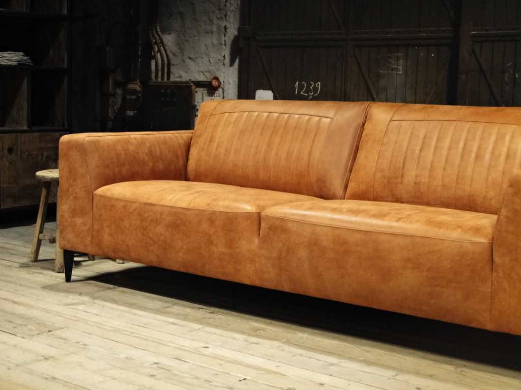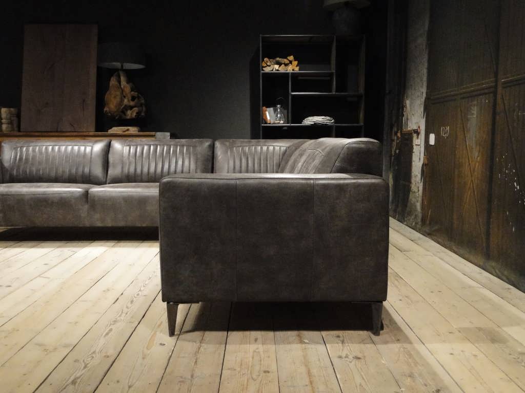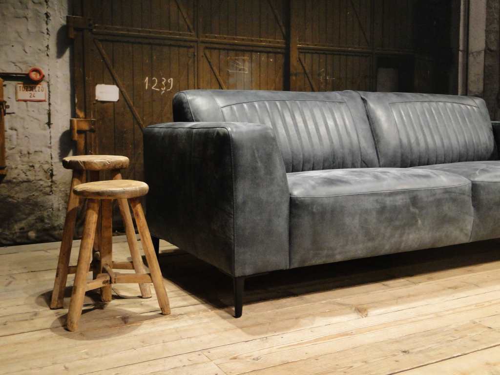Het op deze bank verwerkte leer is van absolute topkwaliteit. De verwerkte huiden zijn afkomstig van Europese runderen waarbij uitsluitend de beste huiden geselecteerd worden. Middels een dubbele looiing en een speciale nabehandeling met wax en olie wordt een uniek doorgekleurd leer verkregen met een ruige stoere uitstraling. Ondanks deze ruige uitstraling heeft het leer een zeer comfortabele en soepele feel. Het leder is 1,3 tot 1,5mm dik. Het natuurlijke ongecorrigeerde karakter wordt gekenmerkt door de aanwezigheid van littekens, hoornsteken, schrammen en andere oneffenheden. Het op deze bank gebruikte leer heeft een middelsterke beschermende finish gekregen en is beperkt vocht- en vuilwerend. Het is het soort leer wat met de jaren alleen maar mooier wordt.
