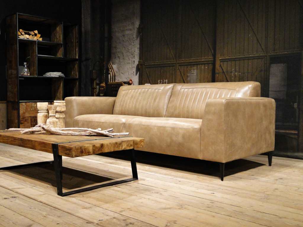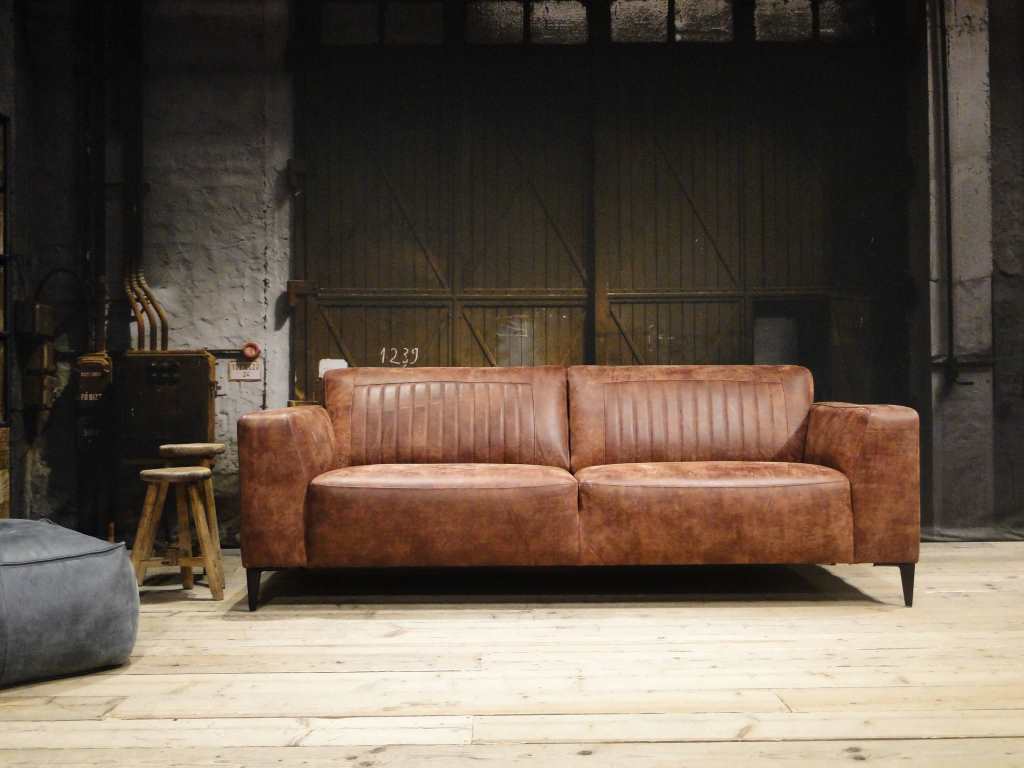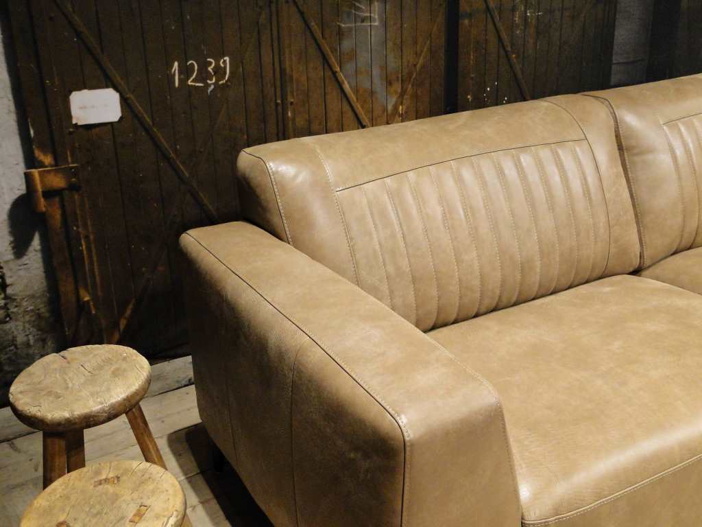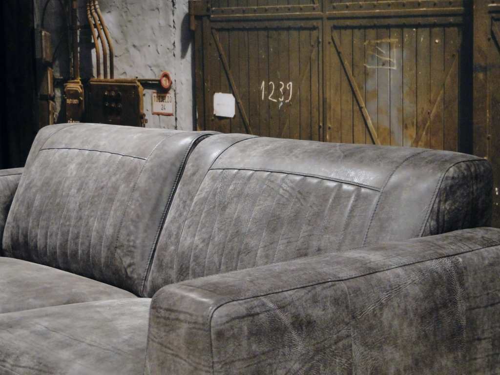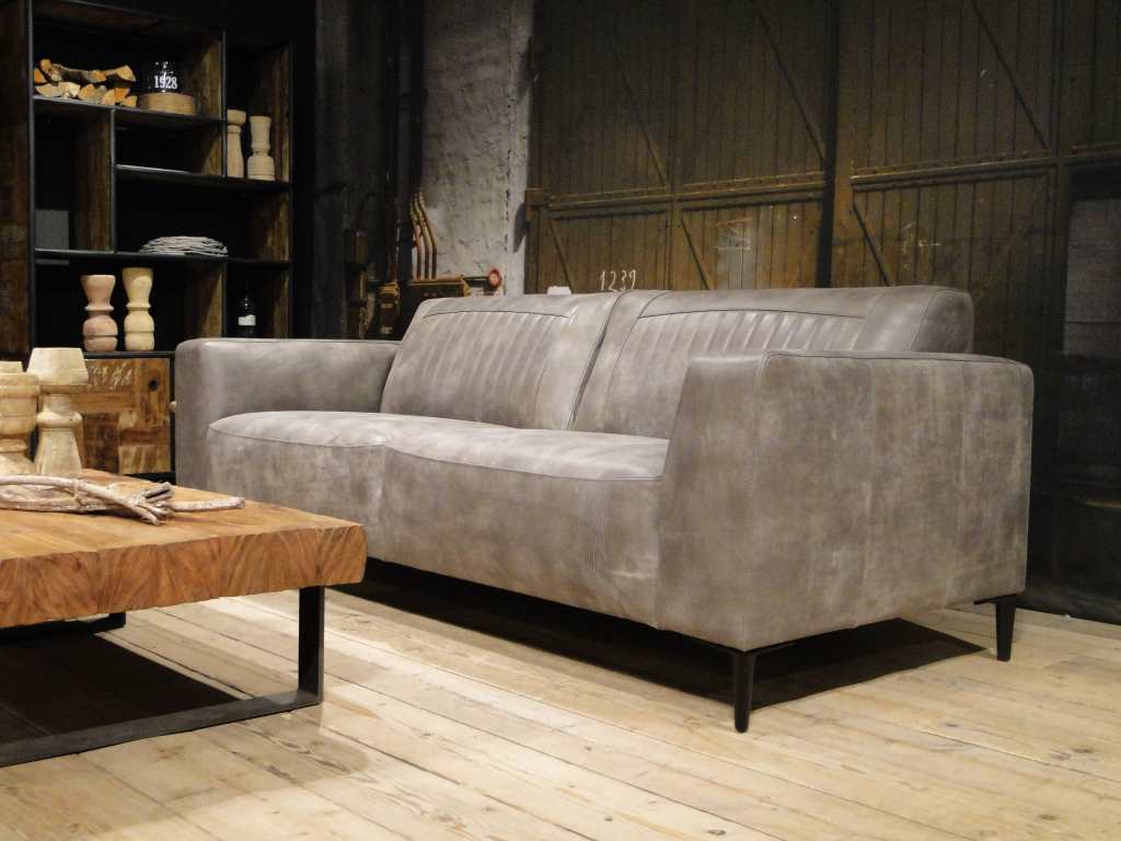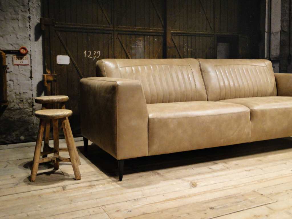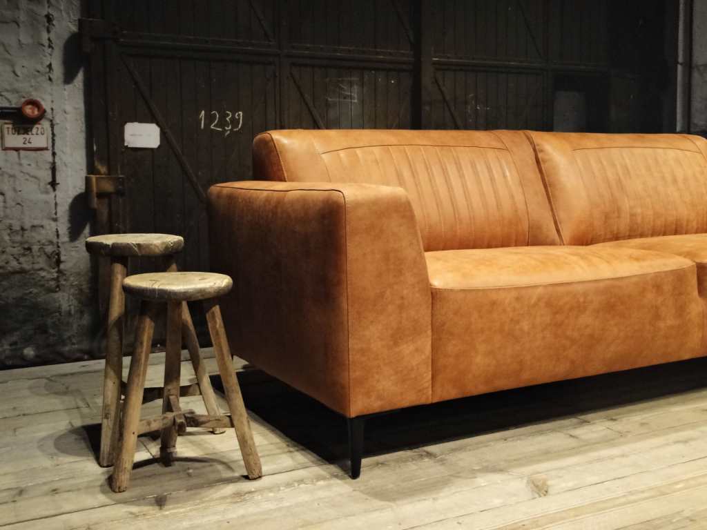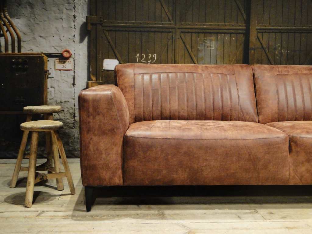 Het op deze bank verwerkte leer is van absolute topkwaliteit. De verwerkte huiden zijn afkomstig van Europese runderen waarbij uitsluitend de beste huiden geselecteerd worden. Middels een dubbele looiing en een speciale nabehandeling met wax en olie wordt een uniek doorgekleurd leer verkregen met een ruige stoere uitstraling. Ondanks deze ruige uitstraling heeft het leer een zeer comfortabele en soepele feel. Het leder is 1,3 tot 1,5mm dik. Het natuurlijke ongecorrigeerde karakter wordt gekenmerkt door de aanwezigheid van littekens, hoornsteken, schrammen en andere oneffenheden. Het op deze bank gebruikte leer heeft een middelsterke beschermende finish gekregen en is beperkt vocht- en vuilwerend. Het is het soort leer wat met de jaren alleen maar mooier wordt.