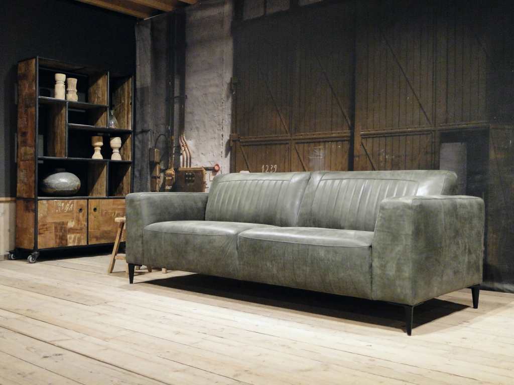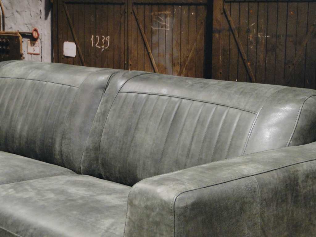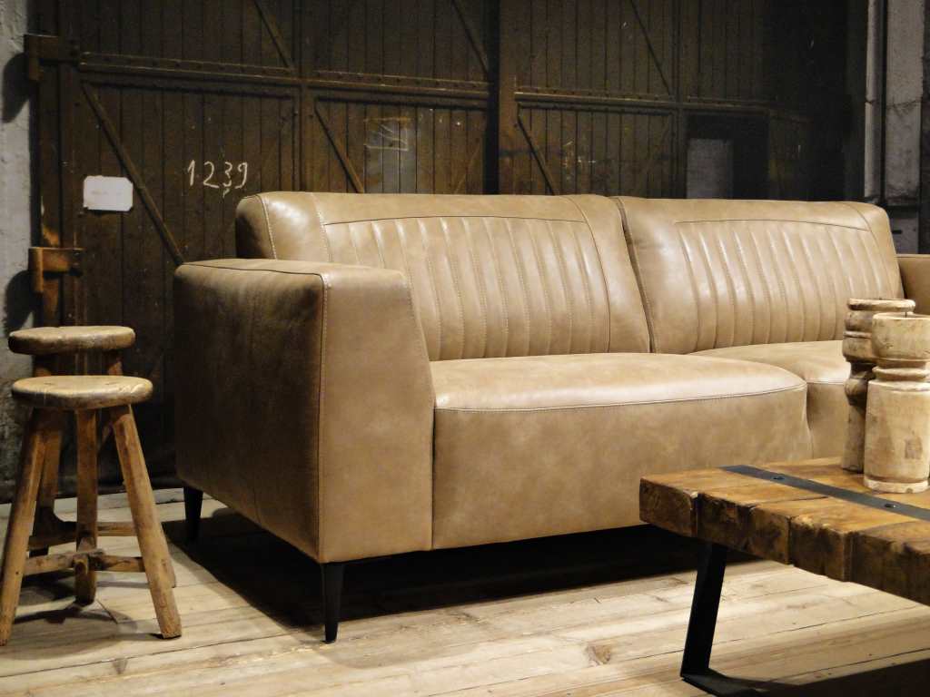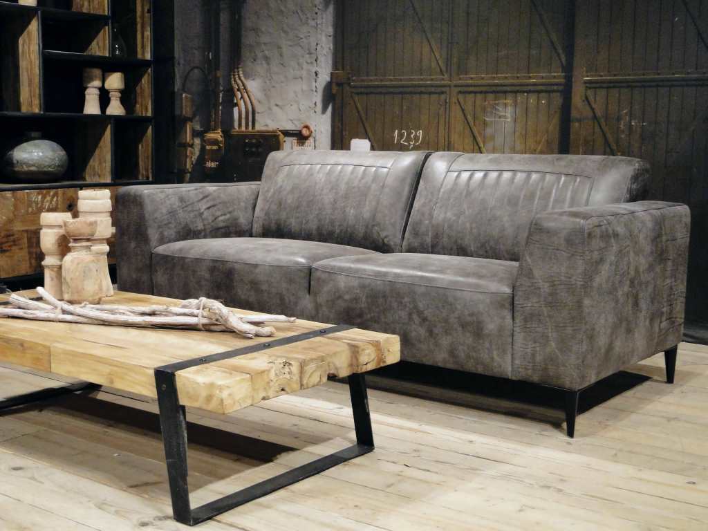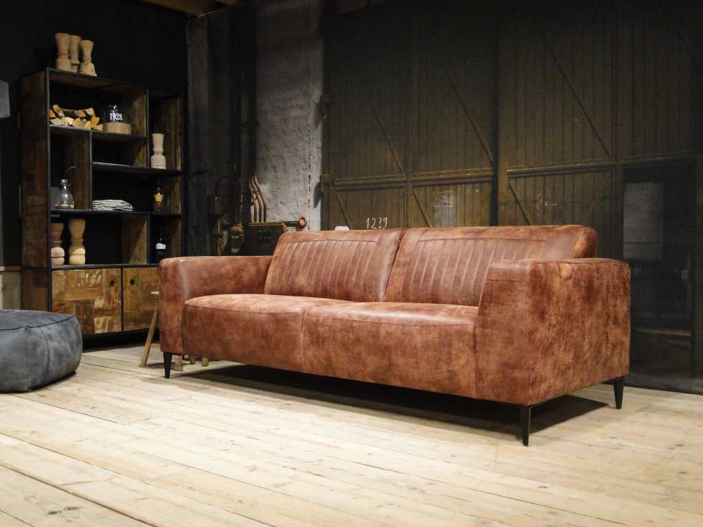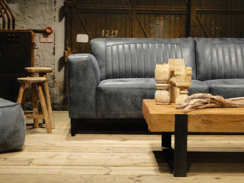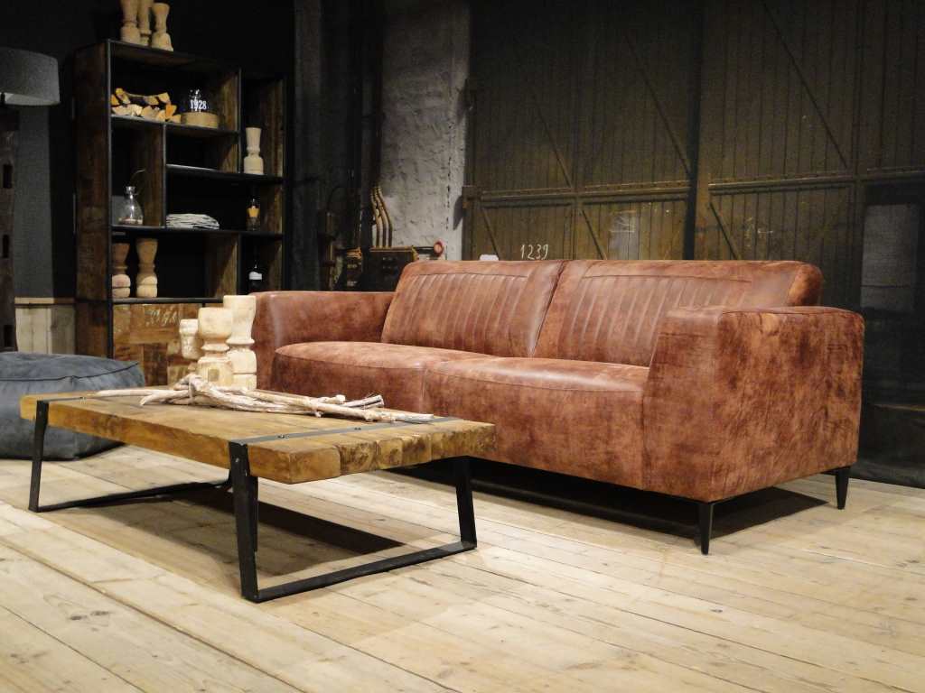 Het op deze bank verwerkte leer is van absolute topkwaliteit. De verwerkte huiden zijn afkomstig van Europese runderen waarbij uitsluitend de beste huiden geselecteerd worden. Middels een dubbele looiing en een speciale nabehandeling met wax en olie wordt een uniek doorgekleurd leer verkregen met een ruige stoere uitstraling. Ondanks deze ruige uitstraling heeft het leer een zeer comfortabele en soepele feel. Het leder is 1,3 tot 1,5mm dik. Het natuurlijke ongecorrigeerde karakter wordt gekenmerkt door de aanwezigheid van littekens, hoornsteken, schrammen en andere oneffenheden. Het op deze bank gebruikte leer heeft een middelsterke beschermende finish gekregen en is beperkt vocht- en vuilwerend. Het is het soort leer wat met de jaren alleen maar mooier wordt.