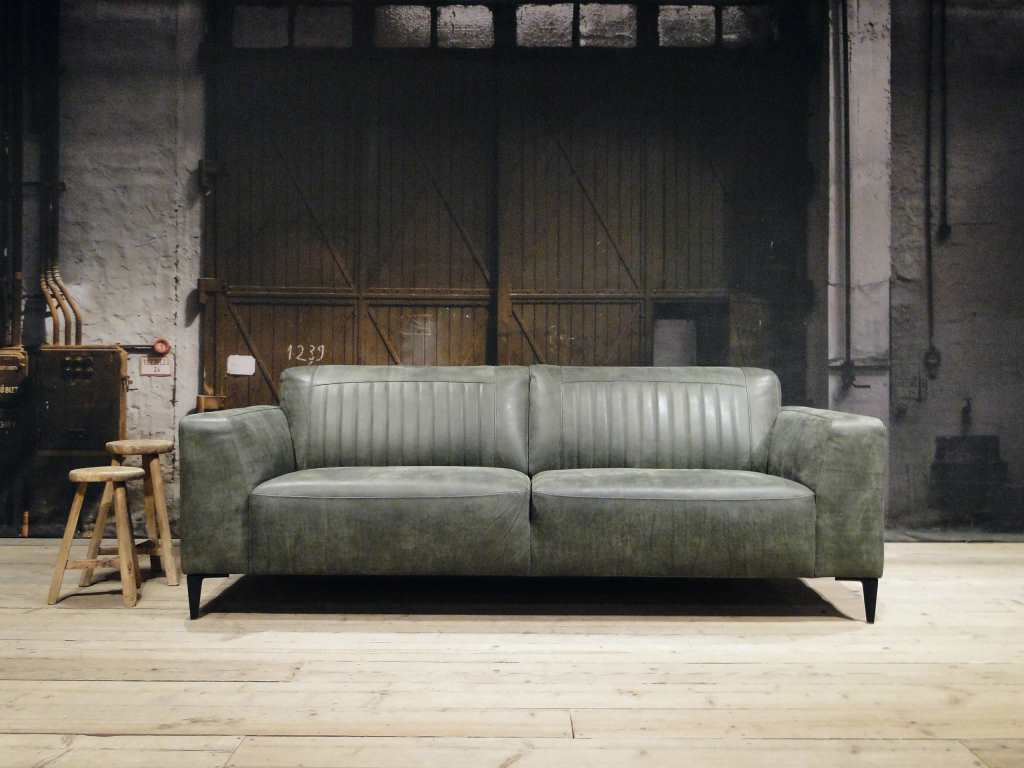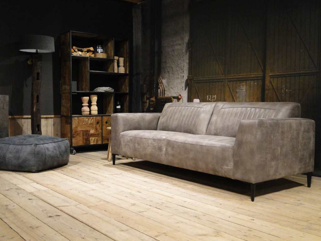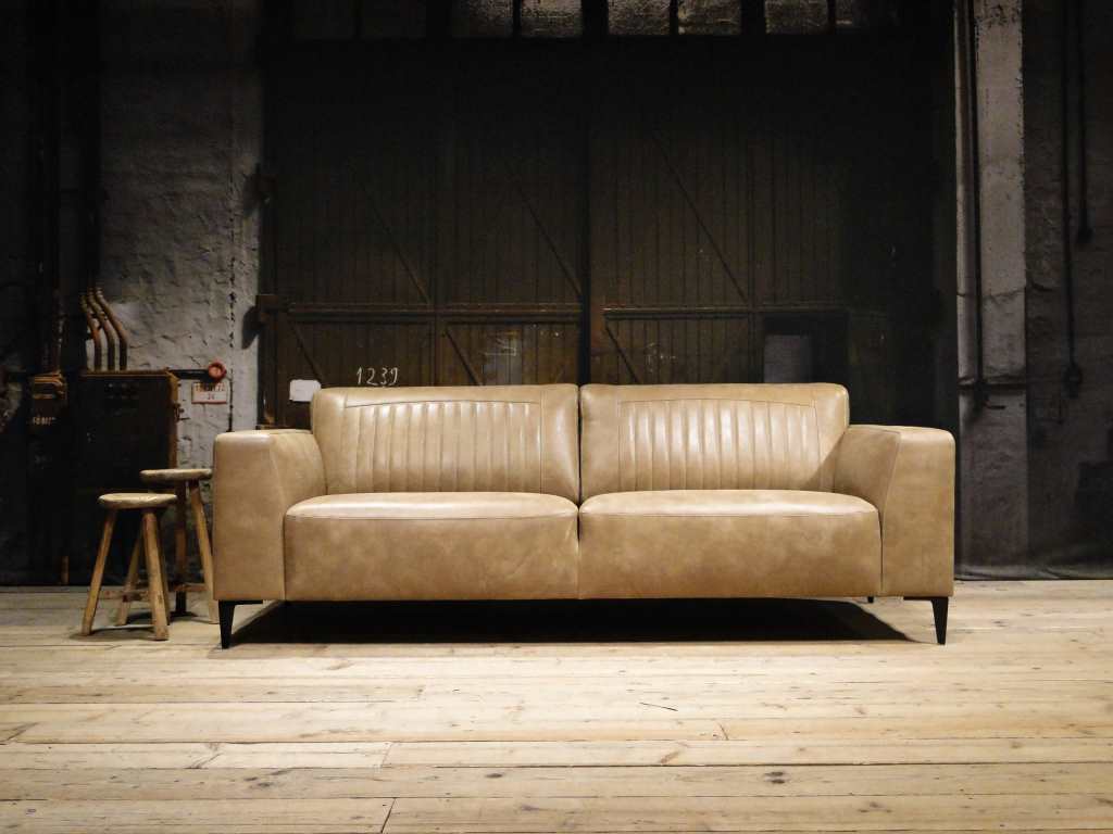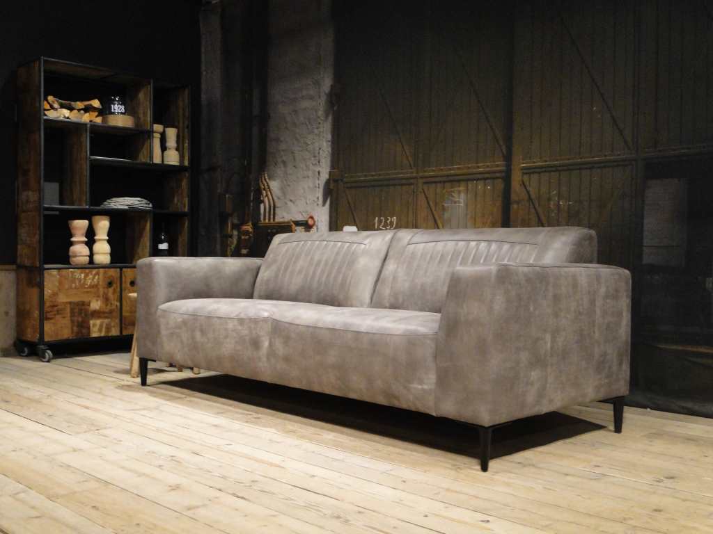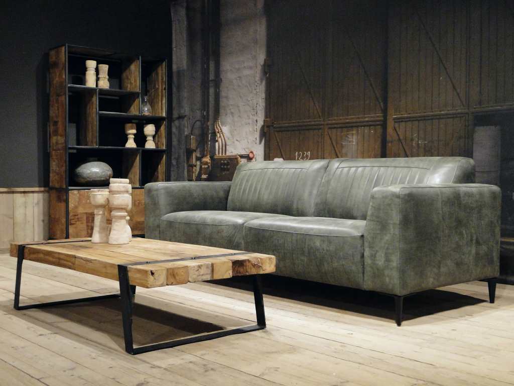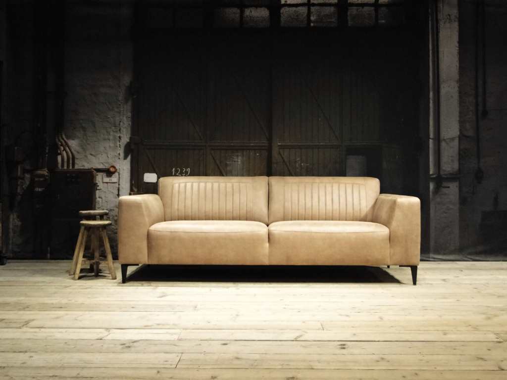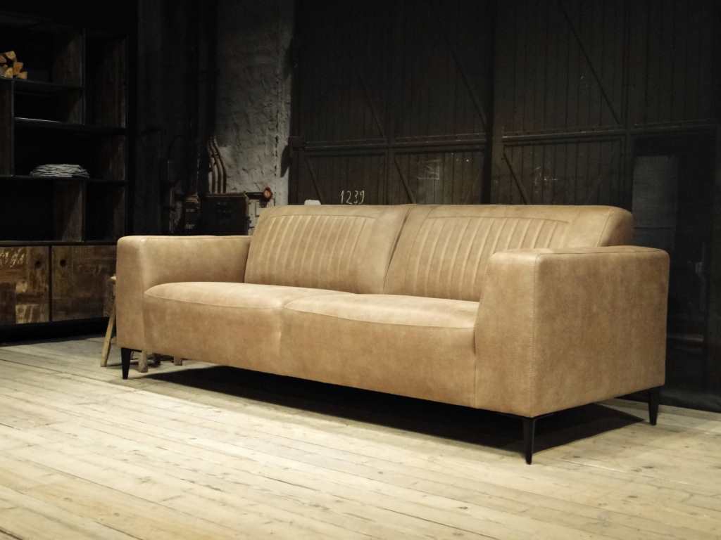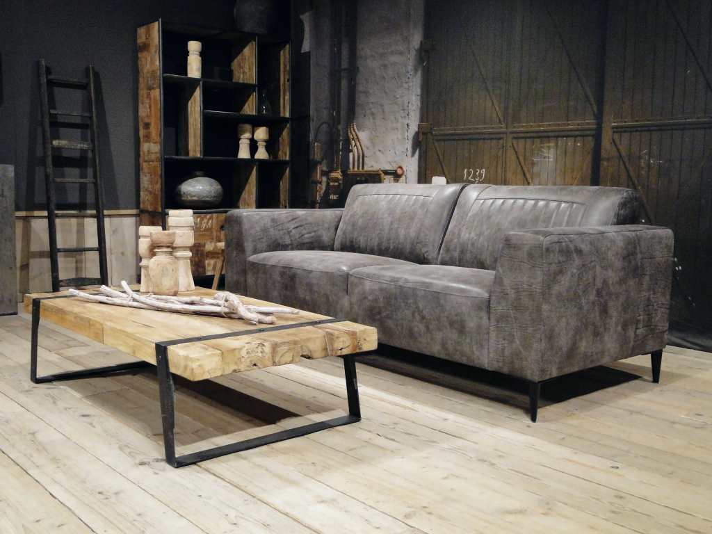 Het op deze bank verwerkte leer is van absolute topkwaliteit. De verwerkte huiden zijn afkomstig van Europese runderen waarbij uitsluitend de beste huiden geselecteerd worden. Middels een dubbele looiing en een speciale nabehandeling met wax en olie wordt een uniek doorgekleurd leer verkregen met een ruige stoere uitstraling. Ondanks deze ruige uitstraling heeft het leer een zeer comfortabele en soepele feel. Het leder is 1,3 tot 1,5mm dik. Het natuurlijke ongecorrigeerde karakter wordt gekenmerkt door de aanwezigheid van littekens, hoornsteken, schrammen en andere oneffenheden. Het op deze bank gebruikte leer heeft een middelsterke beschermende finish gekregen en is beperkt vocht- en vuilwerend. Het is het soort leer wat met de jaren alleen maar mooier wordt.