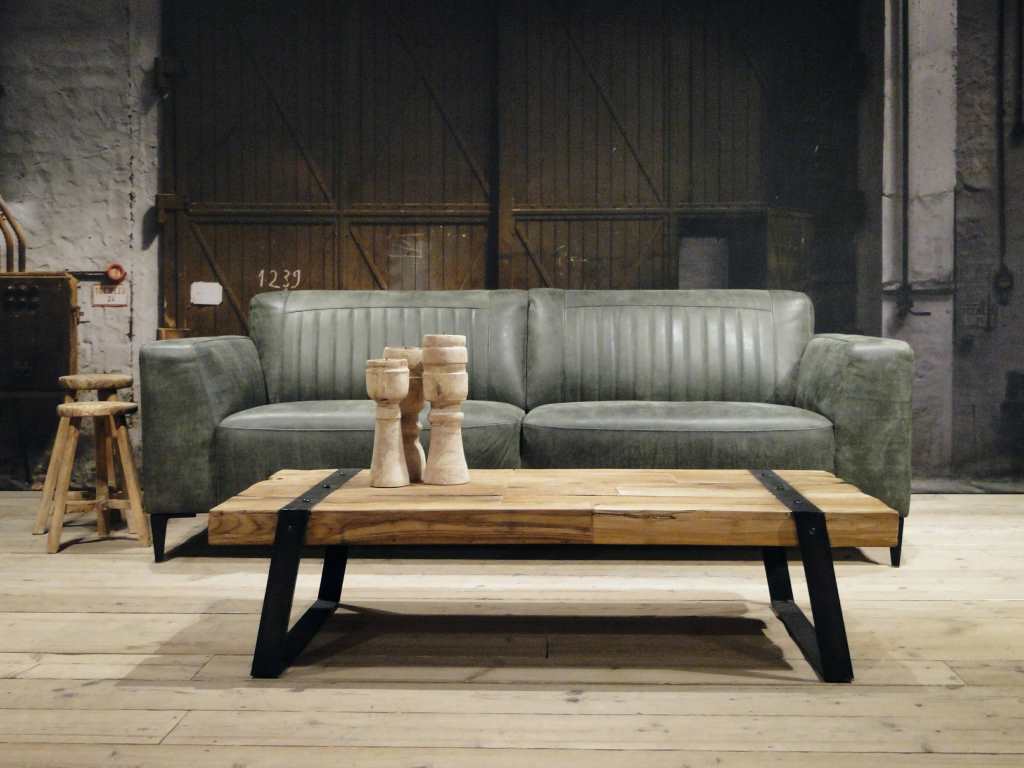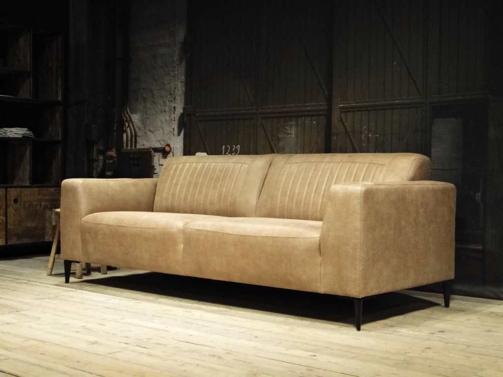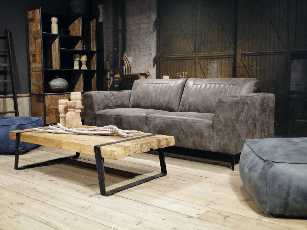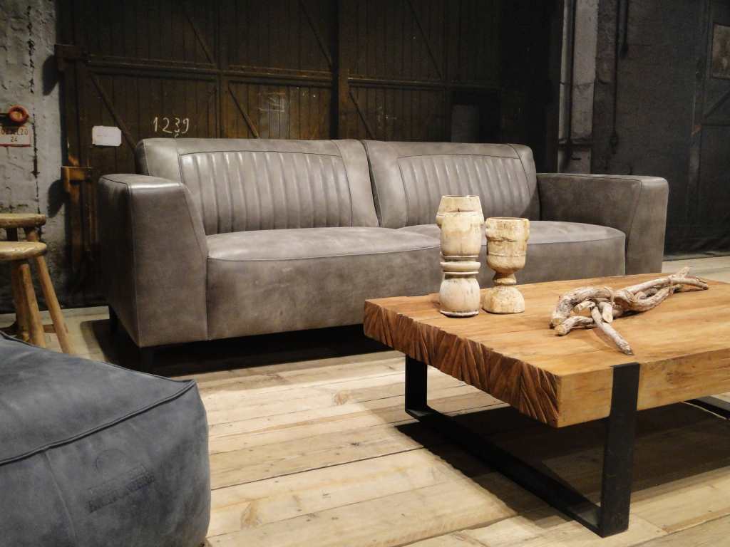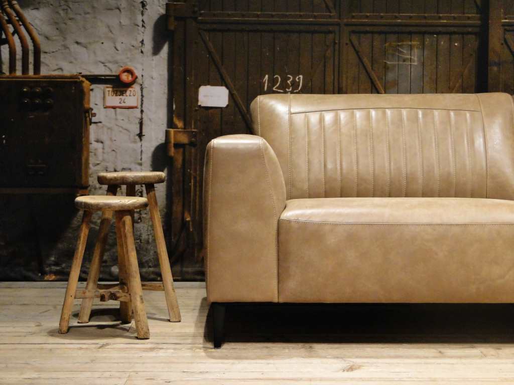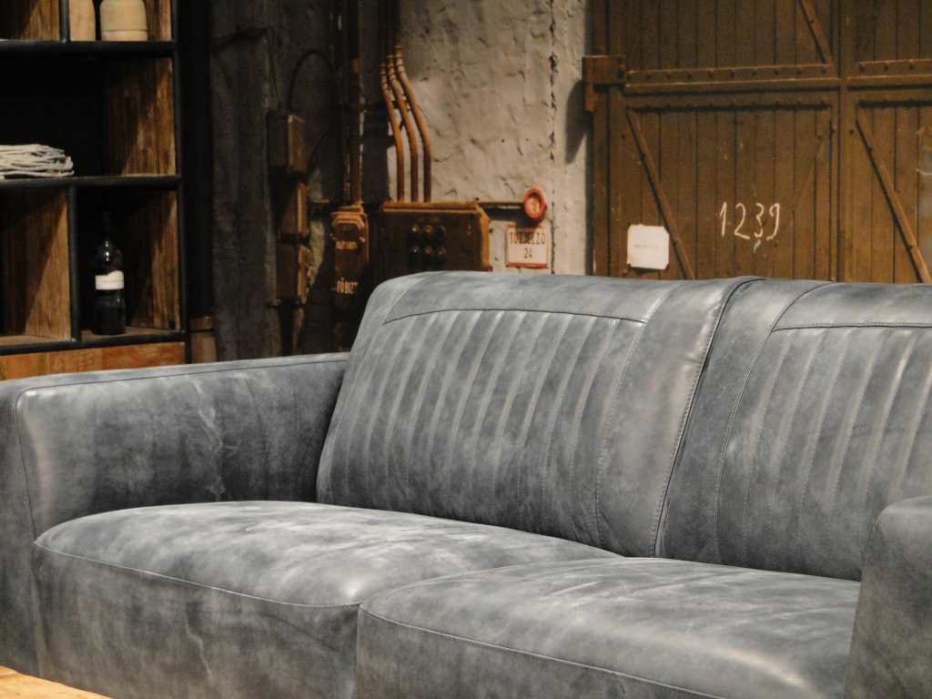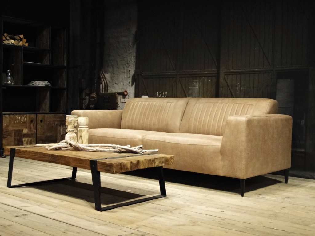 Het op deze bank verwerkte leer is van absolute topkwaliteit. De verwerkte huiden zijn afkomstig van Europese runderen waarbij uitsluitend de beste huiden geselecteerd worden. Middels een dubbele looiing en een speciale nabehandeling met wax en olie wordt een uniek doorgekleurd leer verkregen met een ruige stoere uitstraling. Ondanks deze ruige uitstraling heeft het leer een zeer comfortabele en soepele feel. Het leder is 1,3 tot 1,5mm dik. Het natuurlijke ongecorrigeerde karakter wordt gekenmerkt door de aanwezigheid van littekens, hoornsteken, schrammen en andere oneffenheden. Het op deze bank gebruikte leer heeft een middelsterke beschermende finish gekregen en is beperkt vocht- en vuilwerend. Het is het soort leer wat met de jaren alleen maar mooier wordt.