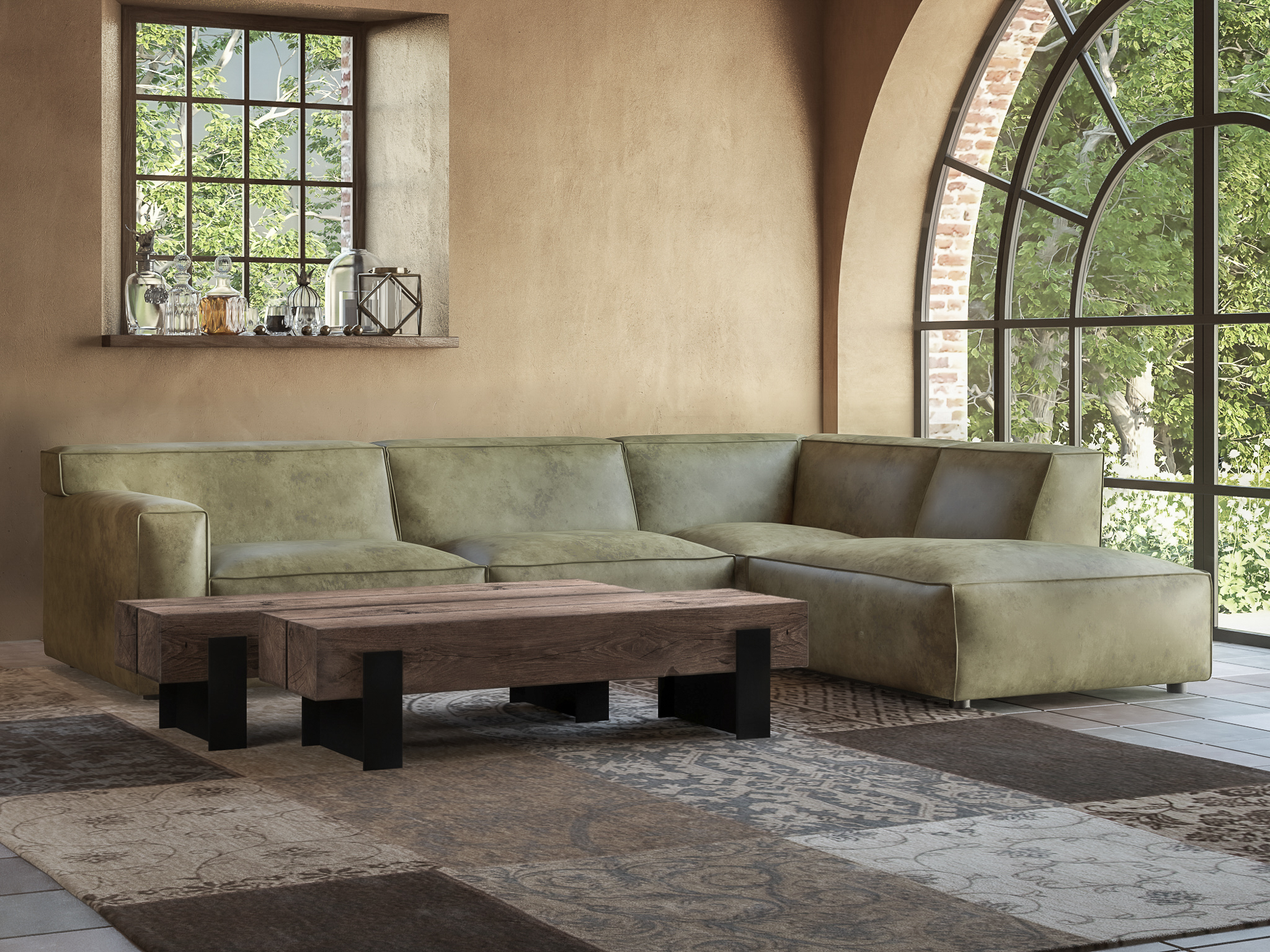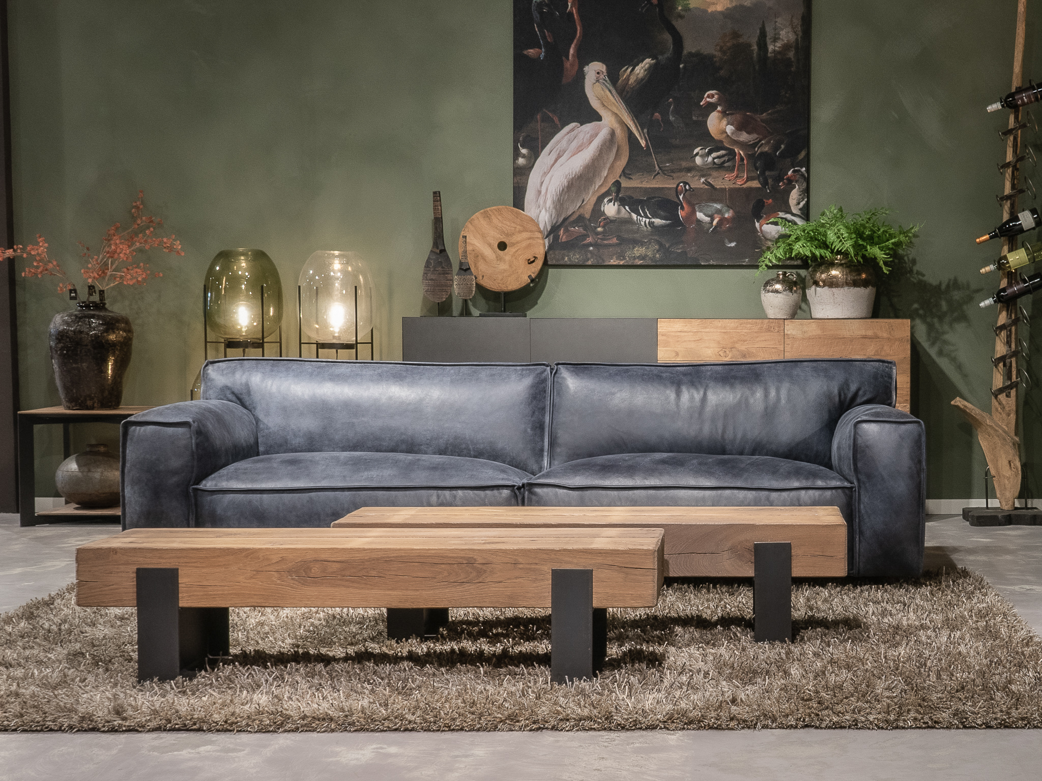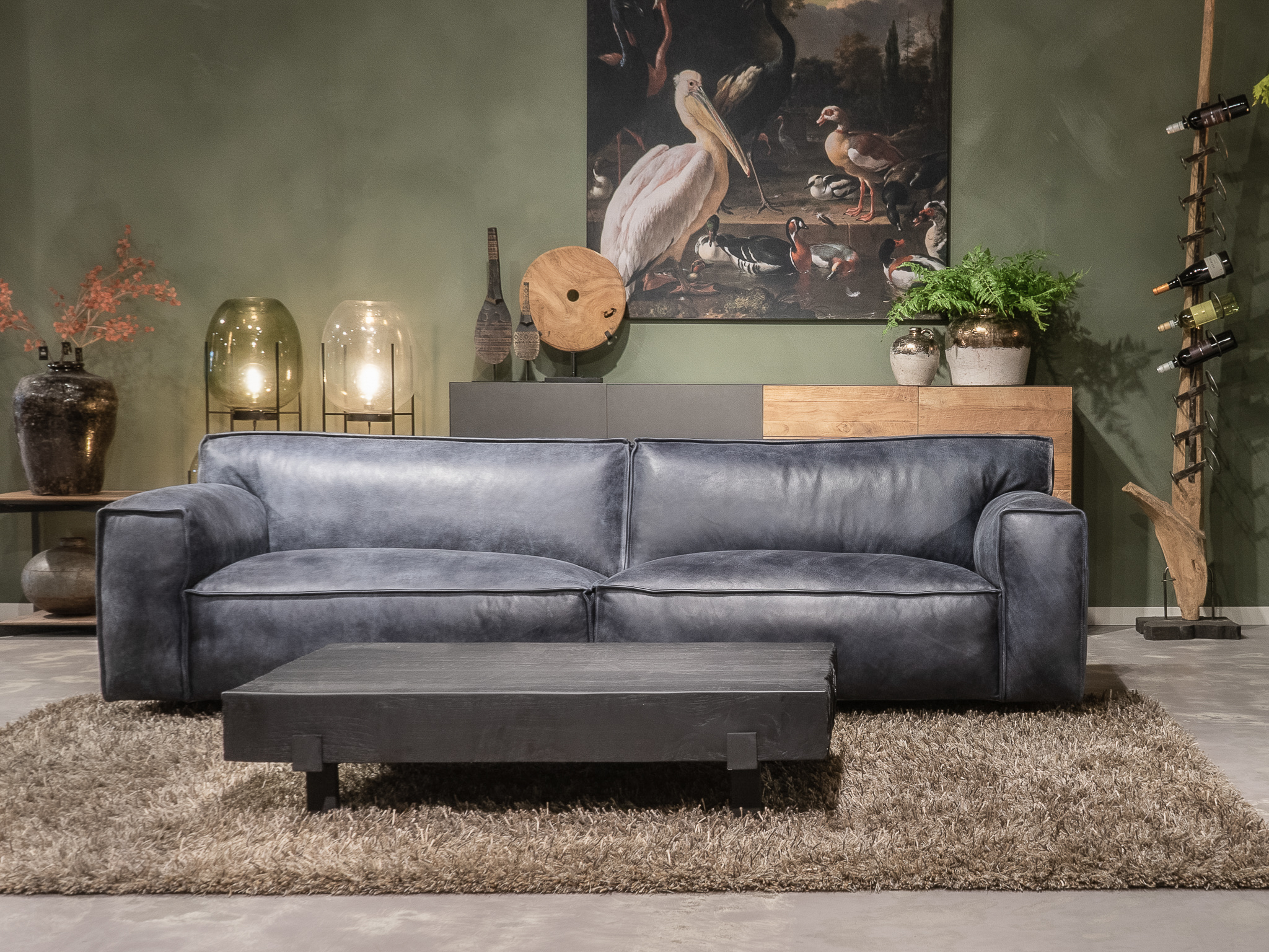 Het op deze bank verwerkte leer is van absolute topkwaliteit. De verwerkte huiden zijn afkomstig van Europese runderen waarbij uitsluitend de beste huiden geselecteerd worden. Middels een dubbele looiing en een speciale nabehandeling met wax en olie wordt een uniek doorgekleurd leer verkregen met een ruige stoere uitstraling. Ondanks deze ruige uitstraling heeft het leer een zeer comfortabele en soepele feel. Het leder is 1,3 tot 1,5mm dik. Het natuurlijke ongecorrigeerde karakter wordt gekenmerkt door de aanwezigheid van littekens, hoornsteken, schrammen en andere oneffenheden. Het op deze bank gebruikte leer heeft een middelsterke beschermende finish gekregen en is beperkt vocht- en vuilwerend. Het is het soort leer wat met de jaren alleen maar mooier wordt.