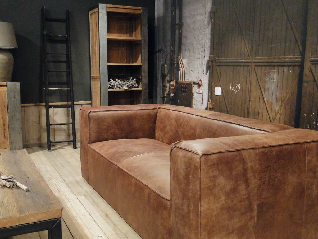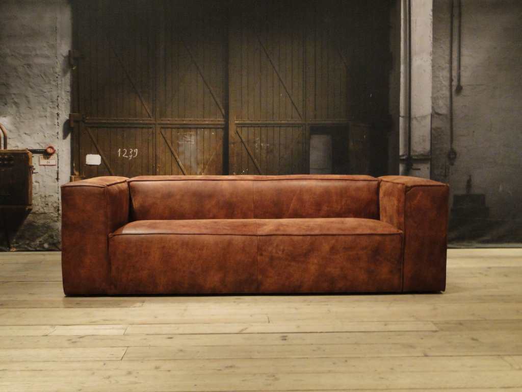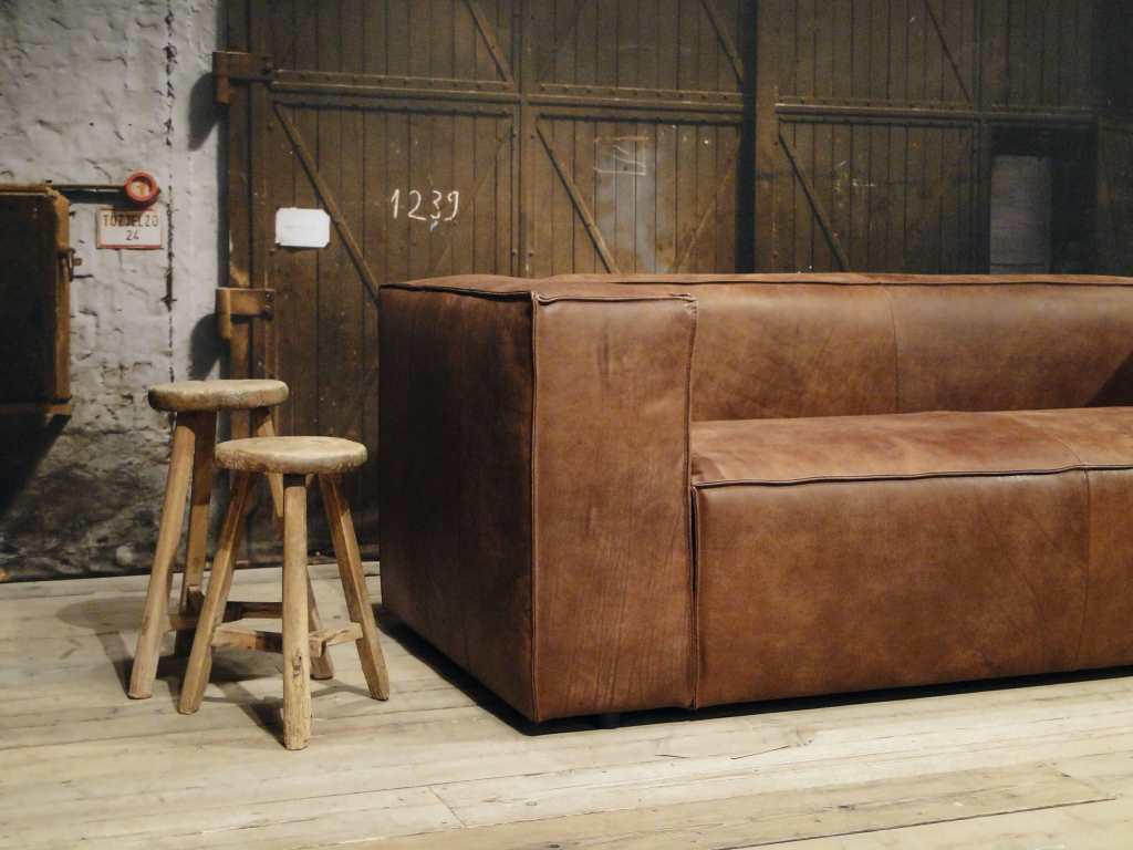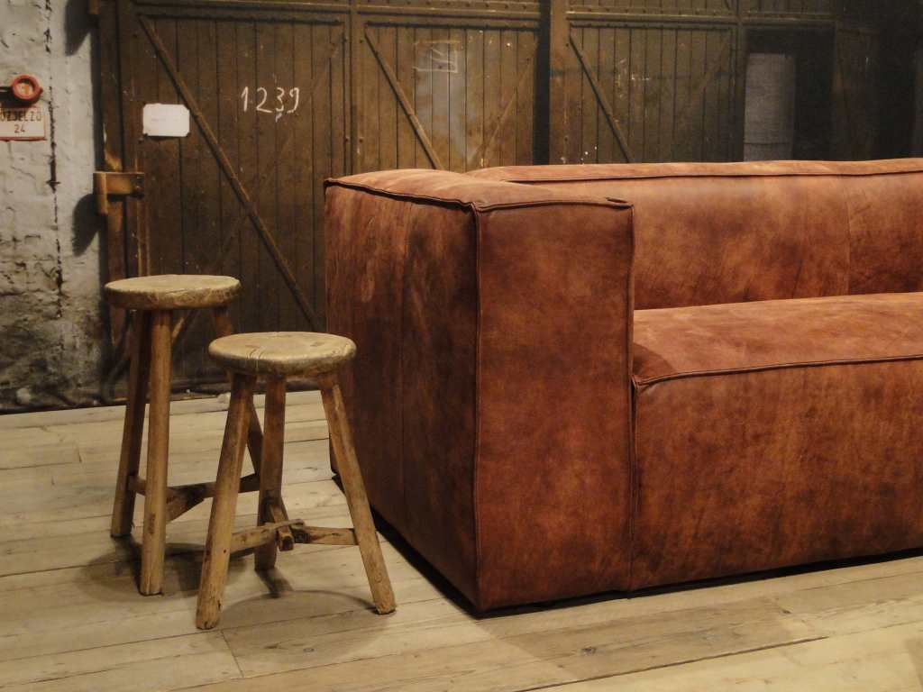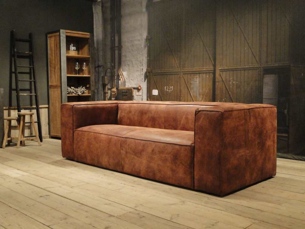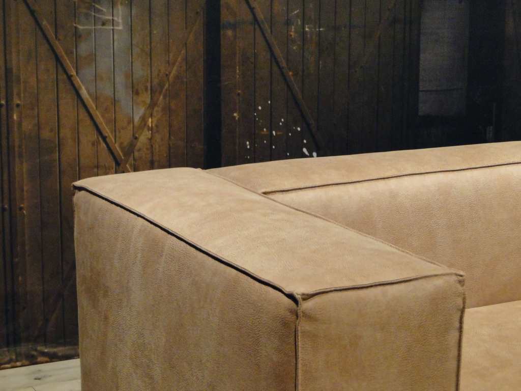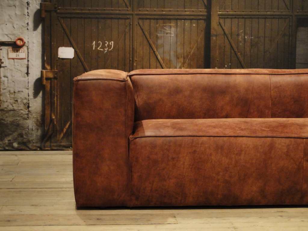 Het op deze bank verwerkte leer is van absolute topkwaliteit. De verwerkte huiden zijn afkomstig van Europese runderen waarbij uitsluitend de beste huiden geselecteerd worden. Middels een dubbele looiing en een speciale nabehandeling met wax en olie wordt een uniek doorgekleurd leer verkregen met een ruige stoere uitstraling. Ondanks deze ruige uitstraling heeft het leer een zeer comfortabele en soepele feel. Het leder is 1,3 tot 1,5mm dik. Het natuurlijke ongecorrigeerde karakter wordt gekenmerkt door de aanwezigheid van littekens, hoornsteken, schrammen en andere oneffenheden. Het op deze bank gebruikte leer heeft een middelsterke beschermende finish gekregen en is beperkt vocht- en vuilwerend. Het is het soort leer wat met de jaren alleen maar mooier wordt.