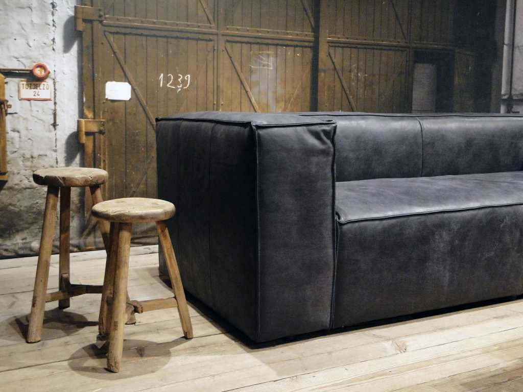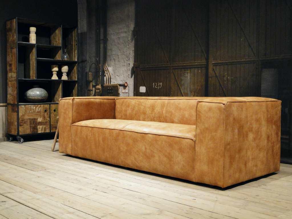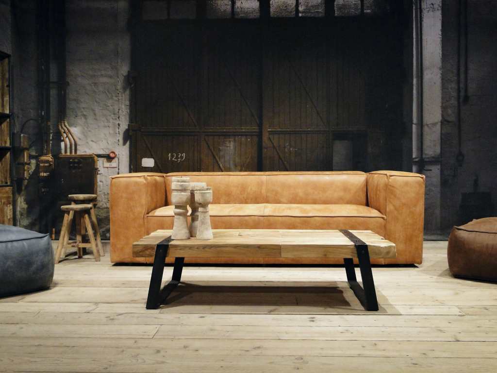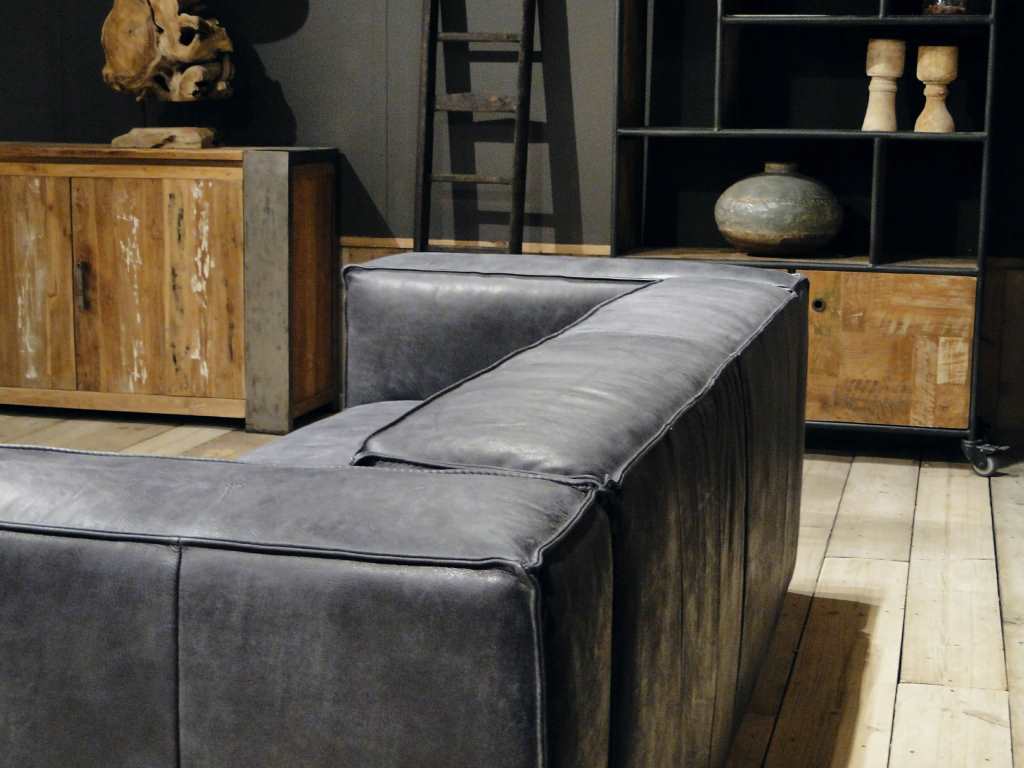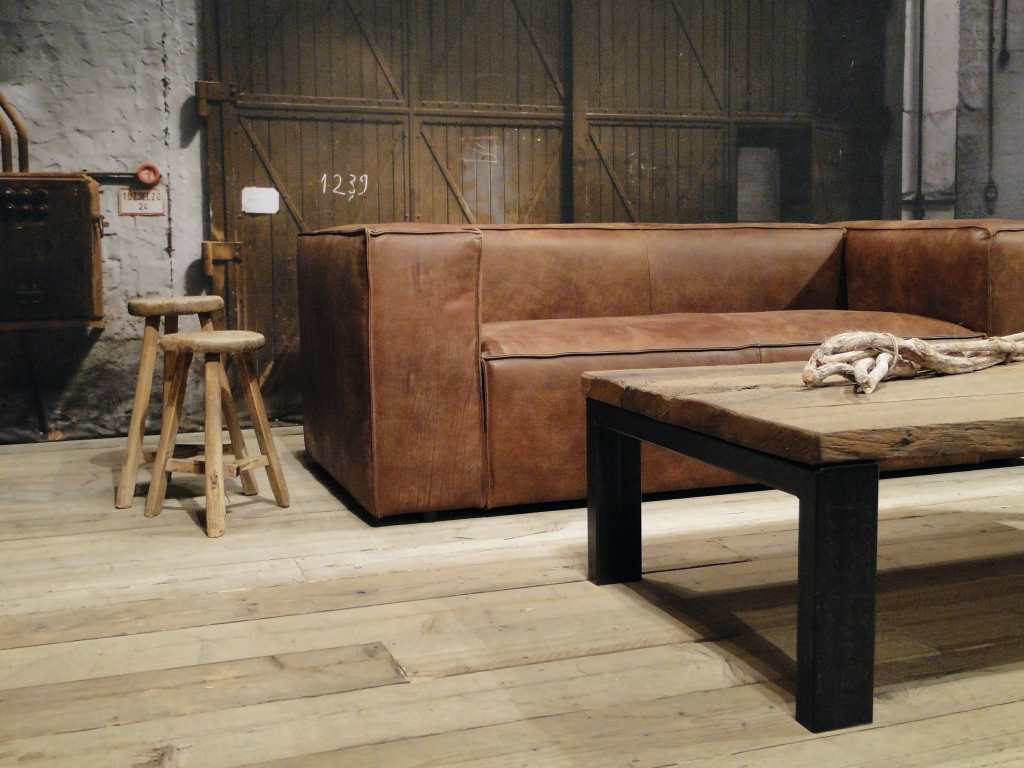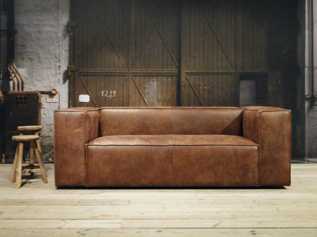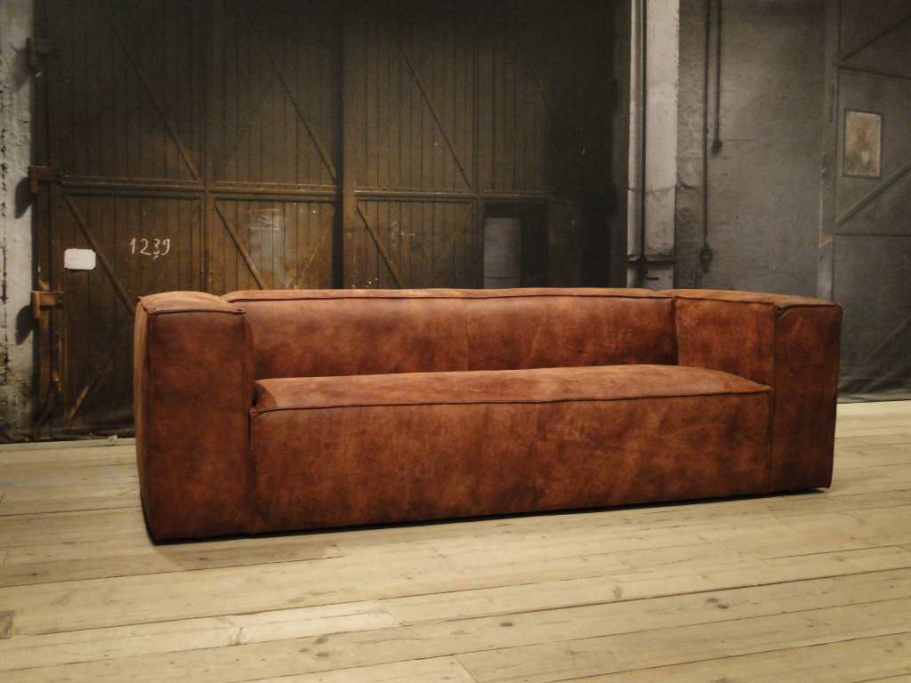 Het op deze bank verwerkte leer is van absolute topkwaliteit. De verwerkte huiden zijn afkomstig van Europese runderen waarbij uitsluitend de beste huiden geselecteerd worden. Middels een dubbele looiing en een speciale nabehandeling met wax en olie wordt een uniek doorgekleurd leer verkregen met een ruige stoere uitstraling. Ondanks deze ruige uitstraling heeft het leer een zeer comfortabele en soepele feel. Het leder is 1,3 tot 1,5mm dik. Het natuurlijke ongecorrigeerde karakter wordt gekenmerkt door de aanwezigheid van littekens, hoornsteken, schrammen en andere oneffenheden. Het op deze bank gebruikte leer heeft een middelsterke beschermende finish gekregen en is beperkt vocht- en vuilwerend. Het is het soort leer wat met de jaren alleen maar mooier wordt.