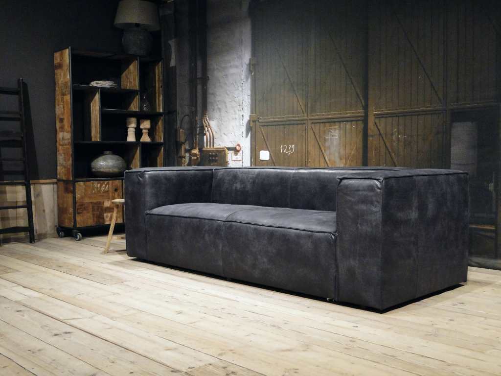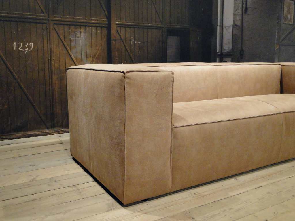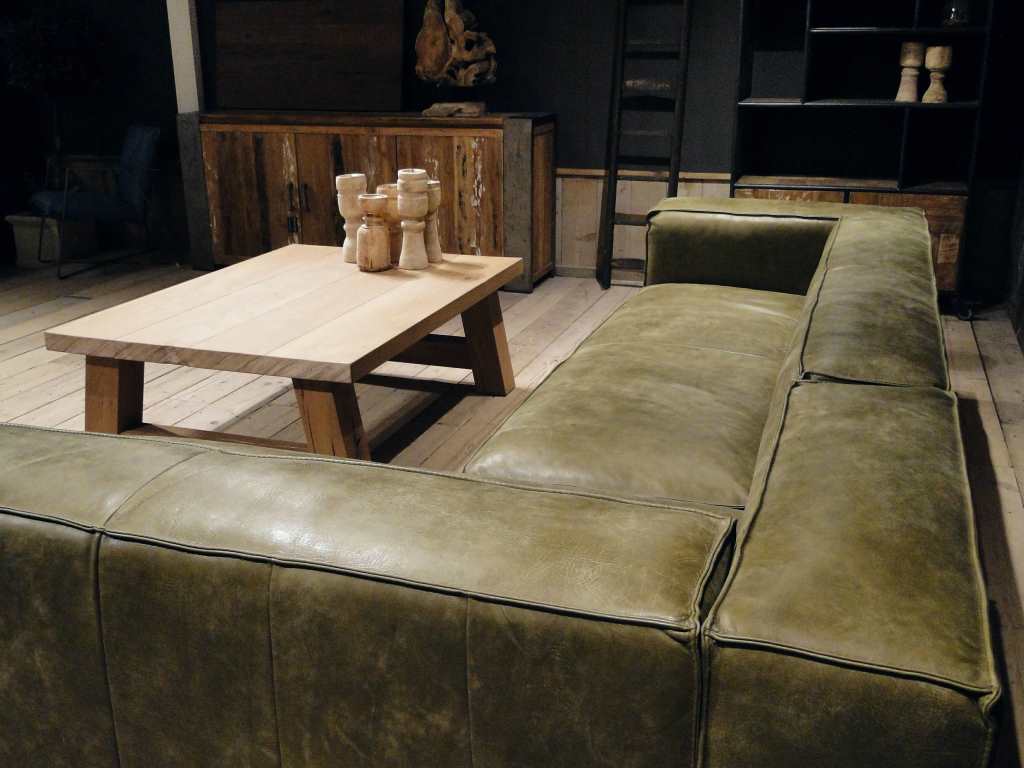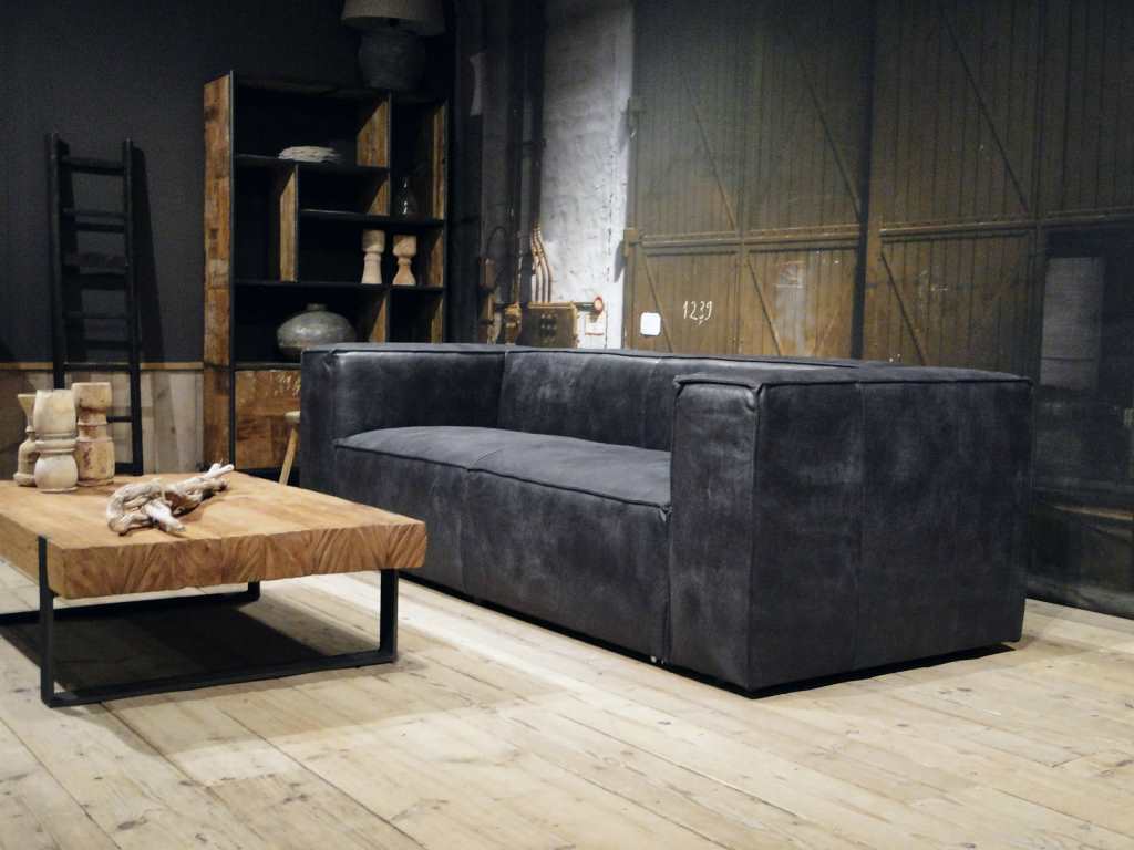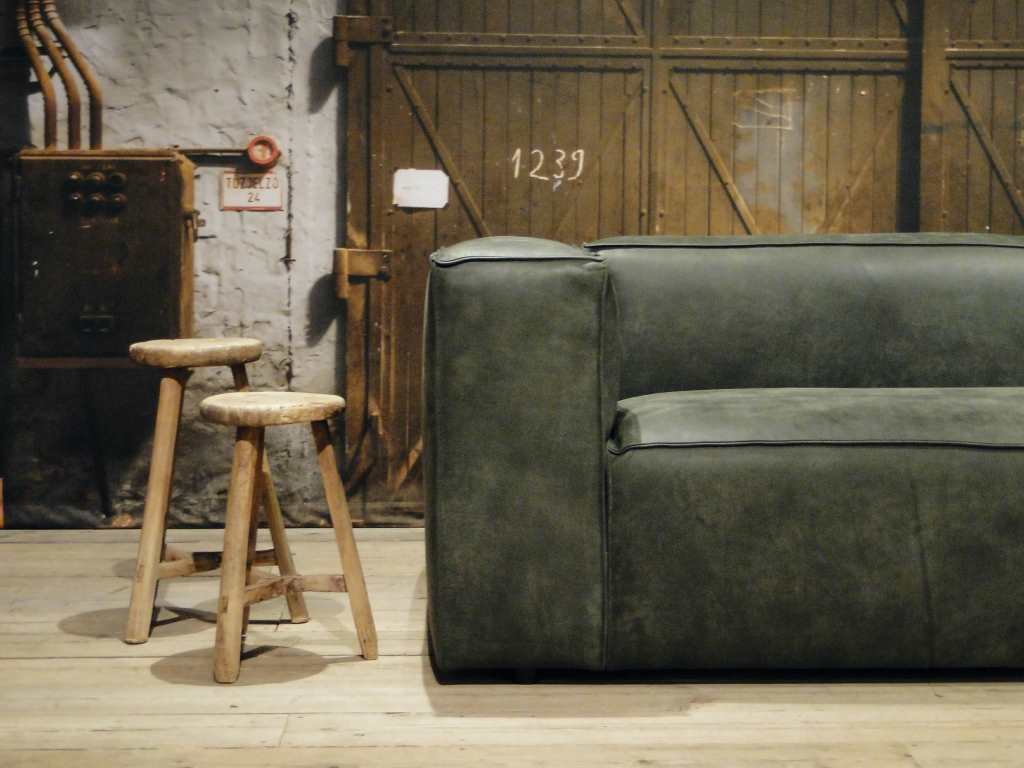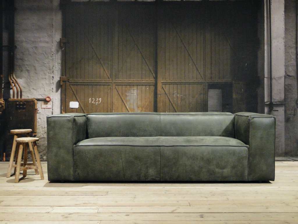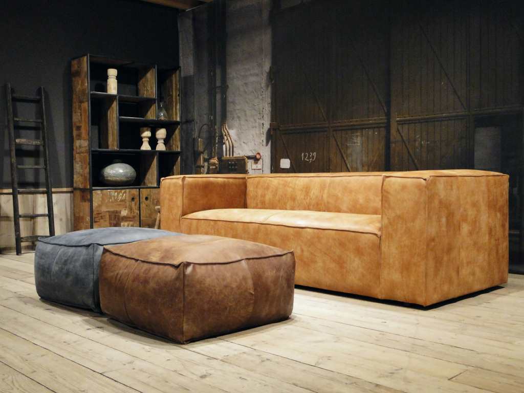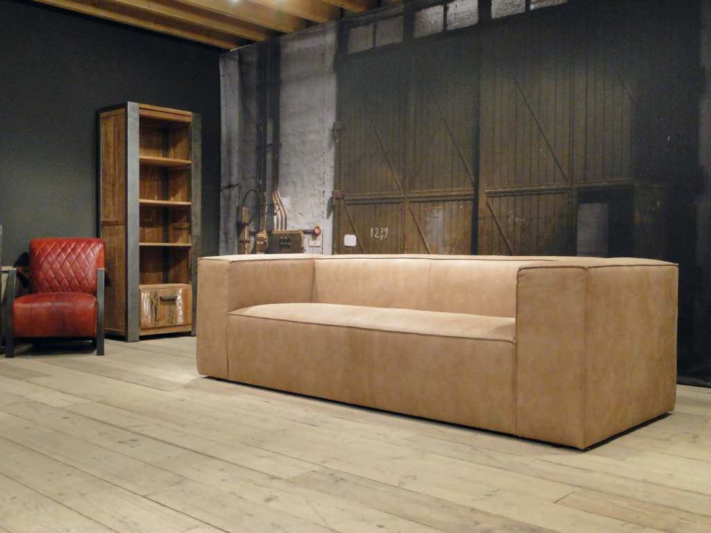 Het op deze bank verwerkte leer is van absolute topkwaliteit. De verwerkte huiden zijn afkomstig van Europese runderen waarbij uitsluitend de beste huiden geselecteerd worden. Middels een dubbele looiing en een speciale nabehandeling met wax en olie wordt een uniek doorgekleurd leer verkregen met een ruige stoere uitstraling. Ondanks deze ruige uitstraling heeft het leer een zeer comfortabele en soepele feel. Het leder is 1,3 tot 1,5mm dik. Het natuurlijke ongecorrigeerde karakter wordt gekenmerkt door de aanwezigheid van littekens, hoornsteken, schrammen en andere oneffenheden. Het op deze bank gebruikte leer heeft een middelsterke beschermende finish gekregen en is beperkt vocht- en vuilwerend. Het is het soort leer wat met de jaren alleen maar mooier wordt.