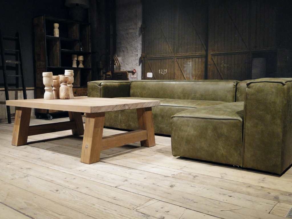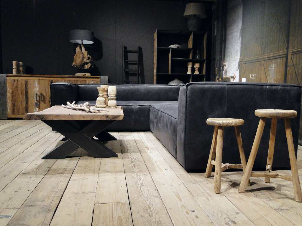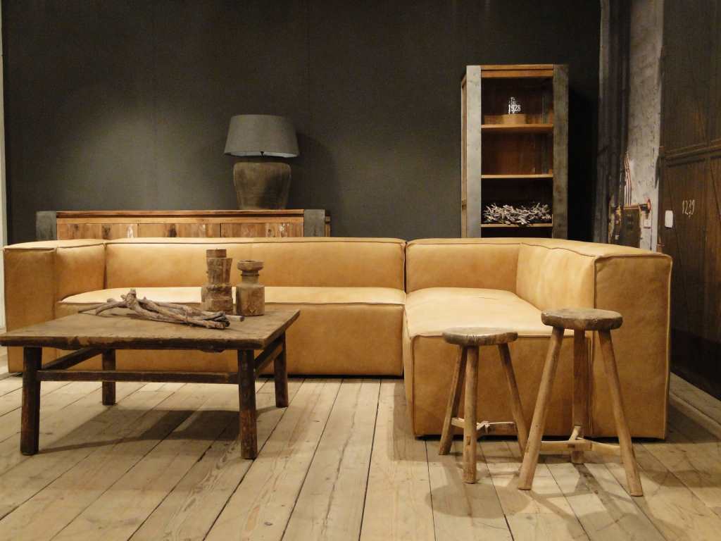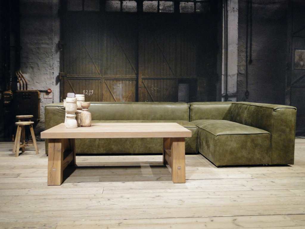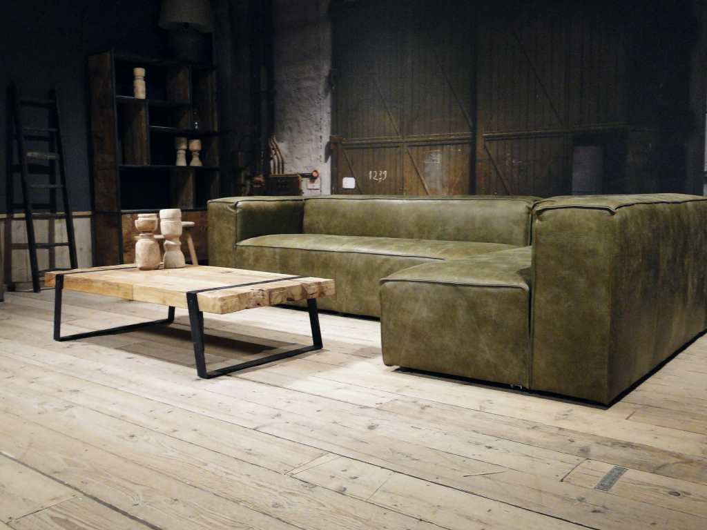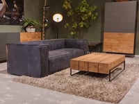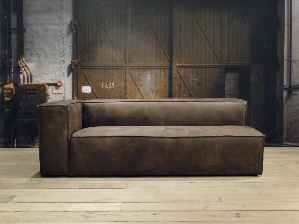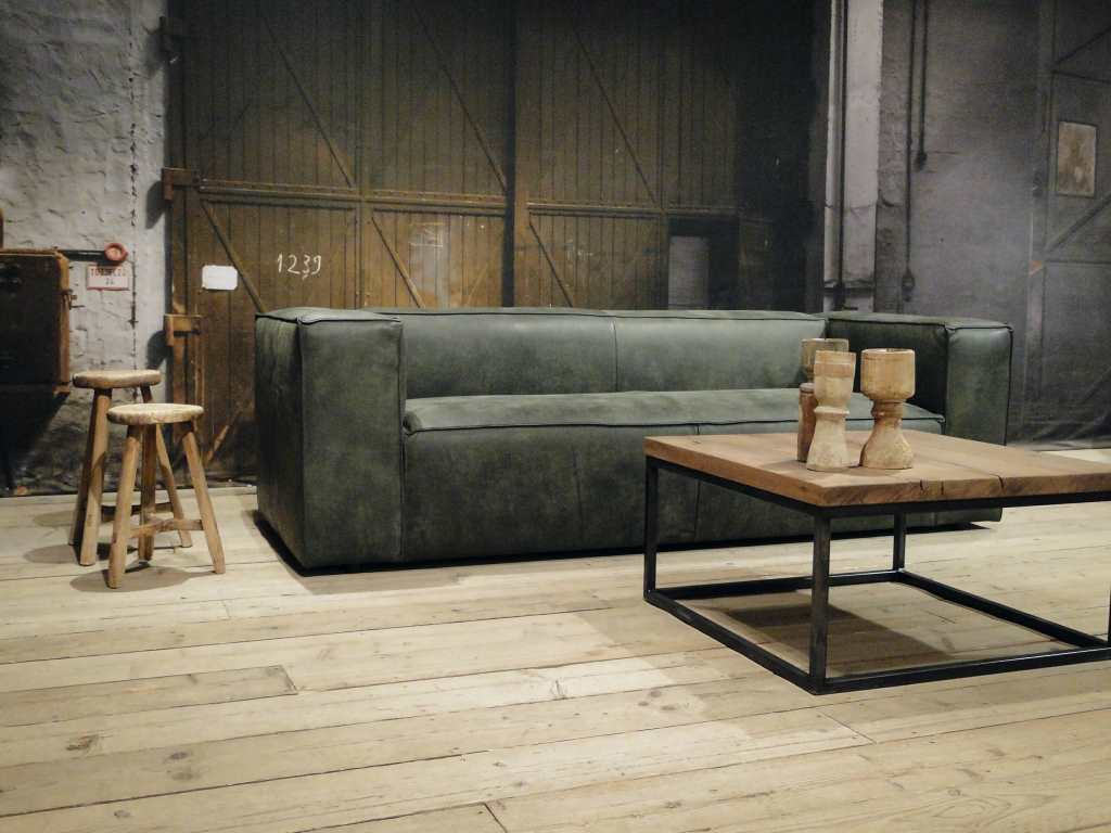 Het op deze bank verwerkte leer is van absolute topkwaliteit. De verwerkte huiden zijn afkomstig van Europese runderen waarbij uitsluitend de beste huiden geselecteerd worden. Middels een dubbele looiing en een speciale nabehandeling met wax en olie wordt een uniek doorgekleurd leer verkregen met een ruige stoere uitstraling. Ondanks deze ruige uitstraling heeft het leer een zeer comfortabele en soepele feel. Het leder is 1,3 tot 1,5mm dik. Het natuurlijke ongecorrigeerde karakter wordt gekenmerkt door de aanwezigheid van littekens, hoornsteken, schrammen en andere oneffenheden. Het op deze bank gebruikte leer heeft een middelsterke beschermende finish gekregen en is beperkt vocht- en vuilwerend. Het is het soort leer wat met de jaren alleen maar mooier wordt.