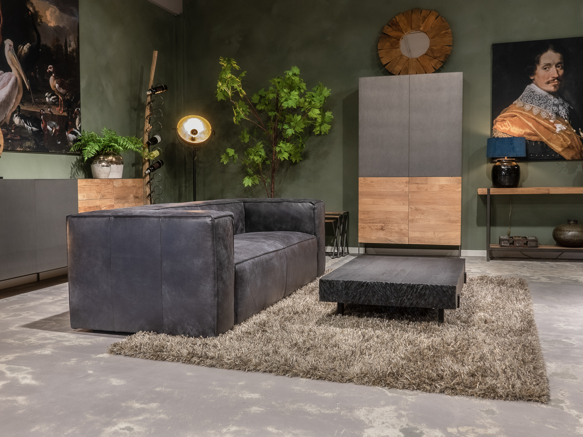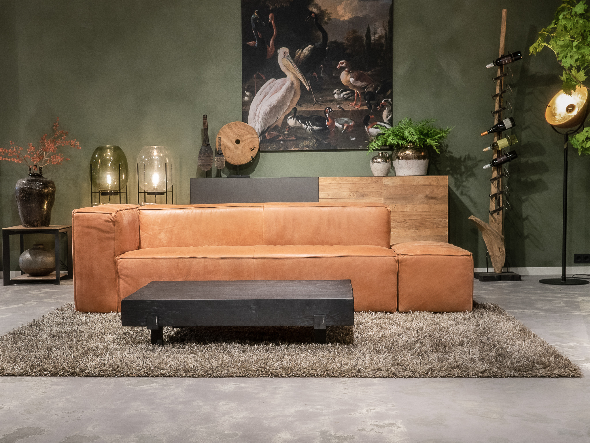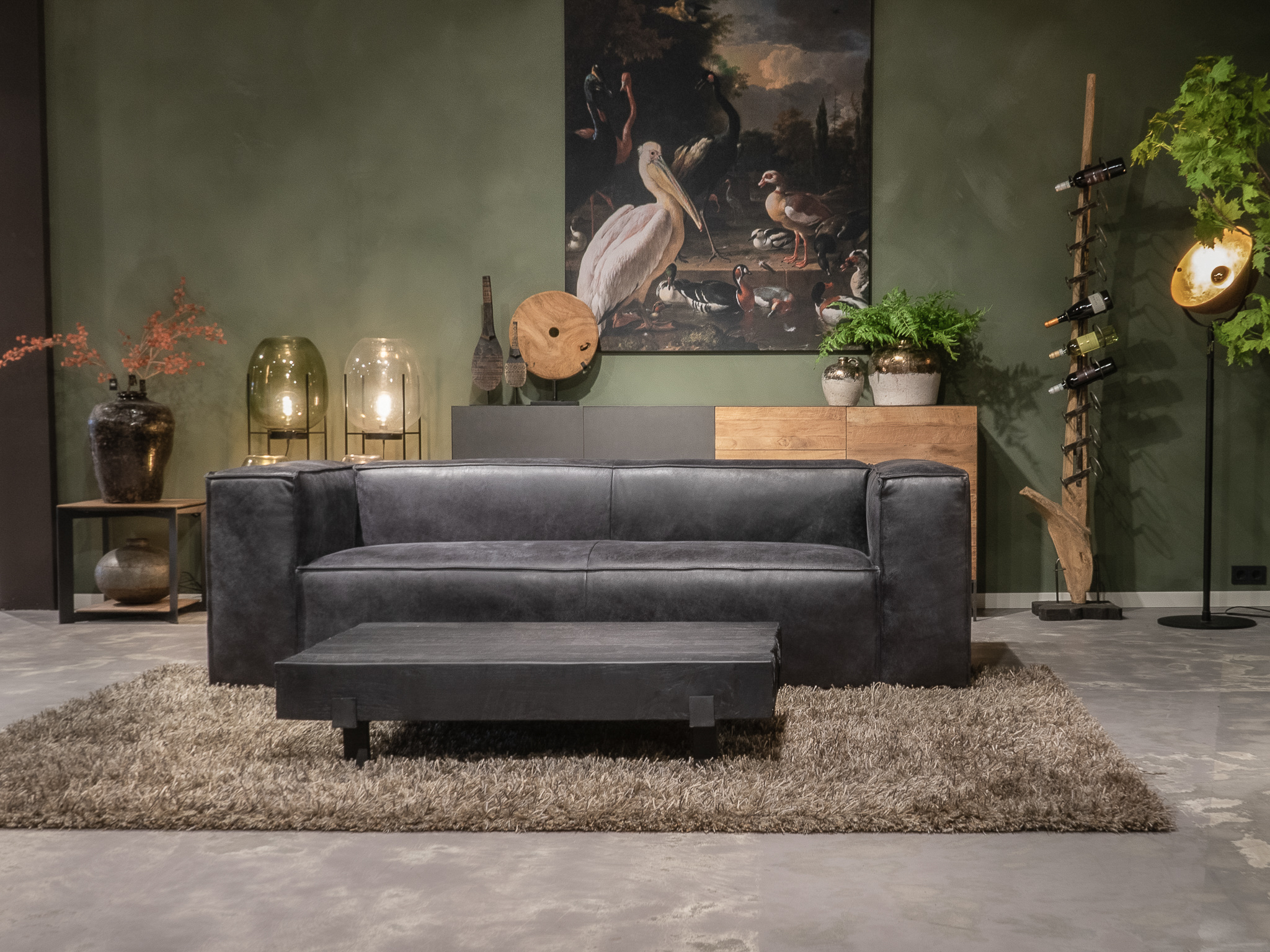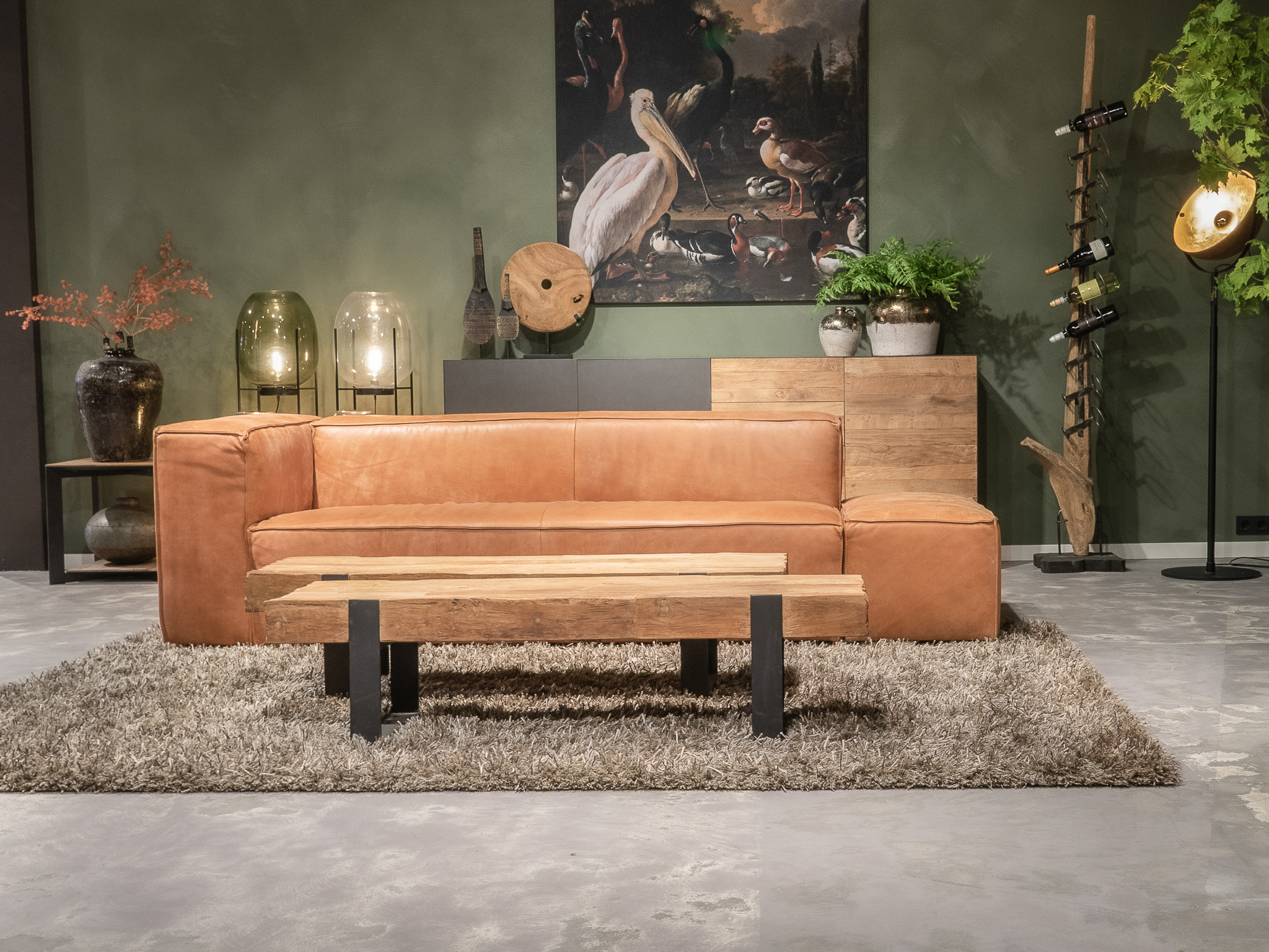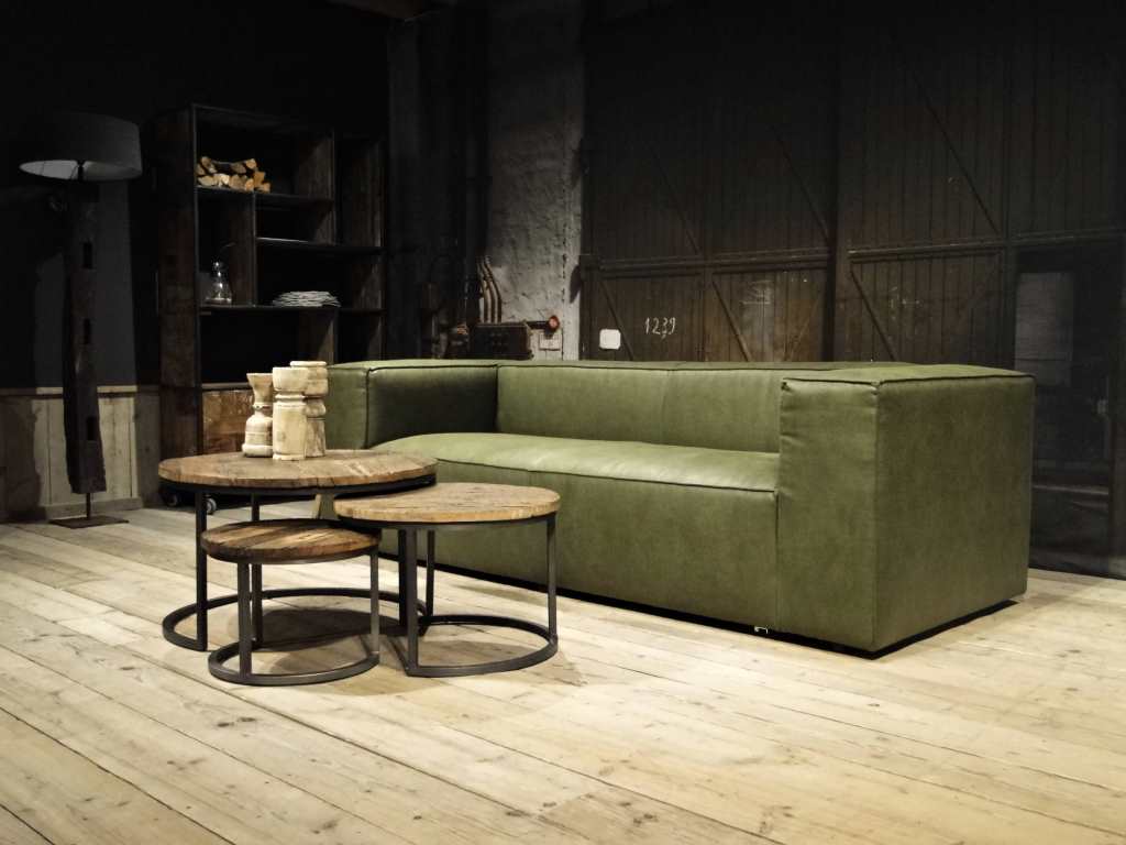 Het op deze bank verwerkte leer is van absolute topkwaliteit. De verwerkte huiden zijn afkomstig van Europese runderen waarbij uitsluitend de beste huiden geselecteerd worden. Middels een dubbele looiing en een speciale nabehandeling met wax en olie wordt een uniek doorgekleurd leer verkregen met een ruige stoere uitstraling. Ondanks deze ruige uitstraling heeft het leer een zeer comfortabele en soepele feel. Het leder is 1,3 tot 1,5mm dik. Het natuurlijke ongecorrigeerde karakter wordt gekenmerkt door de aanwezigheid van littekens, hoornsteken, schrammen en andere oneffenheden. Het op deze bank gebruikte leer heeft een middelsterke beschermende finish gekregen en is beperkt vocht- en vuilwerend. Het is het soort leer wat met de jaren alleen maar mooier wordt.