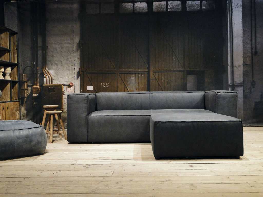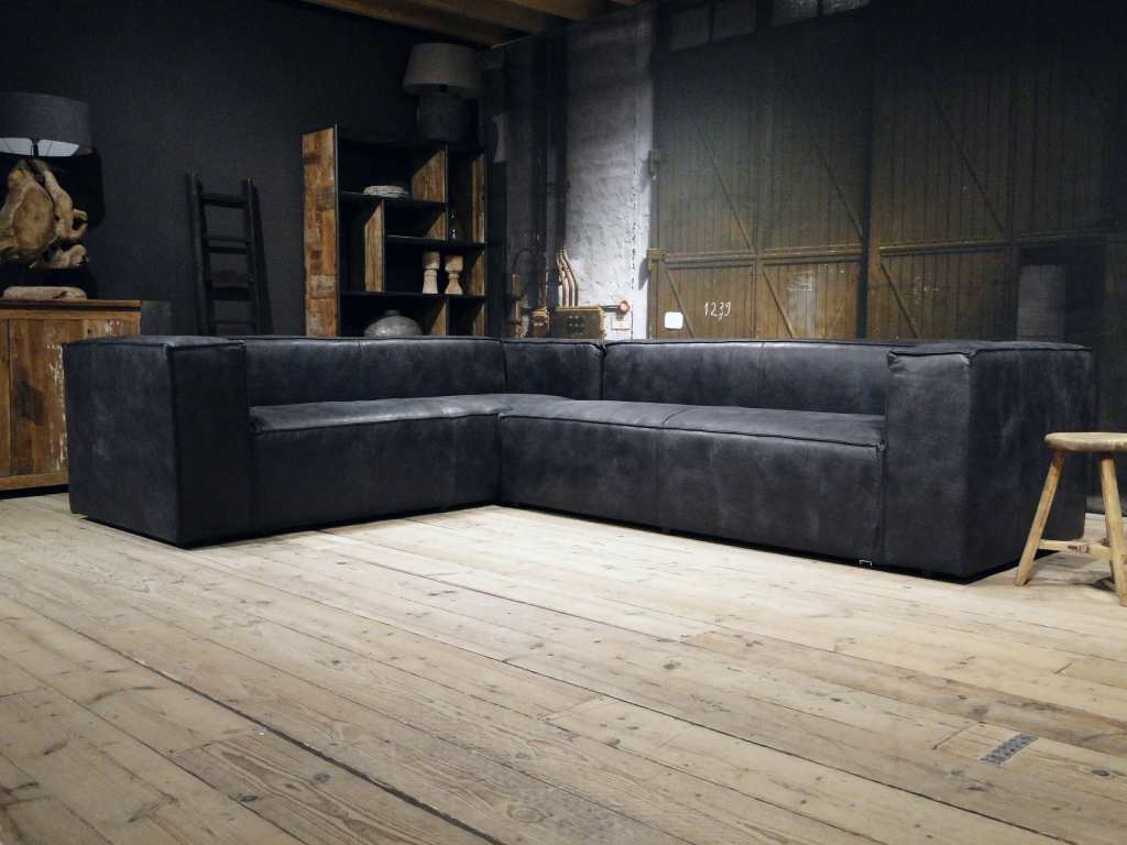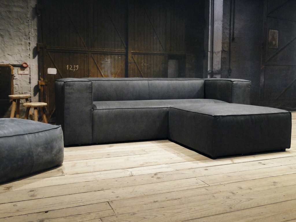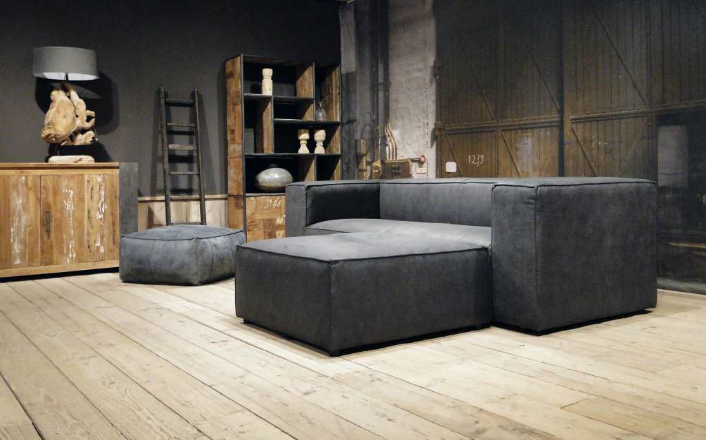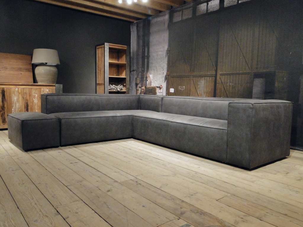 Luxe stoere en robuuste grijze hoekbank met chaise longue Rigolato. De Rigolato bank is een modulaire bank en kan uitgevoerd worden als fauteuil, rechte bank 1,5, 2,5 3 of 4 zits of hoekbank. De elementen zijn direct aan elkaar te koppelen en door het plaatsen van een hocker 96x96cm aan het eind is er ook een chaise longue, ook wel long chair genoemd, te maken. Daarnaast is er ook een enorme lange bank te maken door 2 3 zits elementen met een arm links en rechts aan elkaar te koppelen. Arm links of rechts dient u voorstaand (kijkend naar de bank) te bepalen. Dit model is leverbaar in zowel leer als stof. Deze bank heeft een stoffering met nonchalante uitstraling, plooivorming is onvermijdelijk en productgebonden. Plooivorming zal in de eerste week na gebruik optreden. Plooivorming zegt niets over de kwaliteit van een bank.