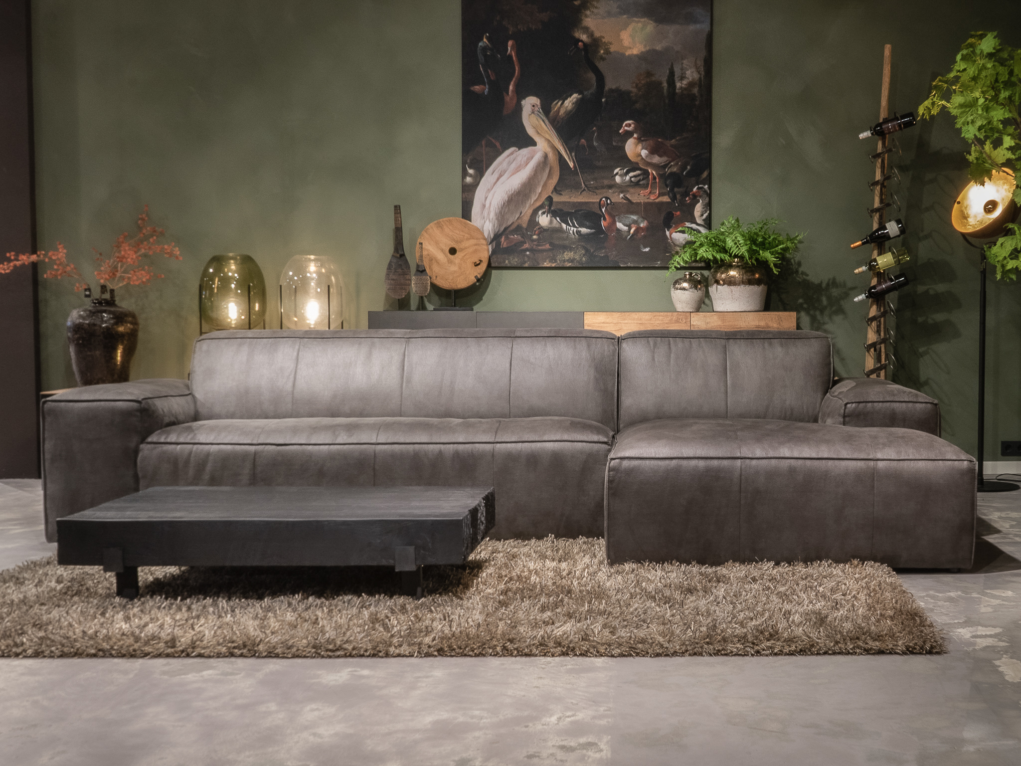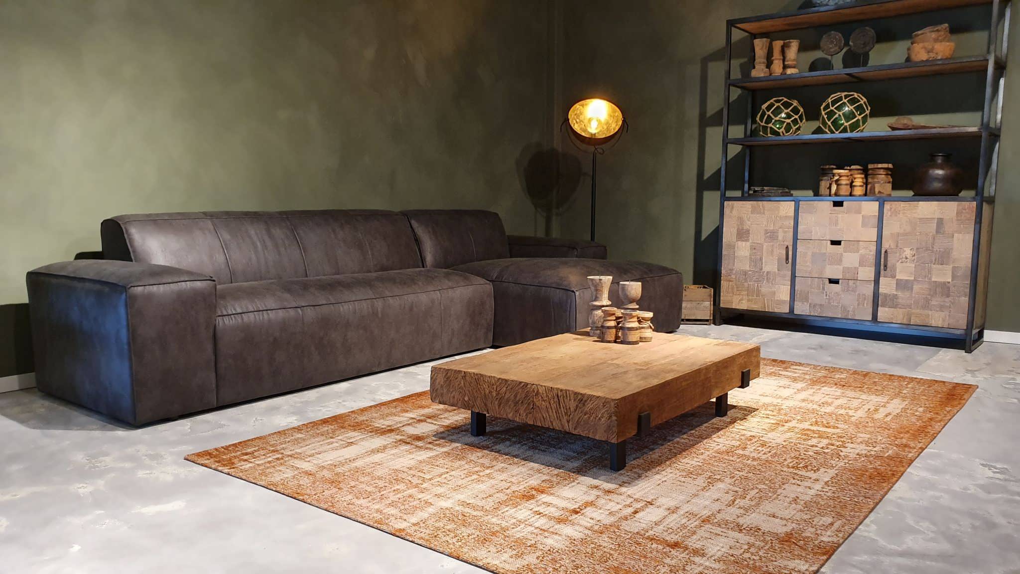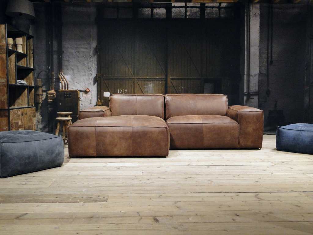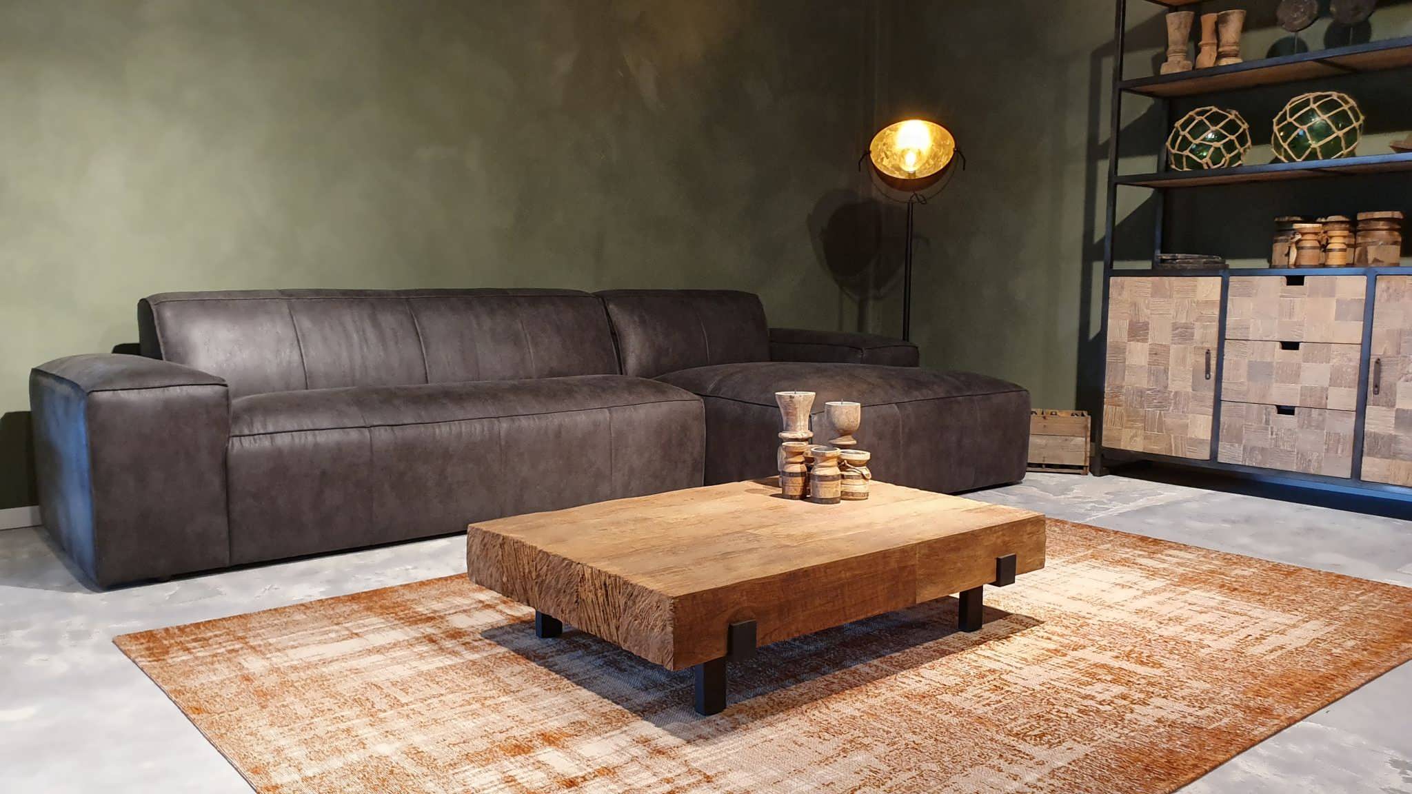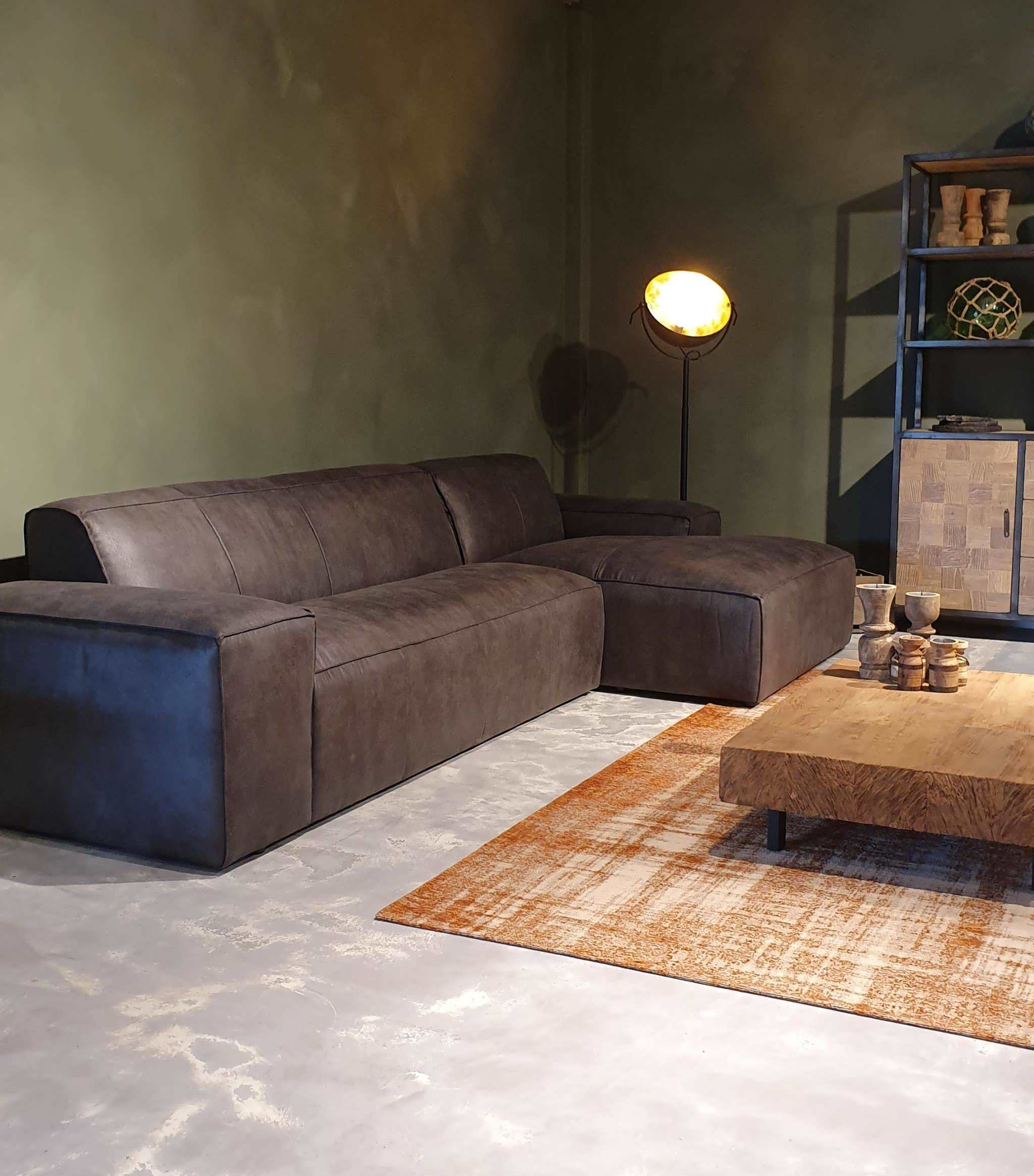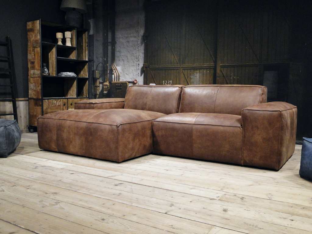 De Maranello bank is een echte lounge bank en onze meest robuuste en stoere model. De lage pootjes en enorme armleuningen geven deze bank een extra stoer uiterlijk. De bank is verkrijgbaar in recht model als 3 zits, welke uit 1 deel bestaat en een 4 of 5 zits, welke uit 2 delen bestaan. Daarnaast is de Maranello ook bestelbaar met een chaise longue gedeelte waarmee de bank een imposante lengte van 348cm kan bereiken. De Maranello bank leent zich bij uitstek voor ons geschuurde Africa Leer maar kan uiteraard ook worden bekleed met Bull Eco Leer en Velvet of Relax stof.