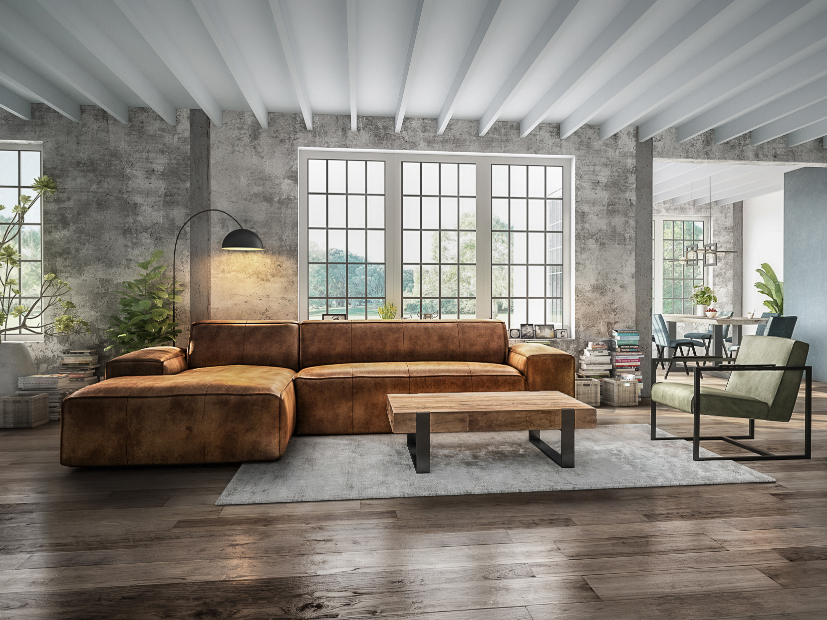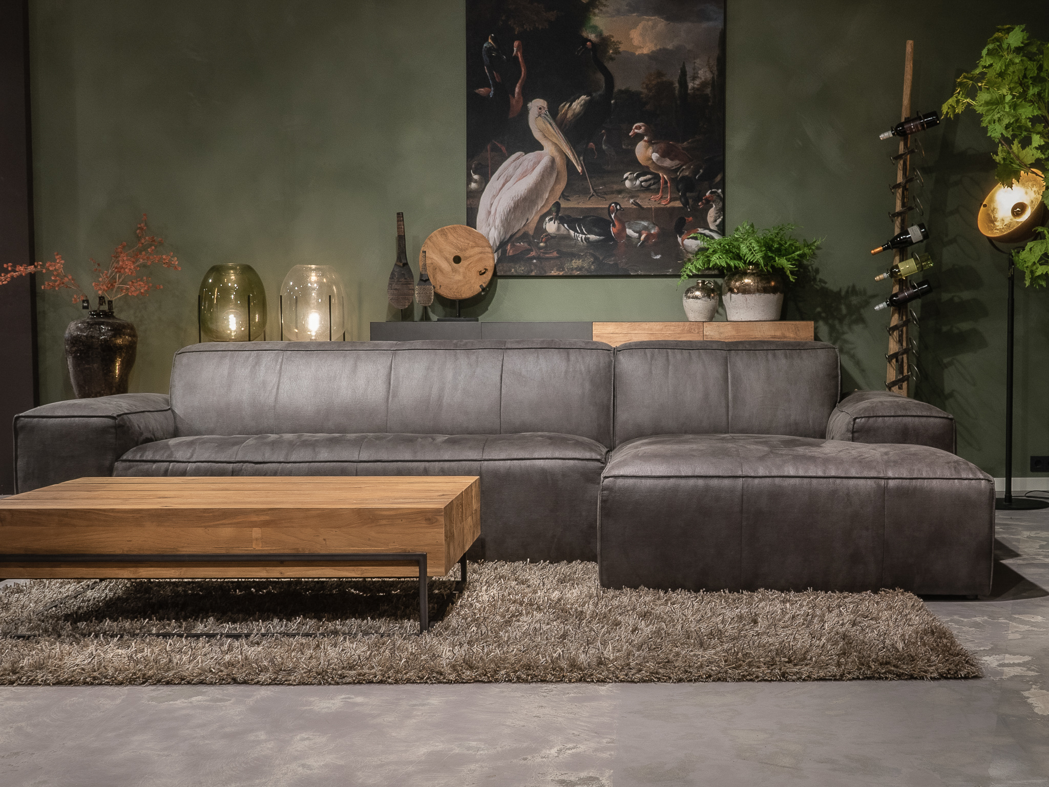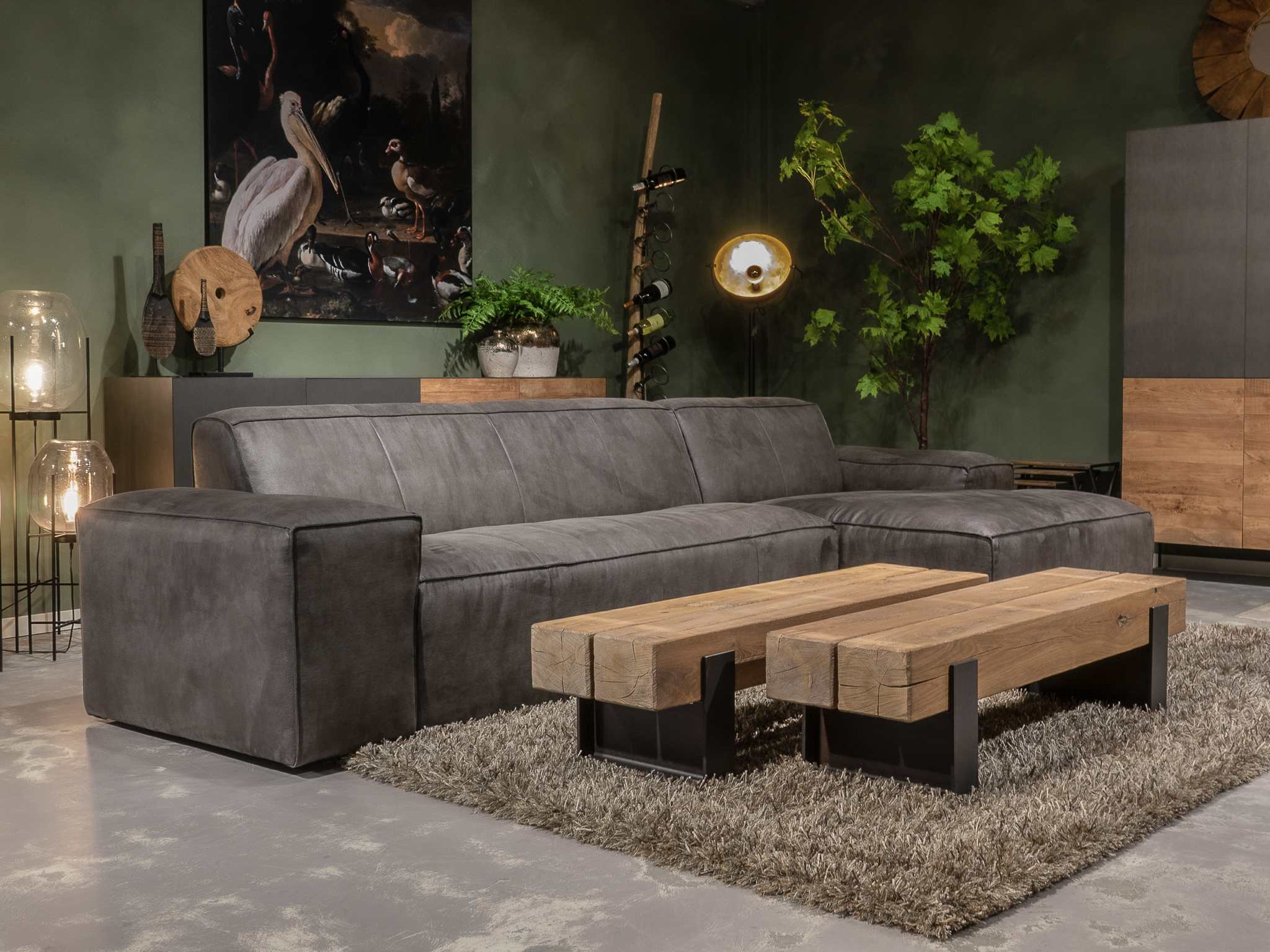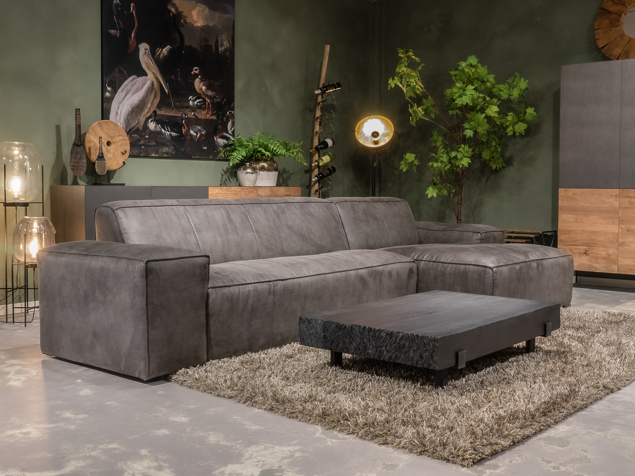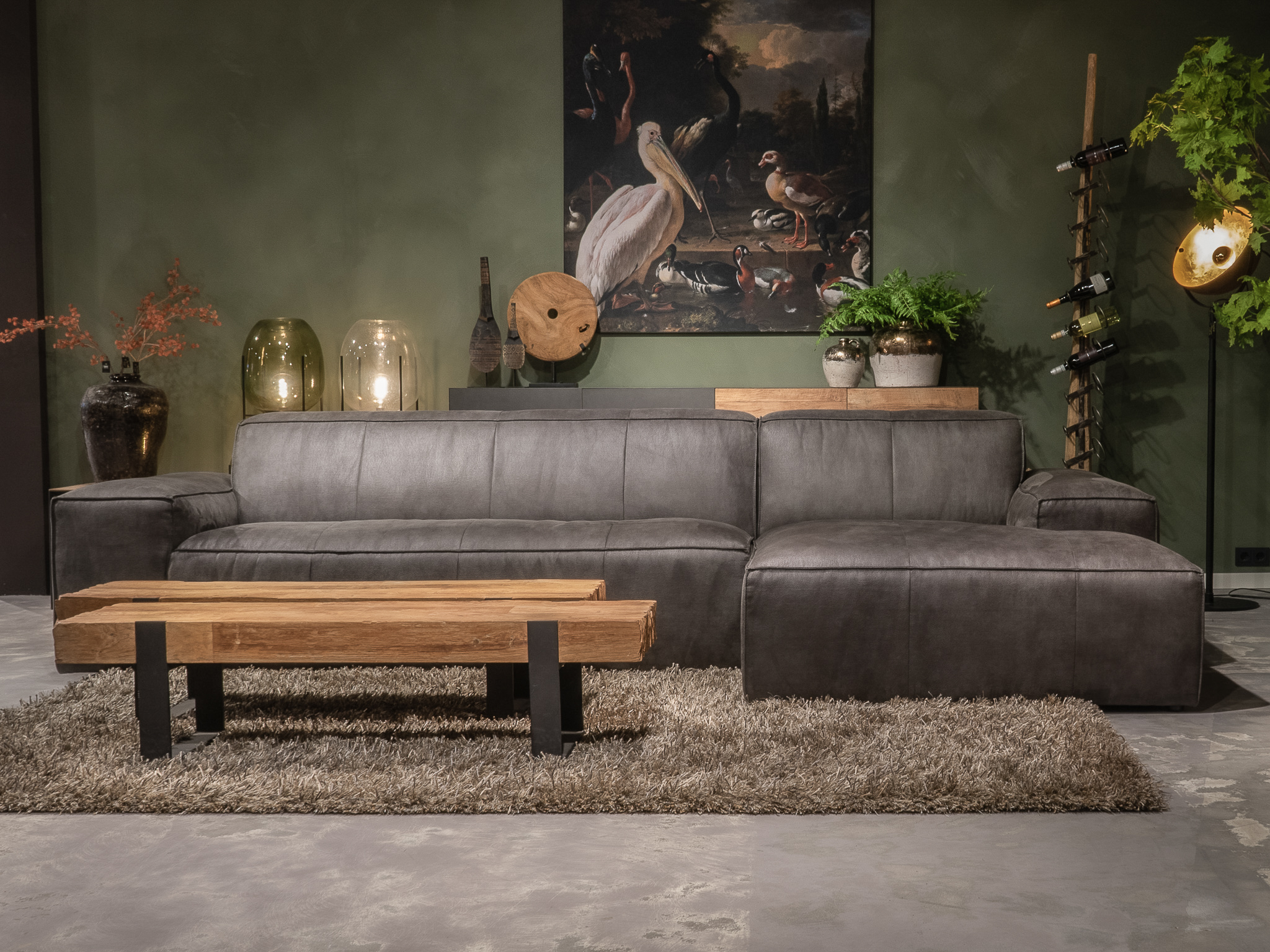 De Maranello bank is een echte lounge bank en onze meest robuuste en stoere model. De lage pootjes en enorme armleuningen geven deze bank een extra stoer uiterlijk. De bank is verkrijgbaar in recht model als 3 zits, welke uit 1 deel bestaat en een 4 of 5 zits, welke uit 2 delen bestaan. Daarnaast is de Maranello ook bestelbaar met een chaise longue gedeelte waarmee de bank een imposante lengte van 348cm kan bereiken. De Maranello bank leent zich bij uitstek voor ons geschuurde Africa Leer maar kan uiteraard ook worden bekleed met Bull Eco Leer en Velvet of Relax stof.