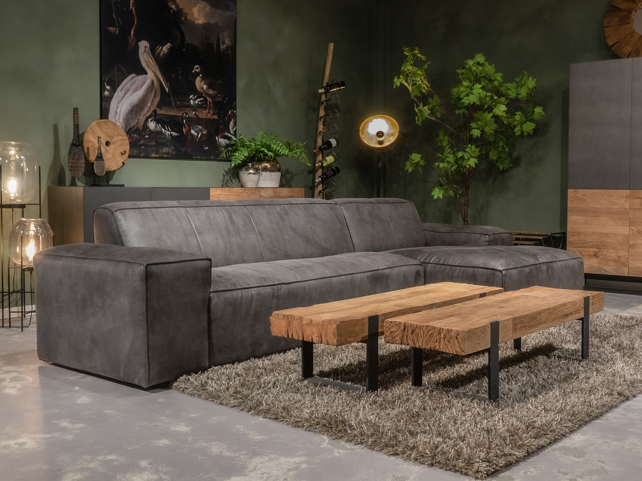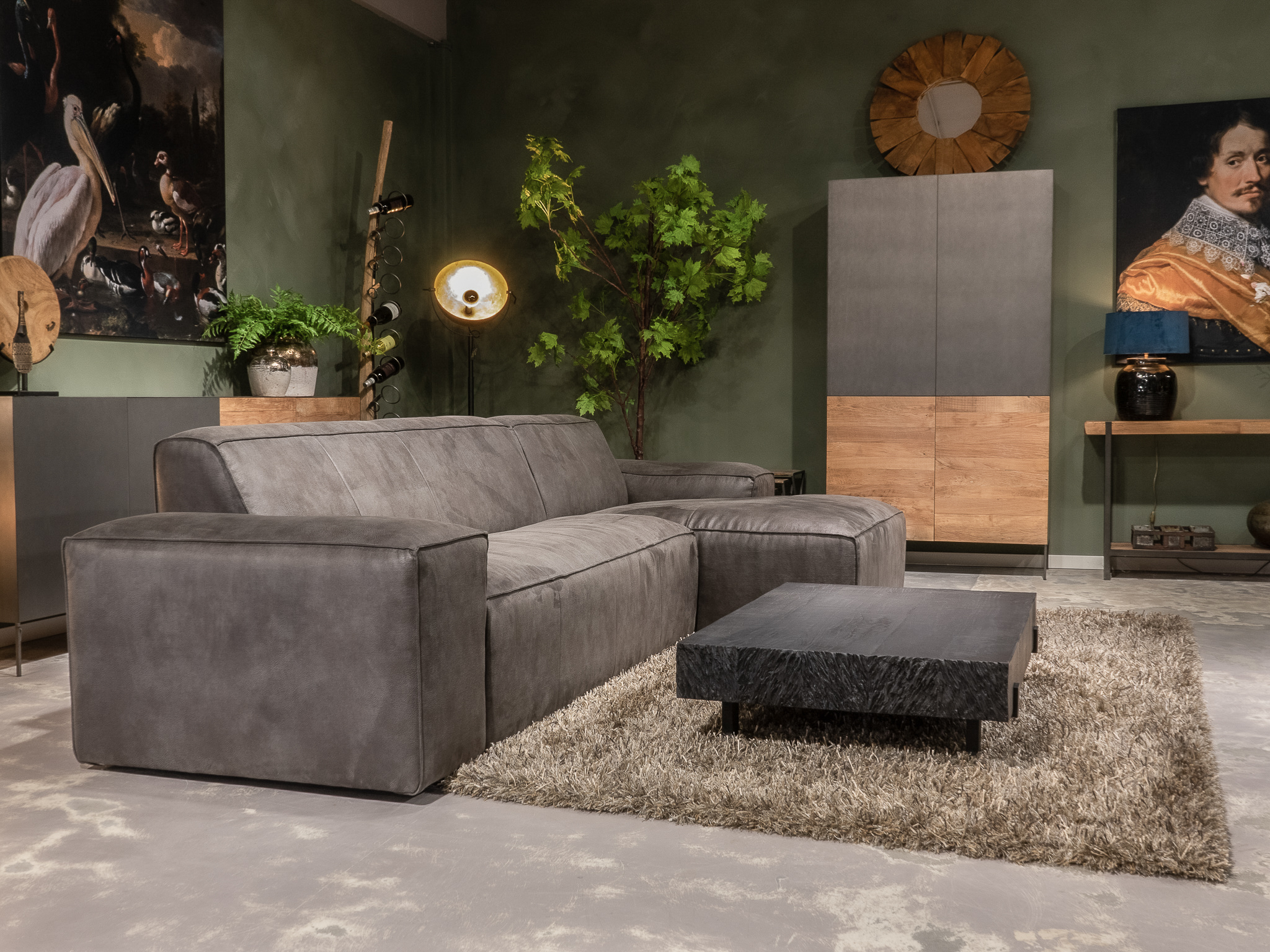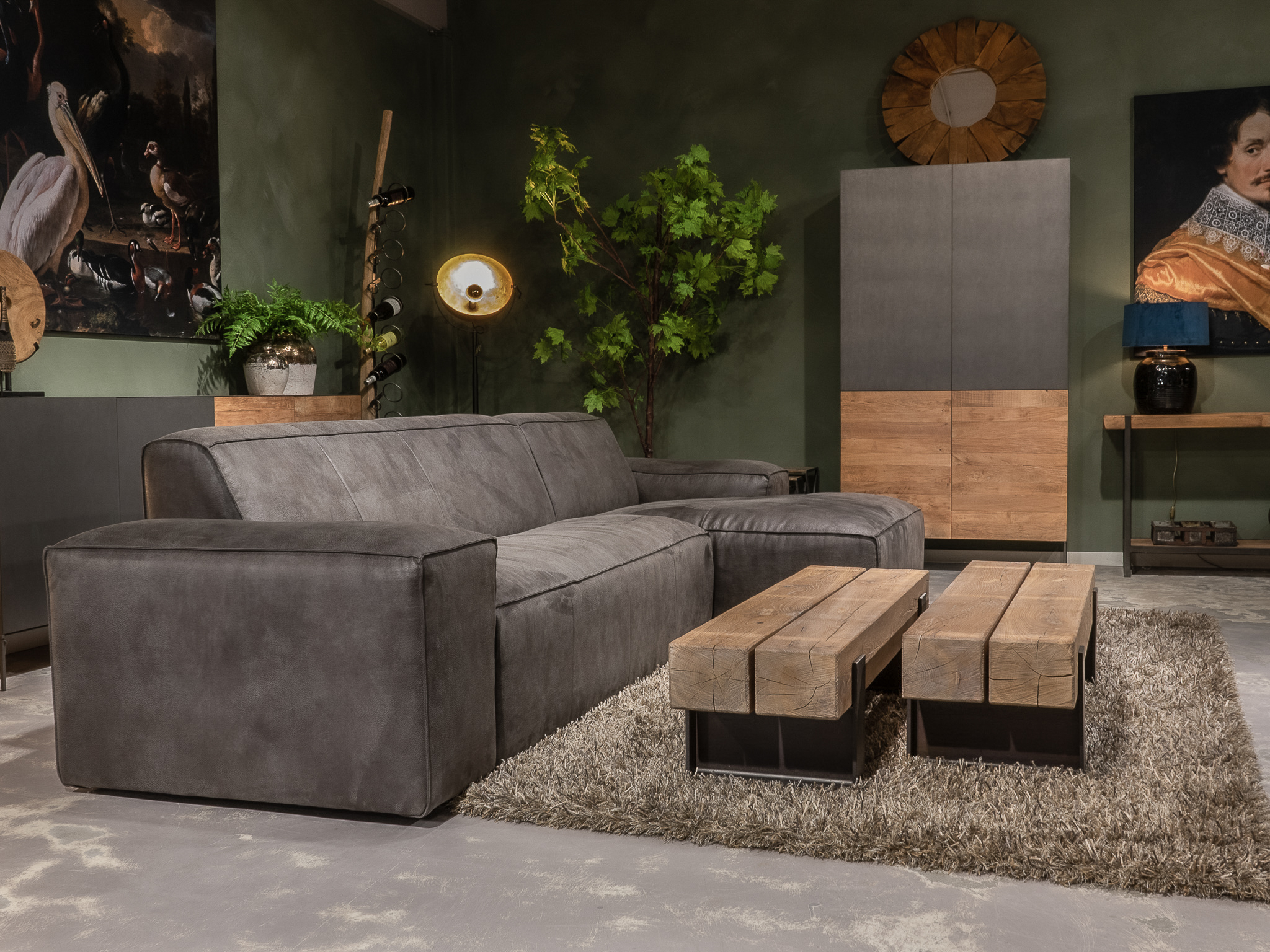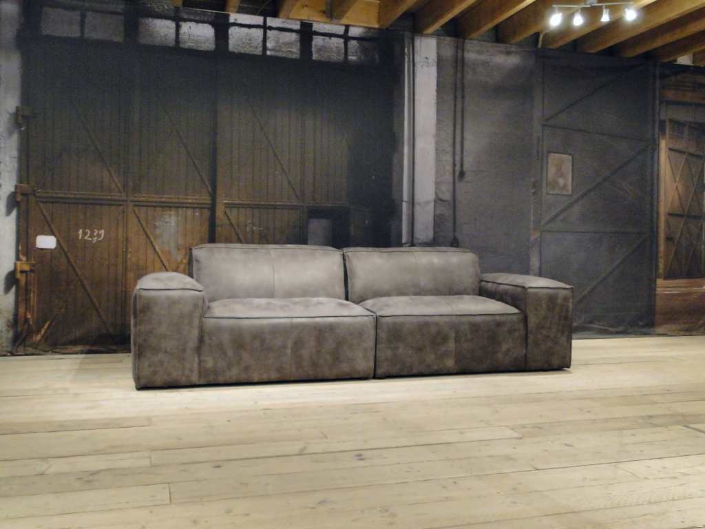 Deze bank staat in Sliedrecht als 5 zitter in de Africa leer - tabac en als 3 zitter in relax stof - graphite. Gramsbergen staat deze als 3 zitter in bull eco leder - camel.