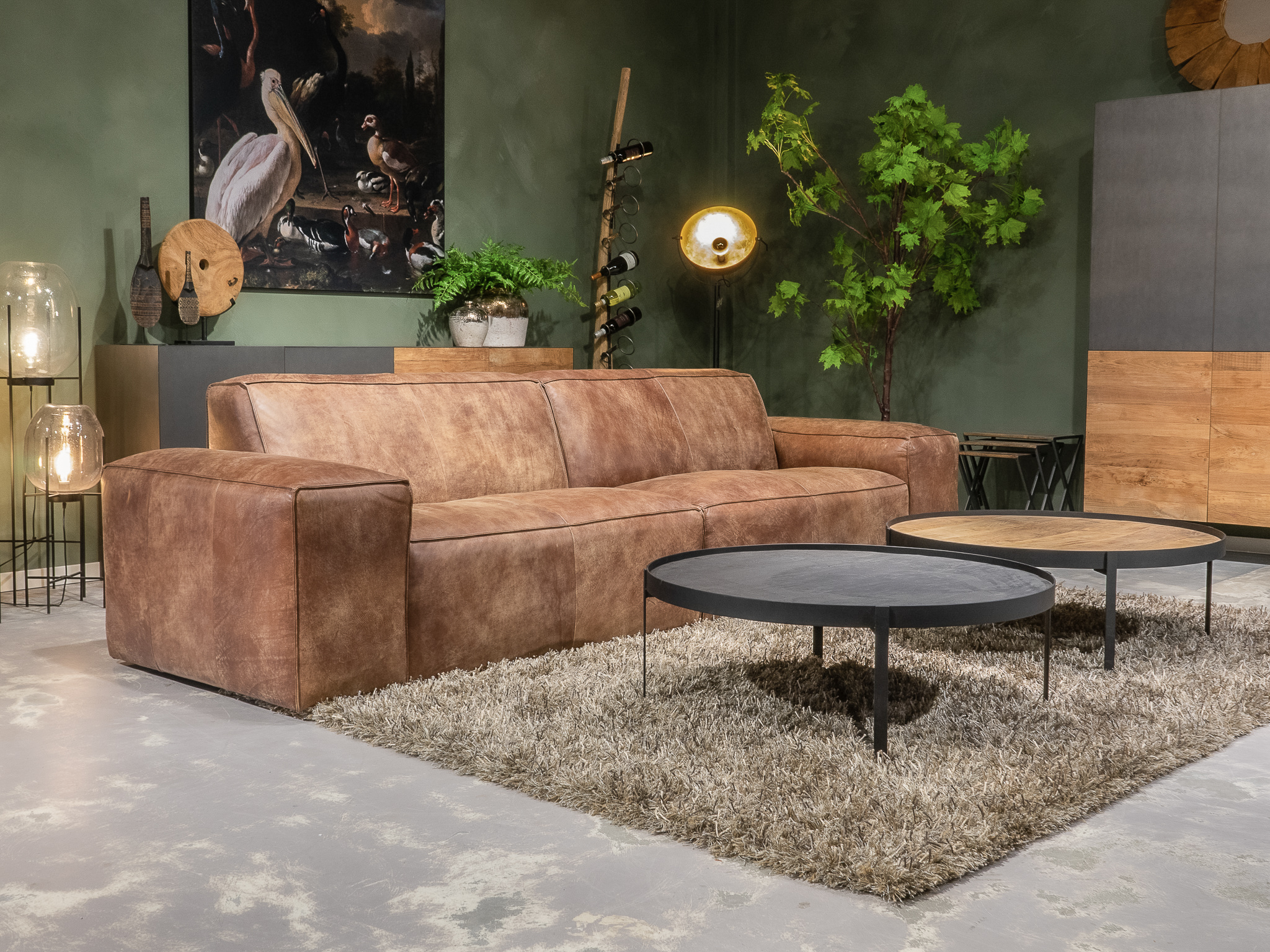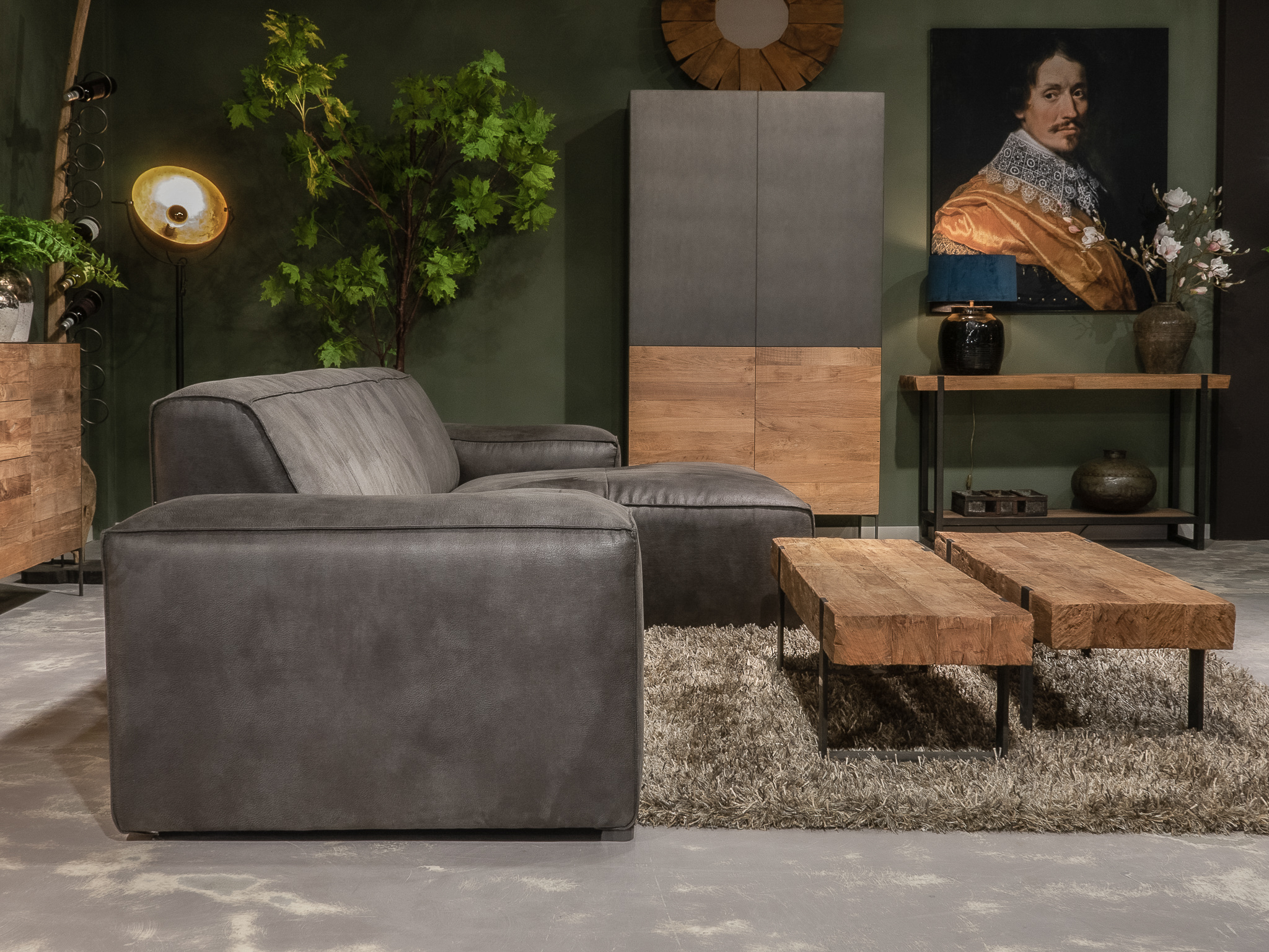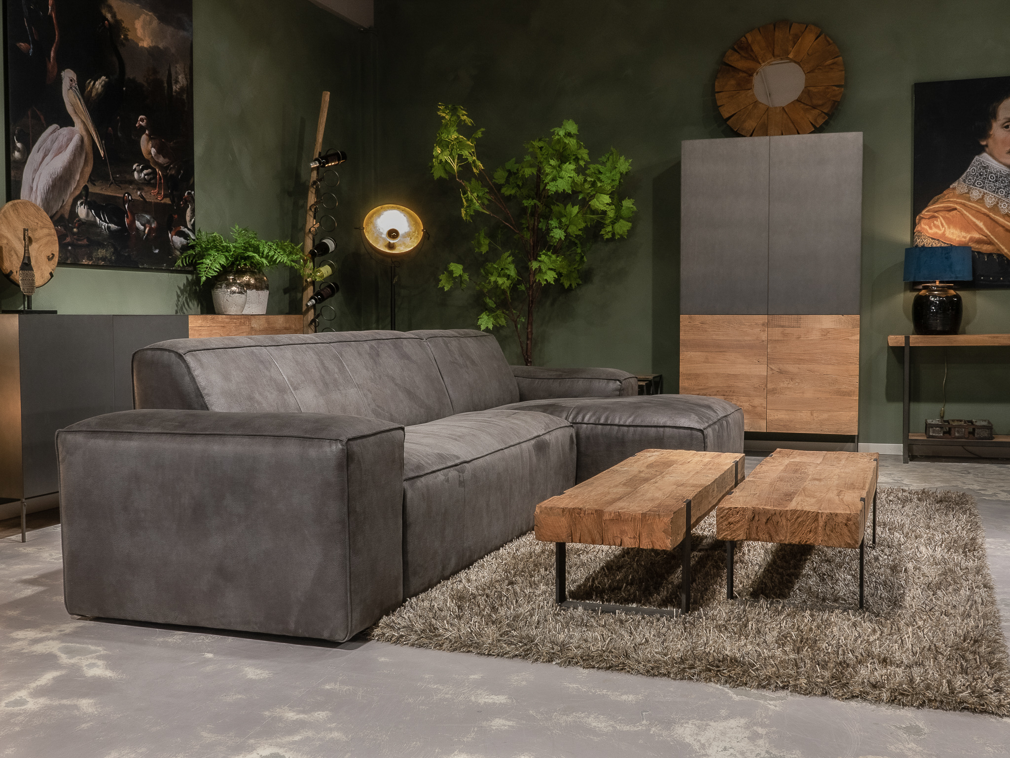 Deze bank staat in Sliedrecht als 5 zitter in de Africa leer - tabac en als 3 zitter in relax stof - graphite. Gramsbergen staat deze als 3 zitter in bull eco leder - camel.