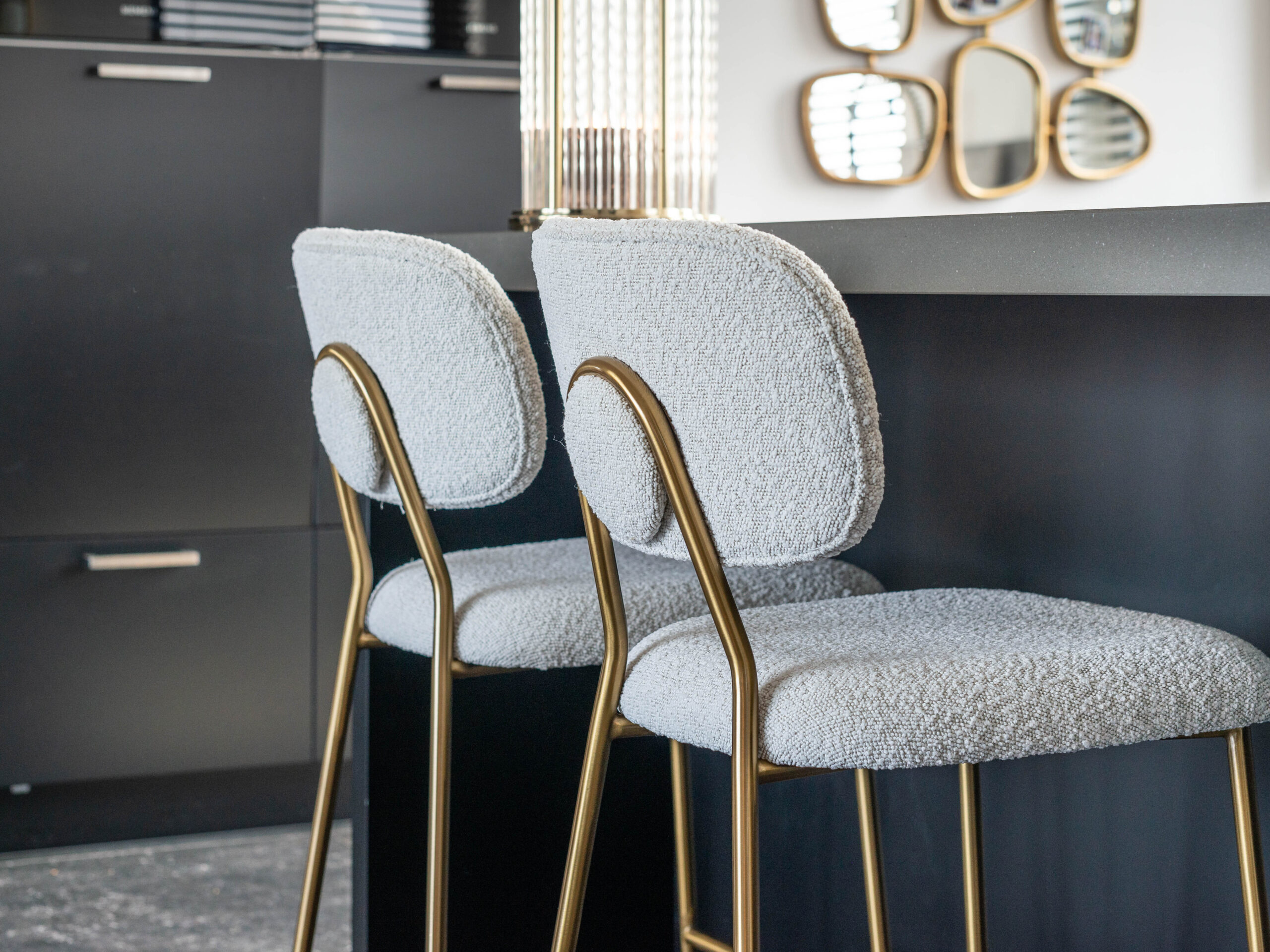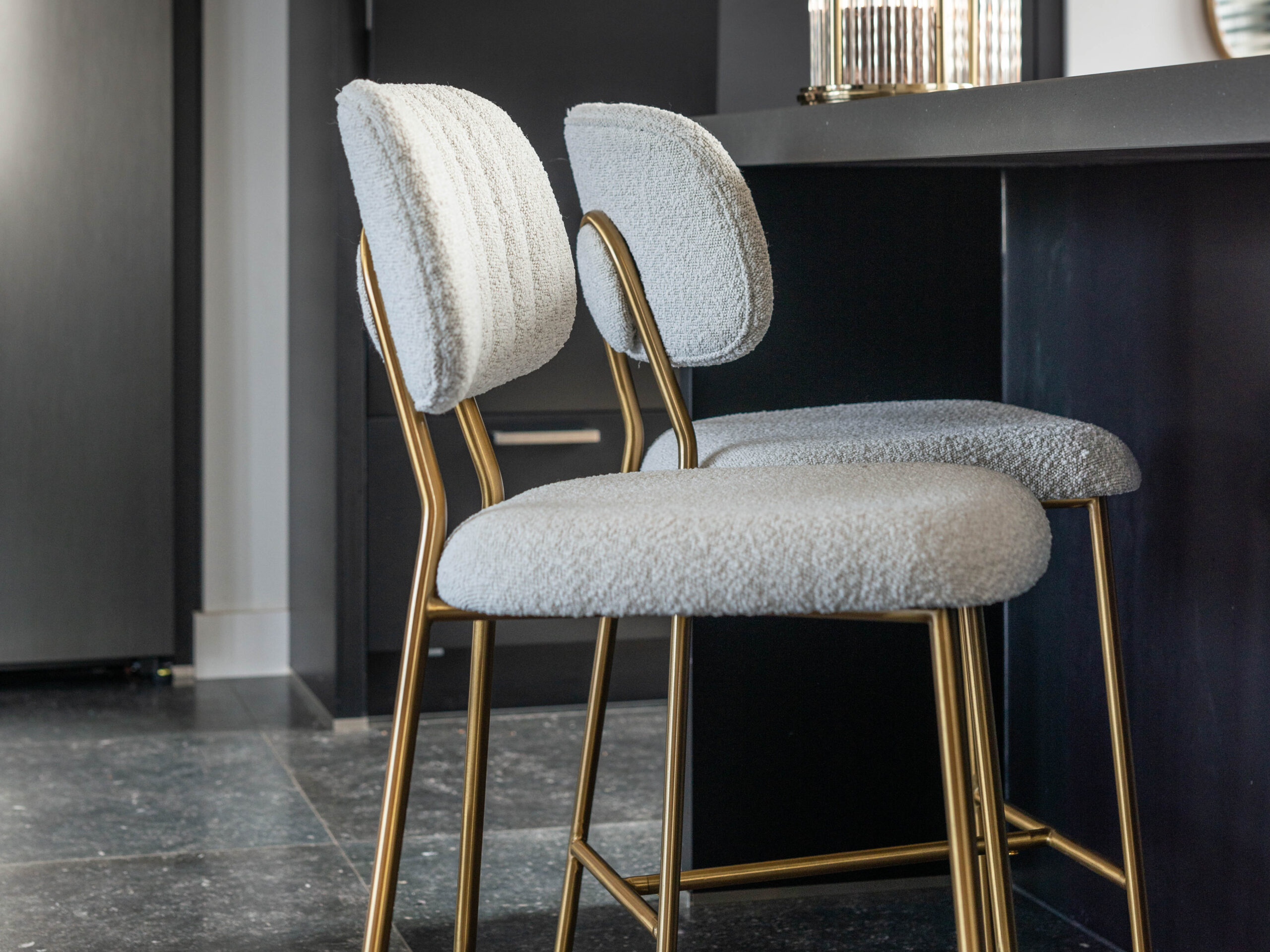 De luxe barkruk Sabino van Robuuste Tafels maakt de Hotel Chique look in de eetkamer compleet. De barkruk heeft een elegant frame van roestvrij staal met een goudkleurige coating. Combineer deze barkruk met een mooie (maatwerk)bartafel en geniet in stijl van een gezellig drankje! Deze barkruk heeft een zithoogte van 65cm of 79cm en is verkrijgbaar in 3 kleuren stof: velours blush, velours jade en bouclé white. Kies je favoriete kleur of combineer meerdere kleuren voor een speels effect.