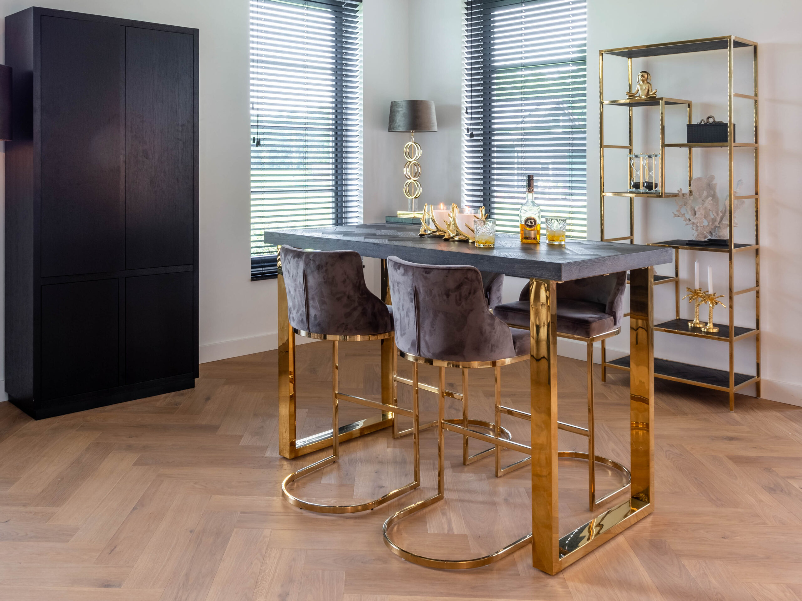 De luxe barkruk Springville van Robuuste Tafels maakt de Hotel Chique look in de eetkamer compleet. De barkruk heeft een elegant frame van roestvrij staal met een goudkleurige coating. Combineer deze barkruk met een mooie (maatwerk)bartafel en geniet in stijl van een gezellig drankje! Deze barkruk heeft een zithoogte van 75cm en is verkrijgbaar in 3 kleuren velours stof: khaki, stone en pink. Kies je favoriete kleur of combineer meerdere kleuren voor een speels effect.