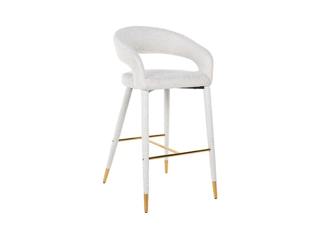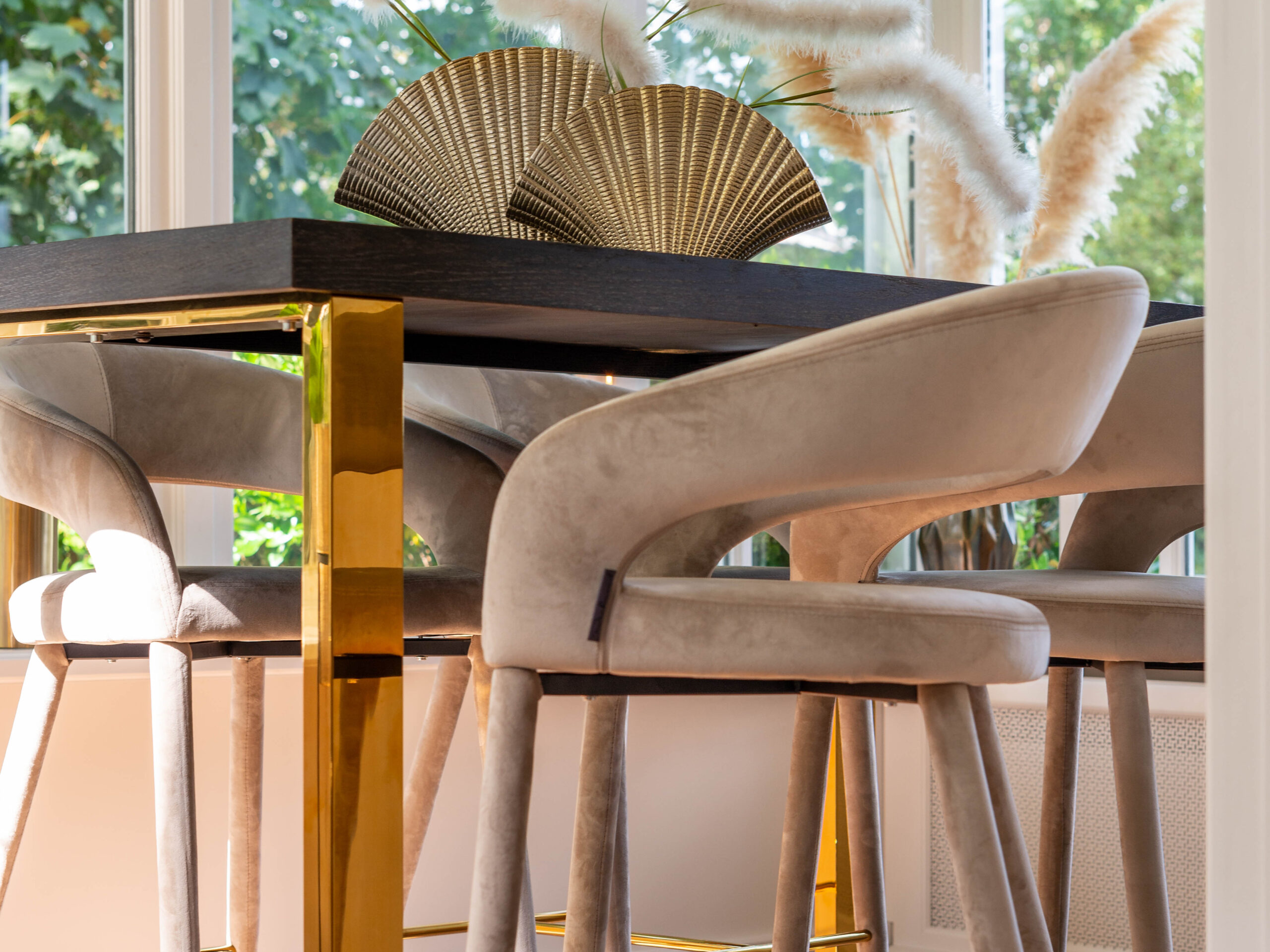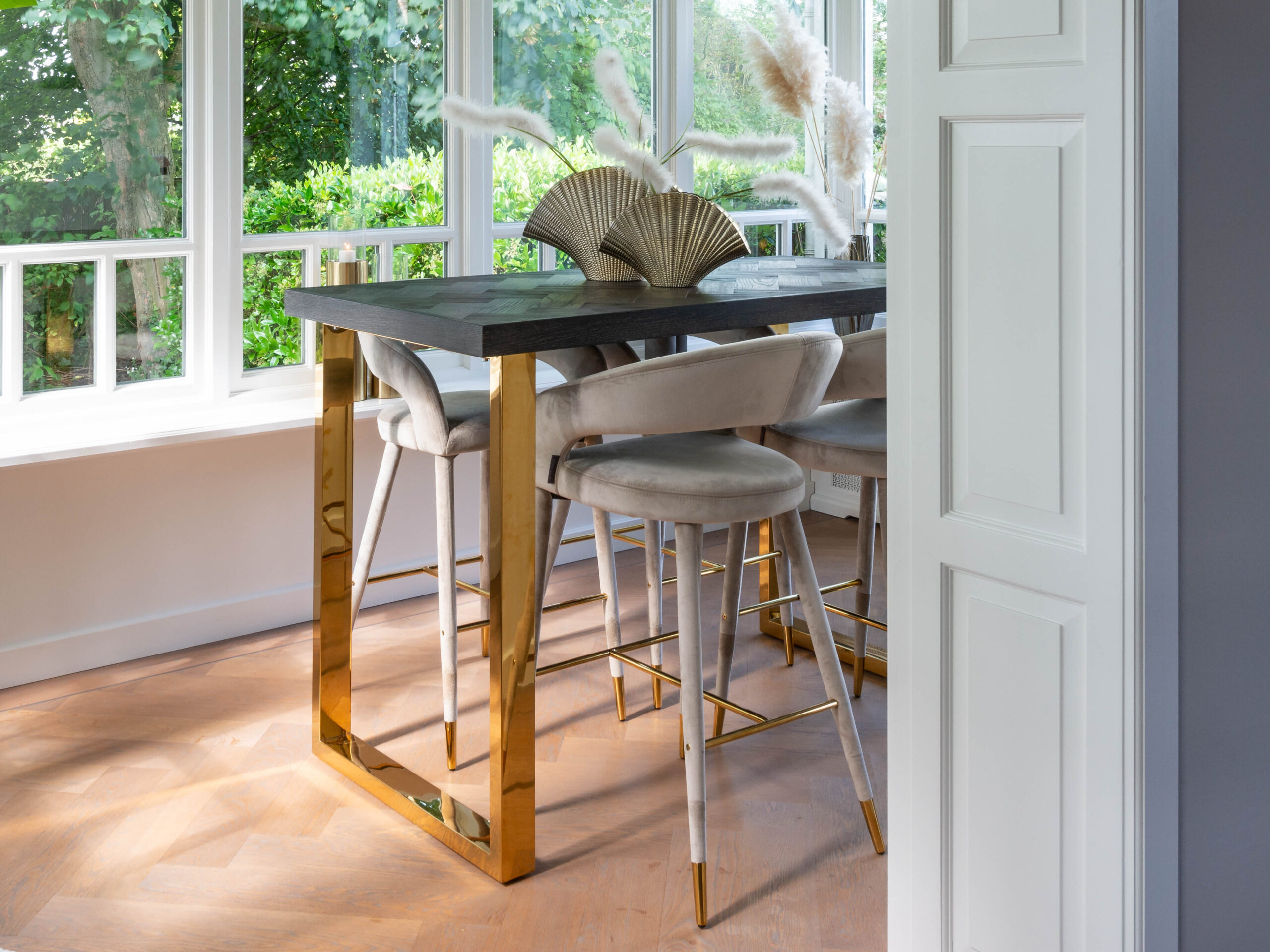 Chique barkruk Tours met leuke en opvallende details. Doorgaans is deze luxe barkruk direct uit voorraad leverbaar in twee kleuren velours (khaki en antraciet) en één bouclé stof (wit). Deze barkruk kunt u herkennen aan meerdere fraaie details. Zoals bijvoorbeeld de ronde gevormde rugleuning, de gouden details aan de poten en de handige voetensteun. Combineer deze krukken met een fraaie bartafel en hanglamp om de uitstraling compleet maken!