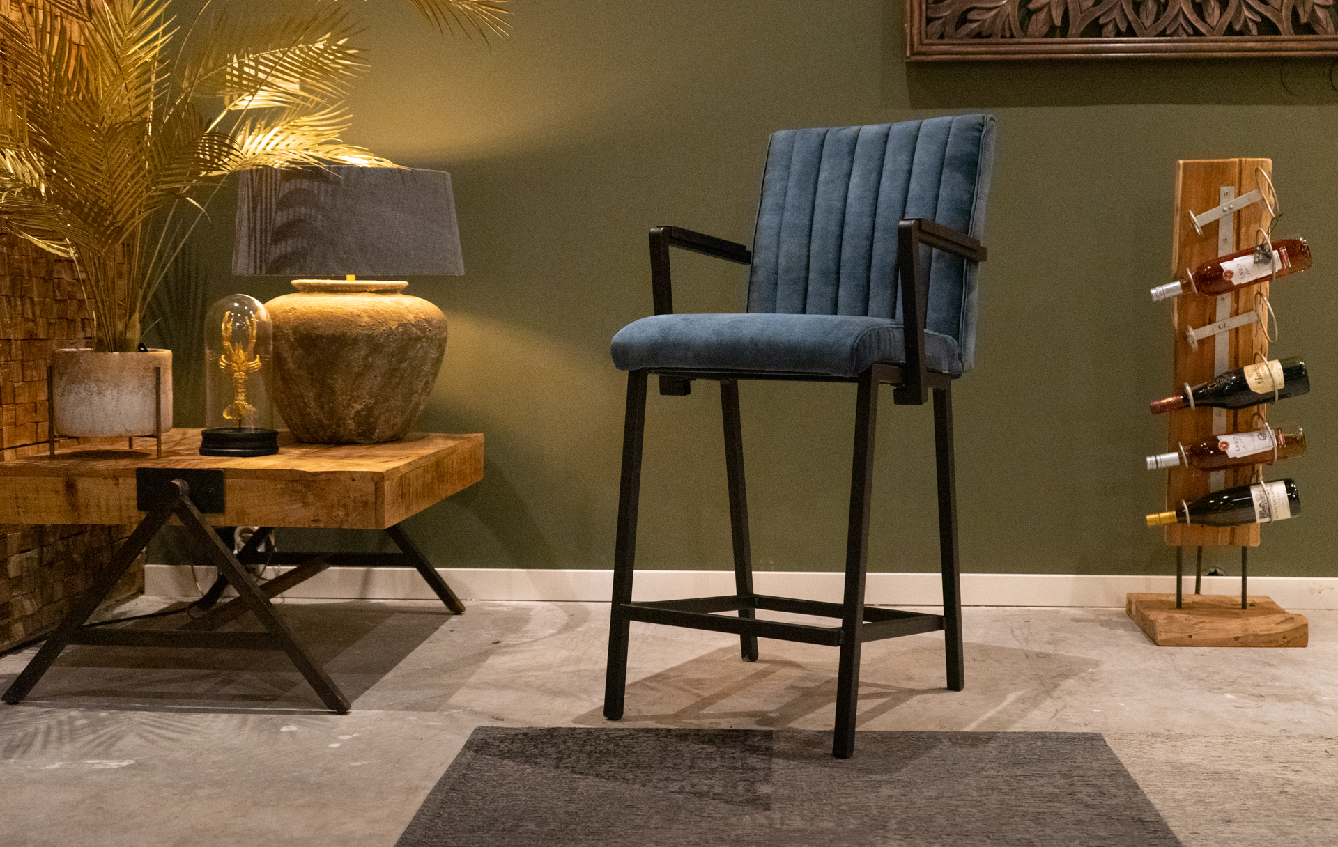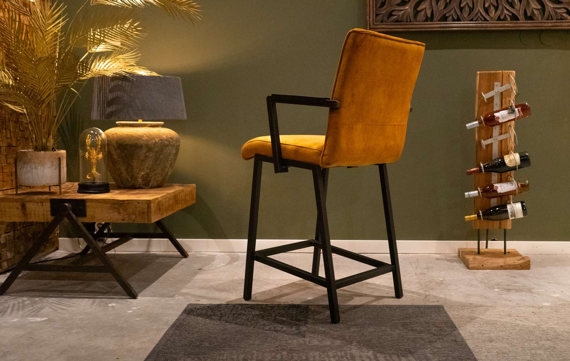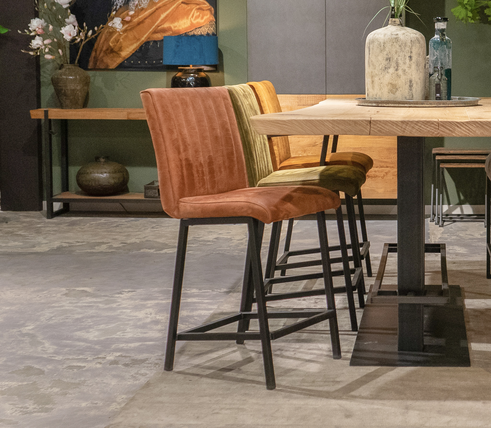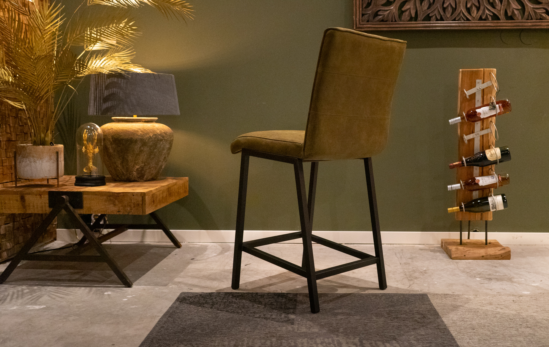 Onze barkruk Vertou past in ieder interieur! Je kunt zelf voor de gewenste uitstraling kiezen. Heb je een industrieel en stoer interieur, zou je bijvoorbeeld voor leder in kleur cognac kunnen kiezen. Heb je een chique interieur, kun je bijvoorbeeld kiezen voor een velvet stof in de kleur antraciet. Hiernaast zijn ook nog de volgende stoffen mogelijk; Relax stof, Bull eco leder en Silent stof.