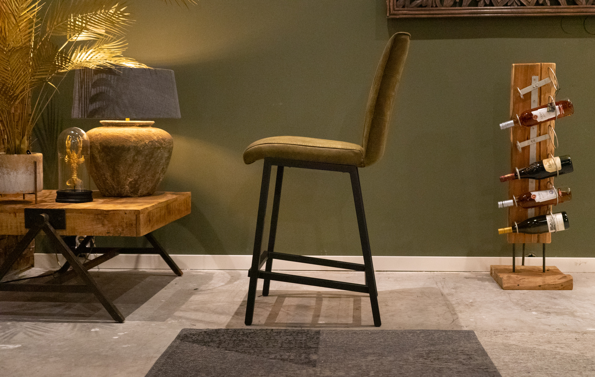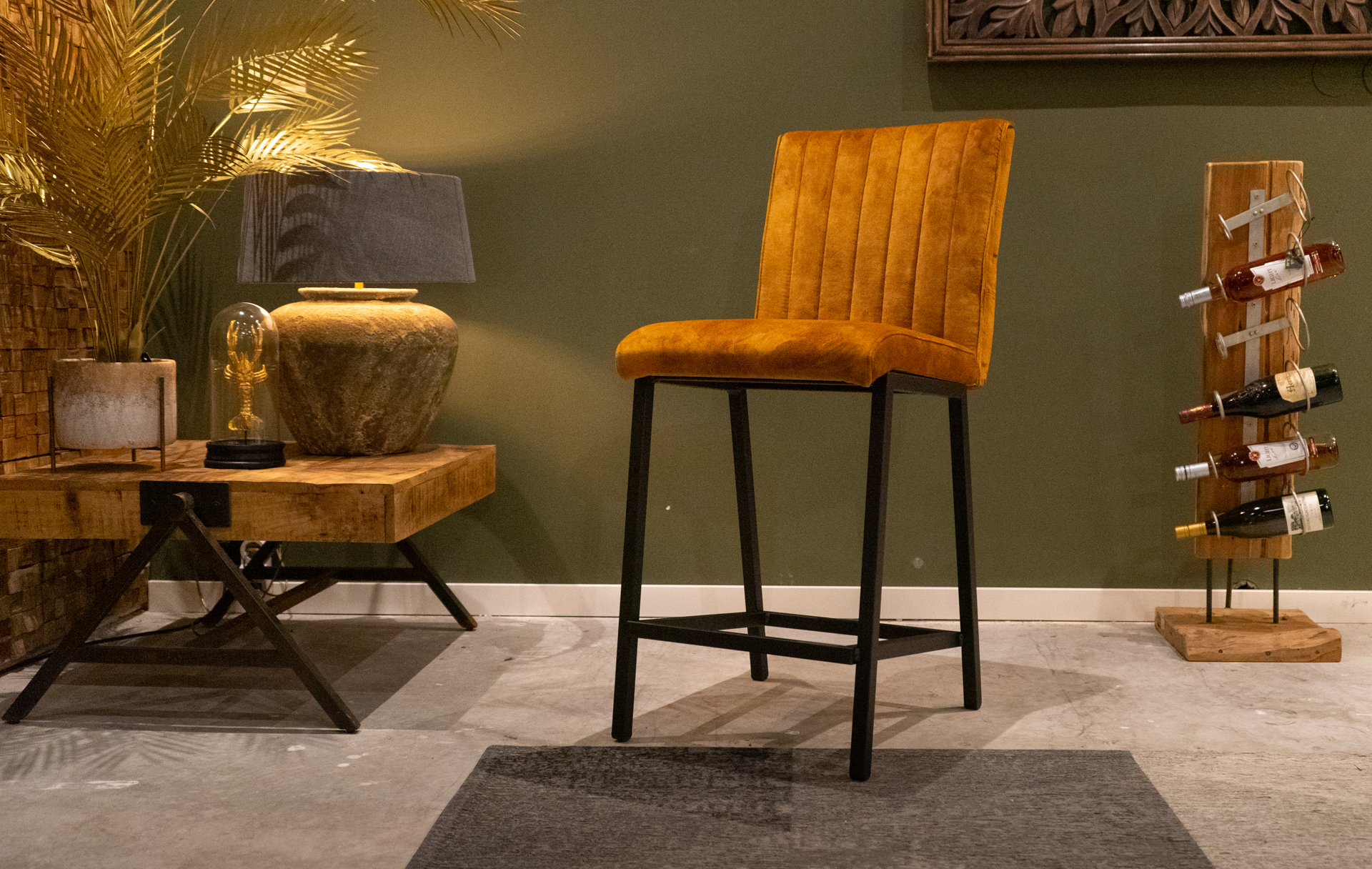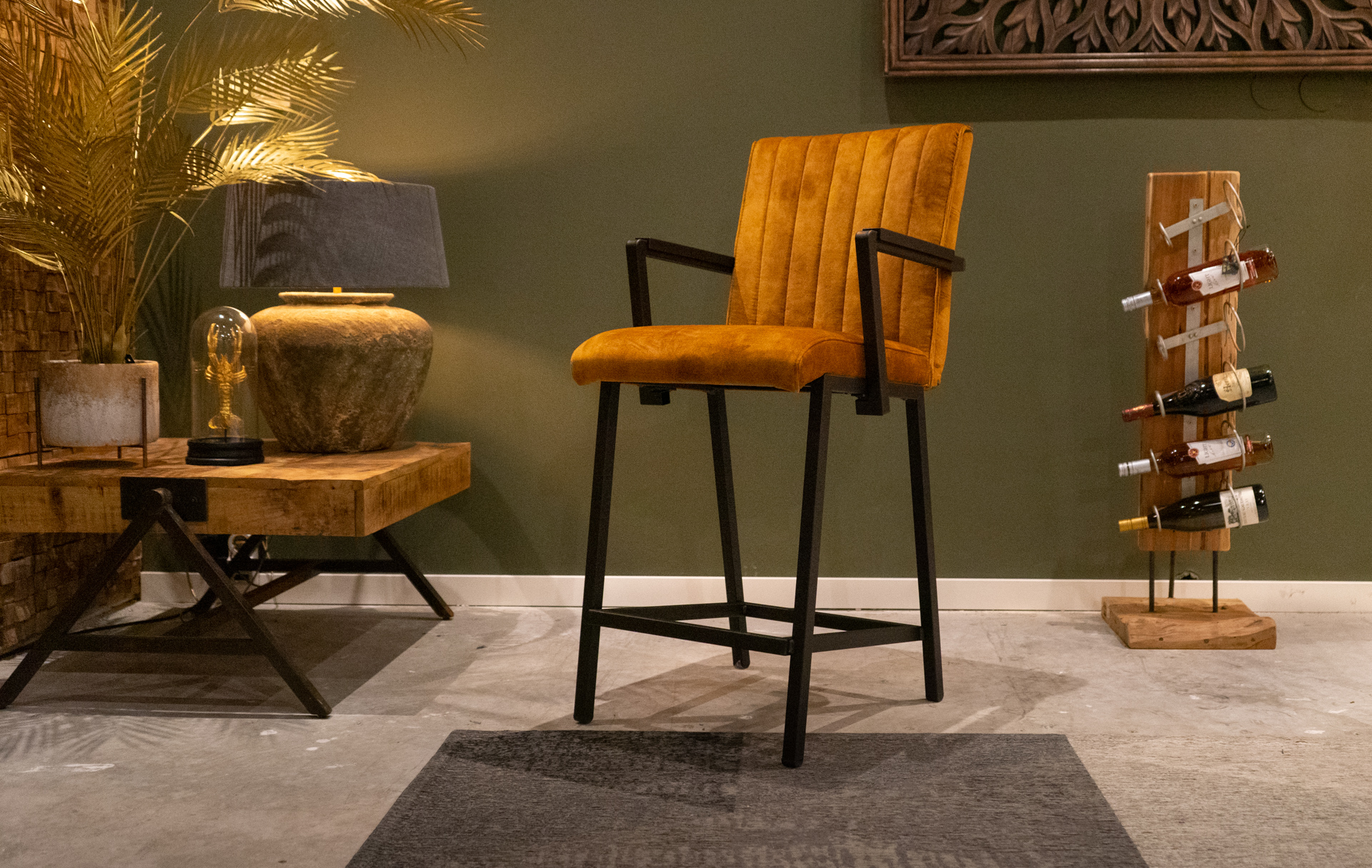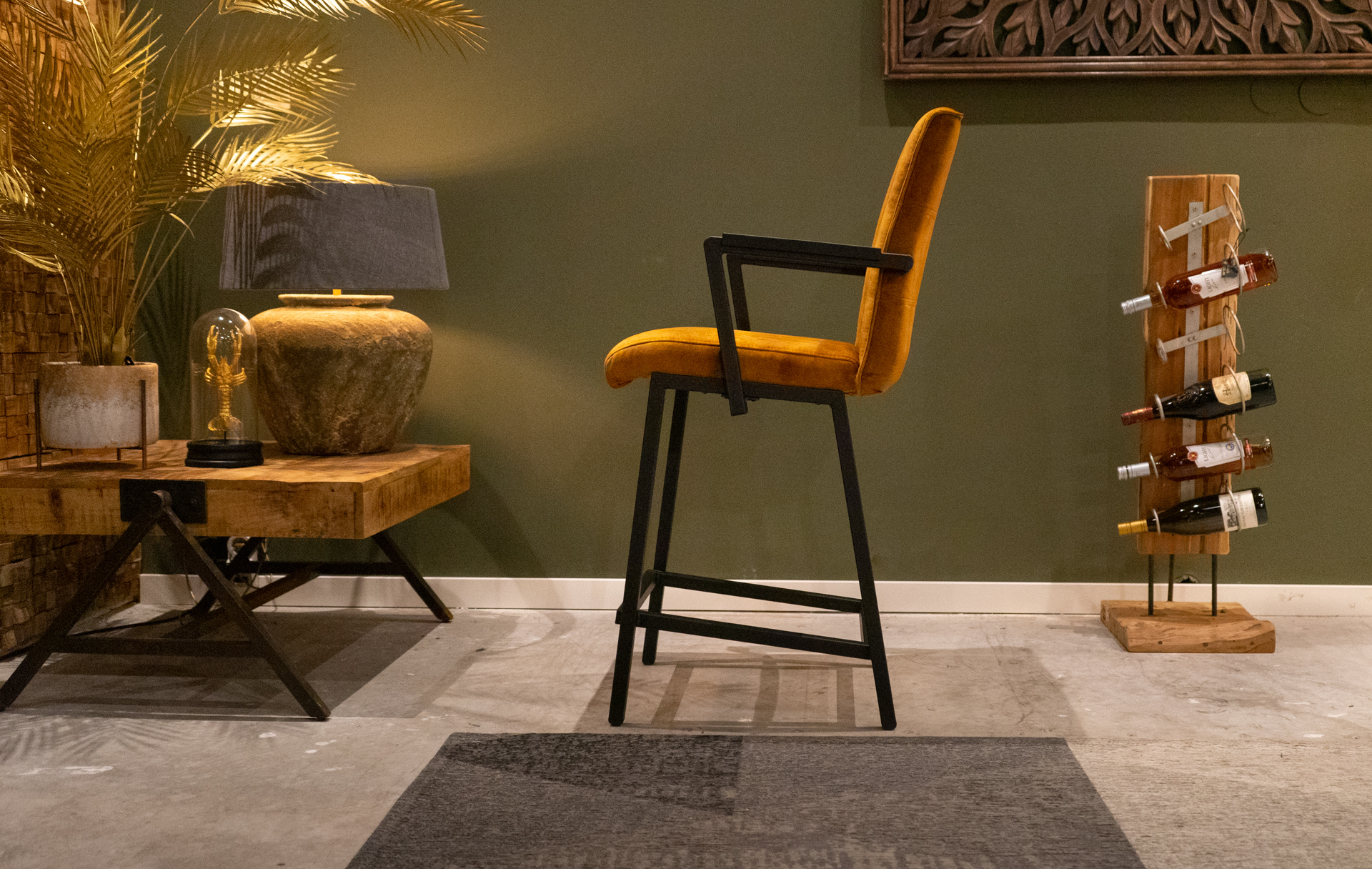 Onze barkruk Vertou past in ieder interieur! Je kunt zelf voor de gewenste uitstraling kiezen. Heb je een industrieel en stoer interieur, zou je bijvoorbeeld voor leder in kleur cognac kunnen kiezen. Heb je een chique interieur, kun je bijvoorbeeld kiezen voor een velvet stof in de kleur antraciet. Hiernaast zijn ook nog de volgende stoffen mogelijk; Relax stof, Bull eco leder en Silent stof.