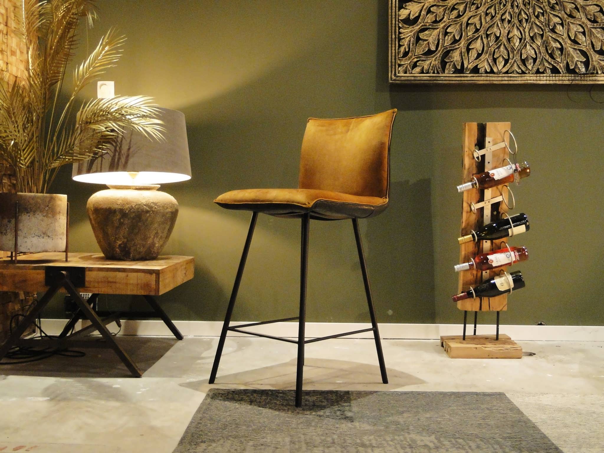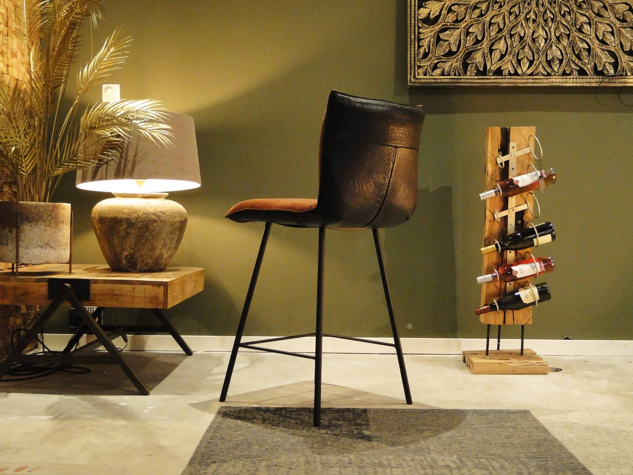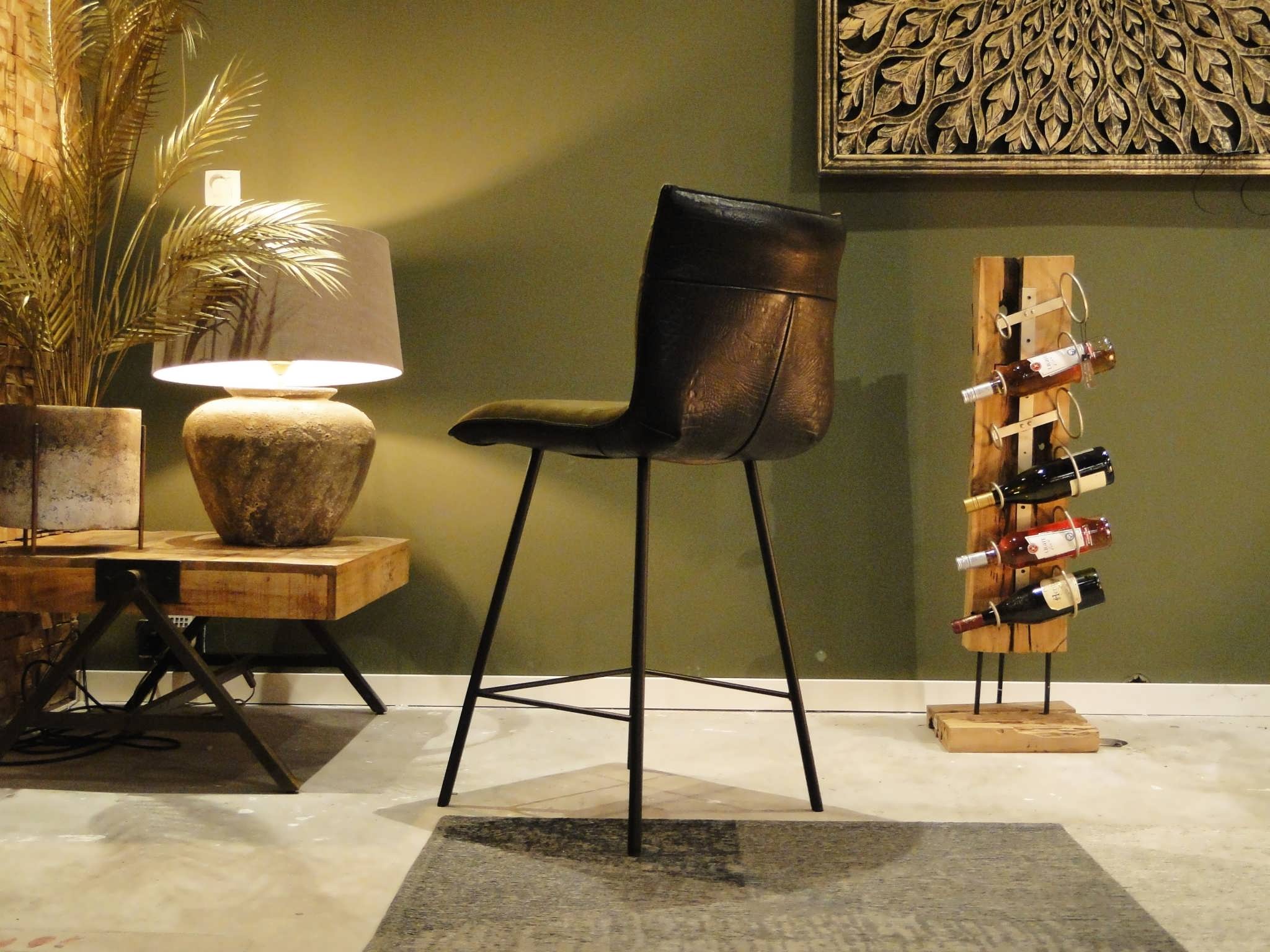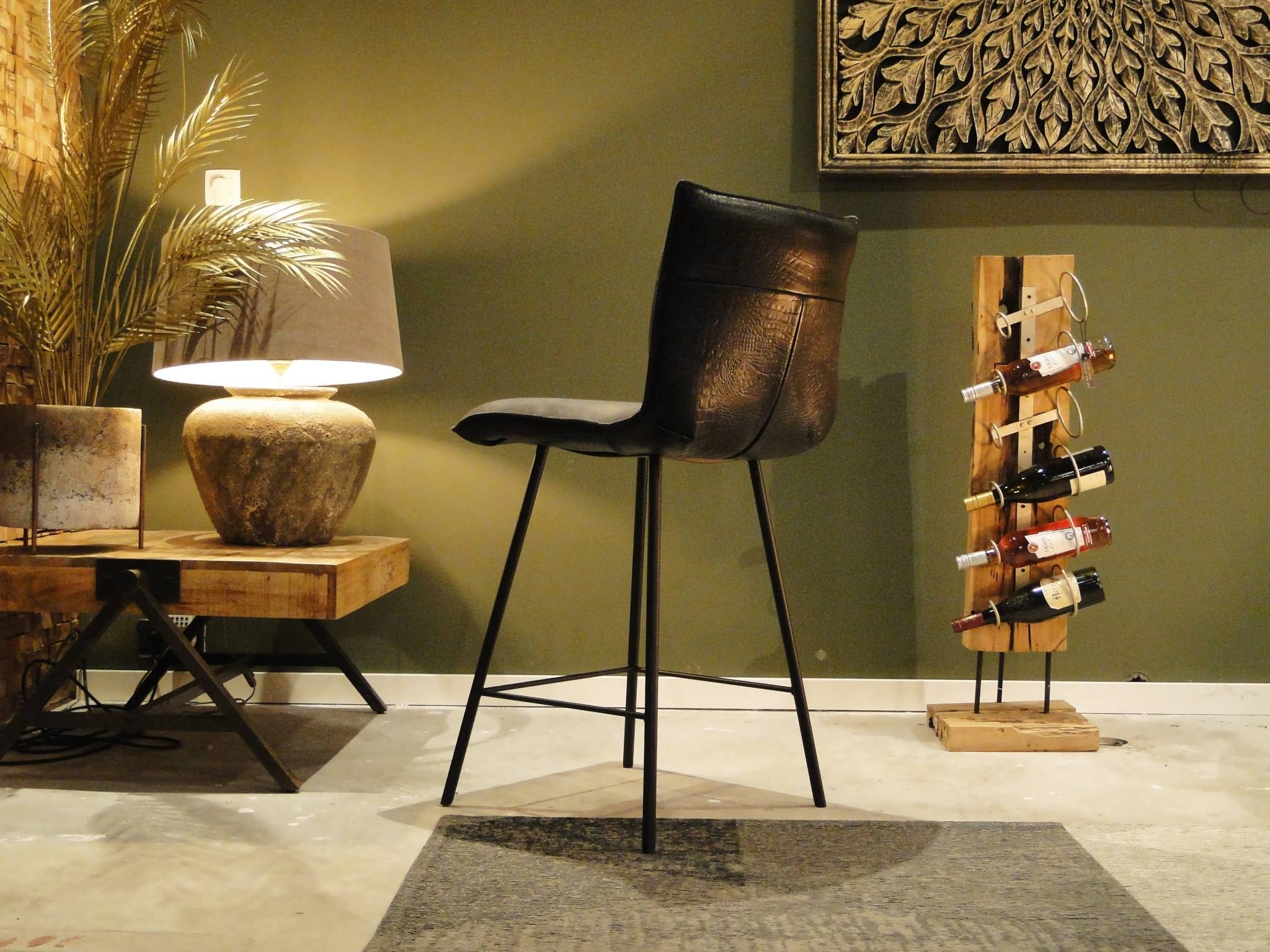 Naast het kiezen van de zithoogte van deze barkruk, kunt u uiteraard kiezen in welk materiaal en welke kleur u de barkruk wilt. Zoals veel van onze meubels, kan ook deze barkruk weer in de volgende stoffen: Relax stof, Velvet stof, Silent stof en Bull eco leder. Naast deze stoffen kan deze barkruk ook in echt leder: Kenia leer, Antigo leer en Caiman leer. Wat is Caiman leer nu eigenlijk? Dit is een ledersoort waar een croco print in gestempeld is. U kunt er ook voor kiezen om de achterkant van de zitting in Caiman leder te nemen en de voorkant, dus de zitiing, in effen Antigo leder.