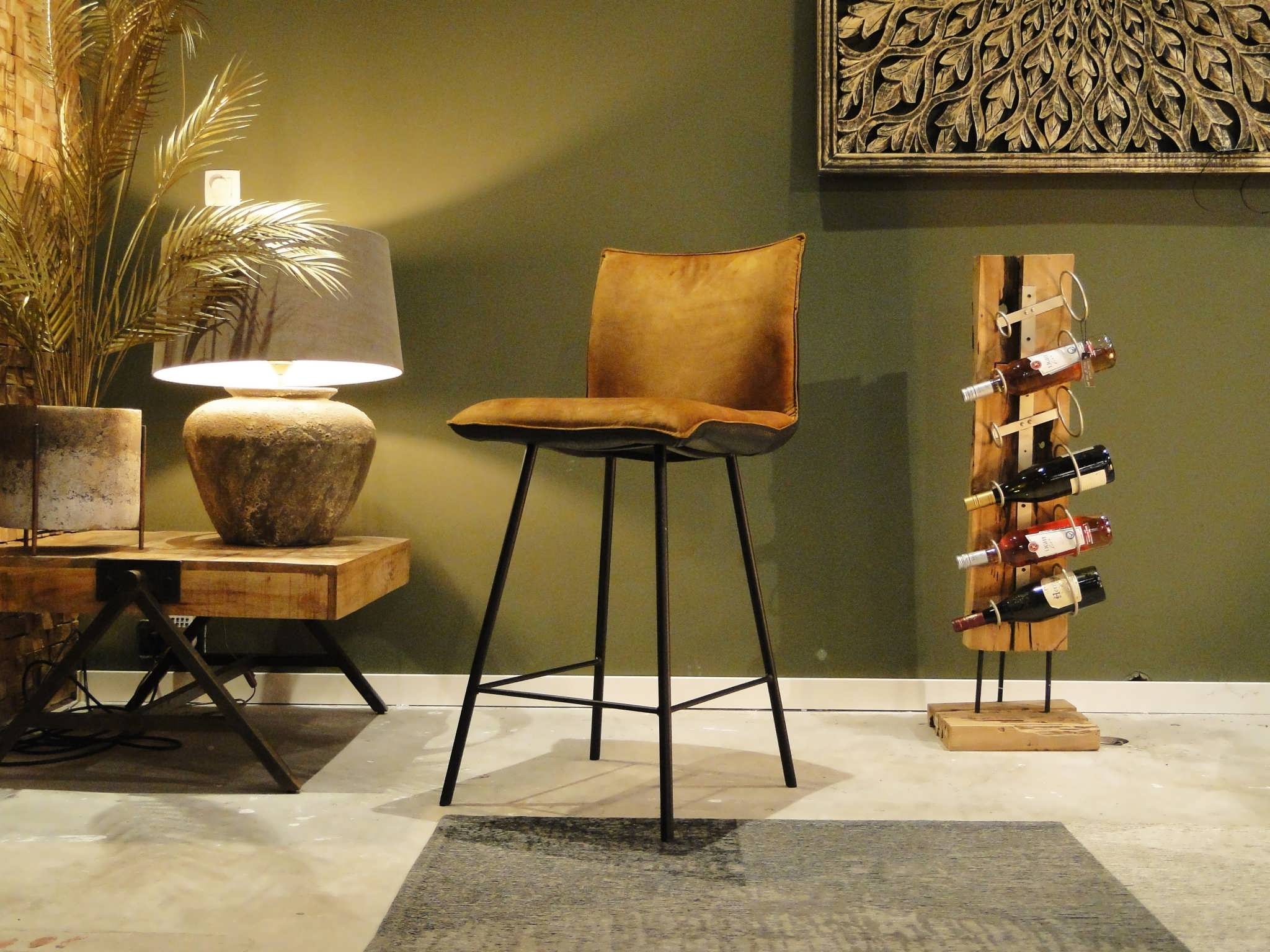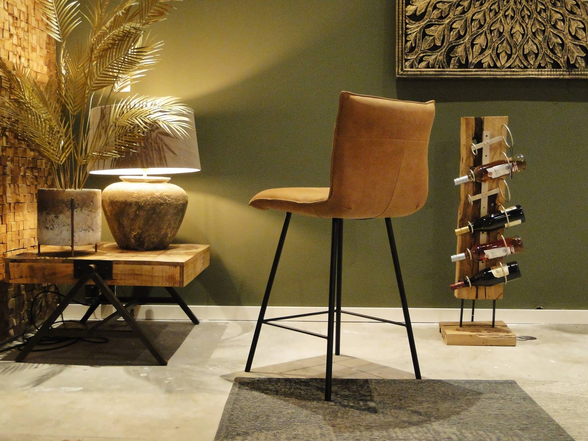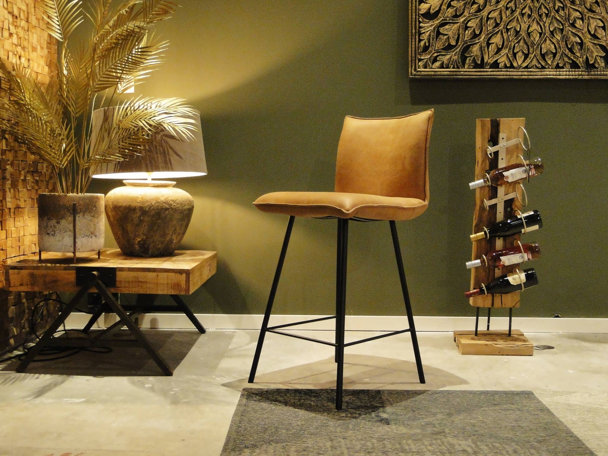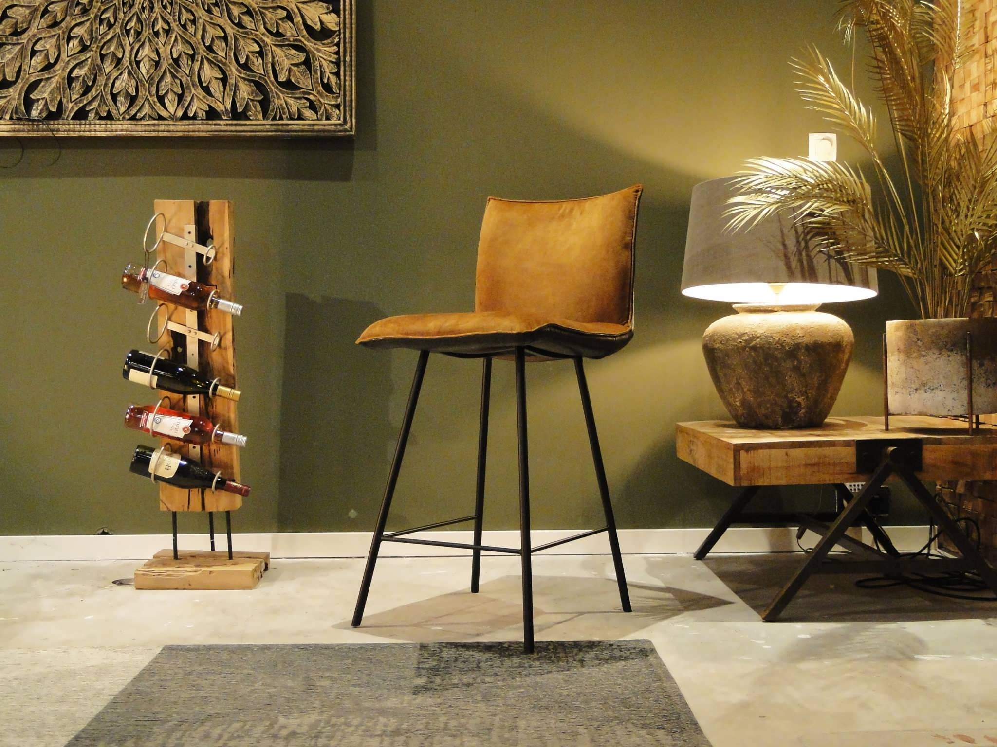 Naast het kiezen van de zithoogte van deze barkruk, kunt u uiteraard kiezen in welk materiaal en welke kleur u de barkruk wilt. Zoals veel van onze meubels, kan ook deze barkruk weer in de volgende stoffen: Relax stof, Velvet stof, Silent stof en Bull eco leder. Naast deze stoffen kan deze barkruk ook in echt leder: Kenia leer, Antigo leer en Caiman leer. Wat is Caiman leer nu eigenlijk? Dit is een ledersoort waar een croco print in gestempeld is. U kunt er ook voor kiezen om de achterkant van de zitting in Caiman leder te nemen en de voorkant, dus de zitiing, in effen Antigo leder.