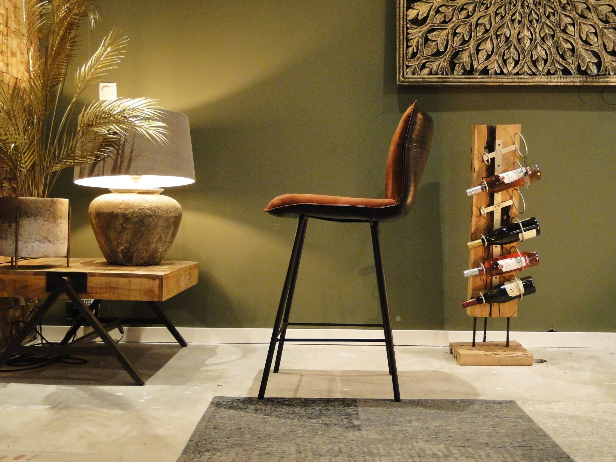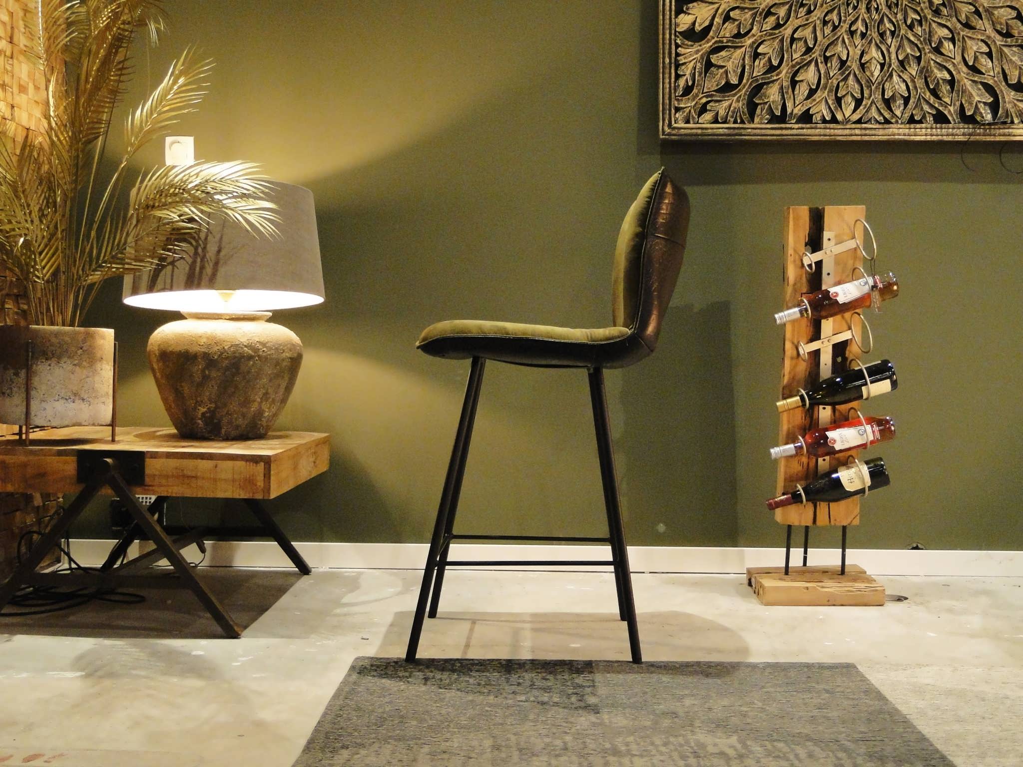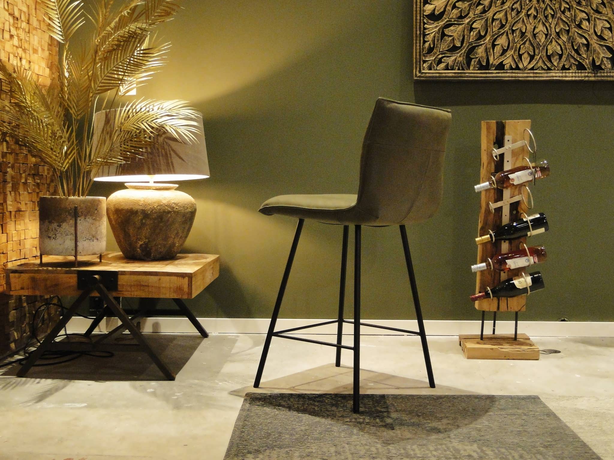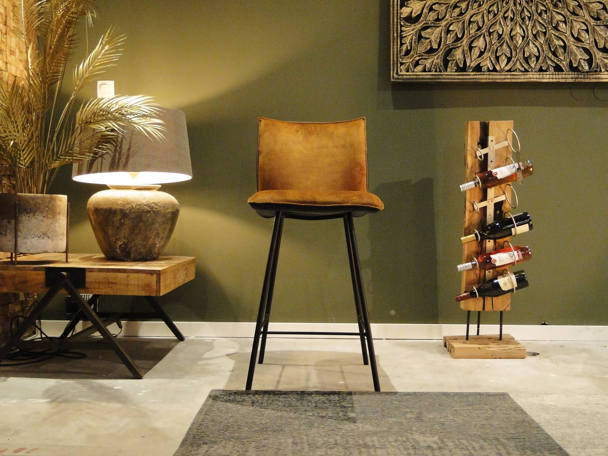 Naast het kiezen van de zithoogte van deze barkruk, kunt u uiteraard kiezen in welk materiaal en welke kleur u de barkruk wilt. Zoals veel van onze meubels, kan ook deze barkruk weer in de volgende stoffen: Relax stof, Velvet stof, Silent stof en Bull eco leder. Naast deze stoffen kan deze barkruk ook in echt leder: Kenia leer, Antigo leer en Caiman leer. Wat is Caiman leer nu eigenlijk? Dit is een ledersoort waar een croco print in gestempeld is. U kunt er ook voor kiezen om de achterkant van de zitting in Caiman leder te nemen en de voorkant, dus de zitiing, in effen Antigo leder.