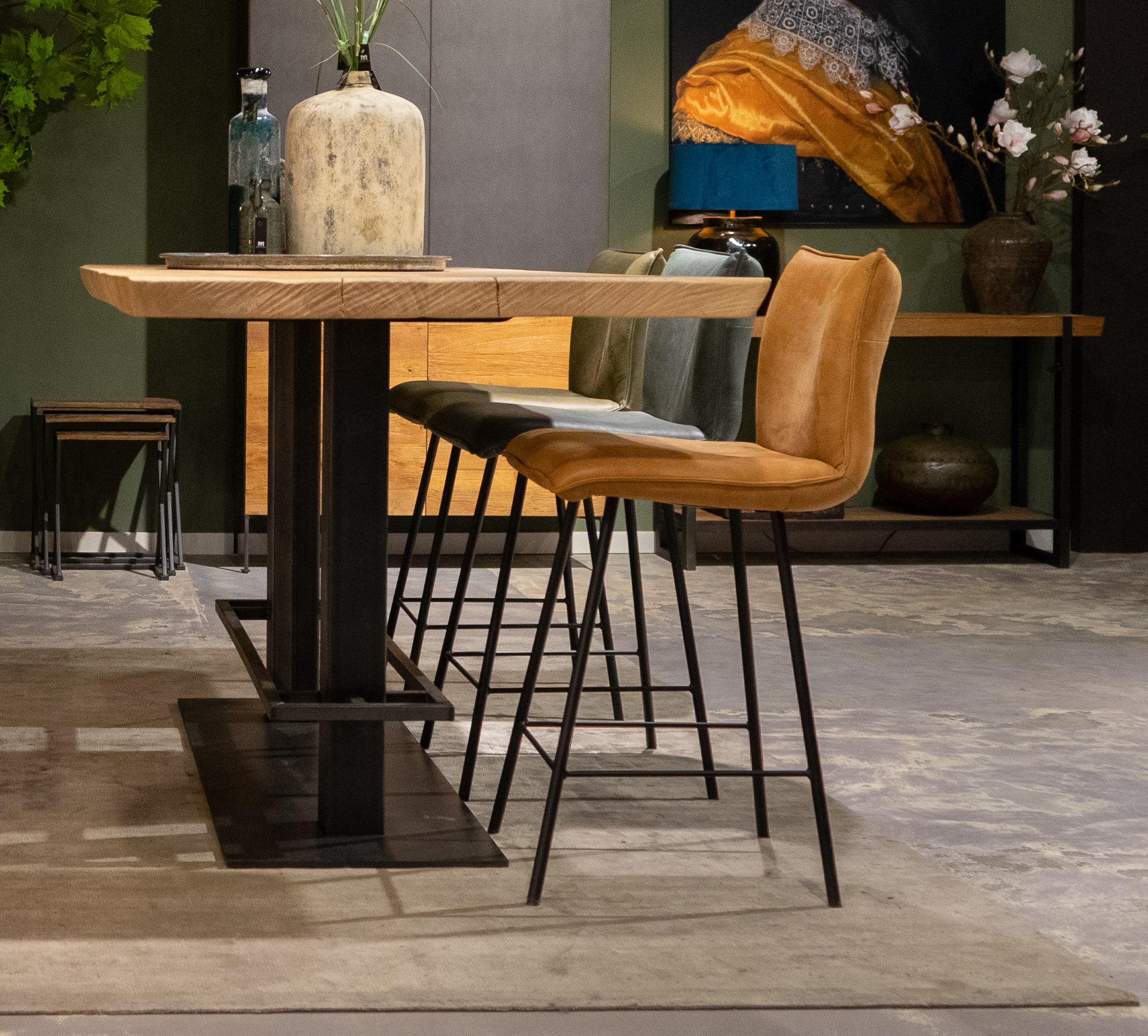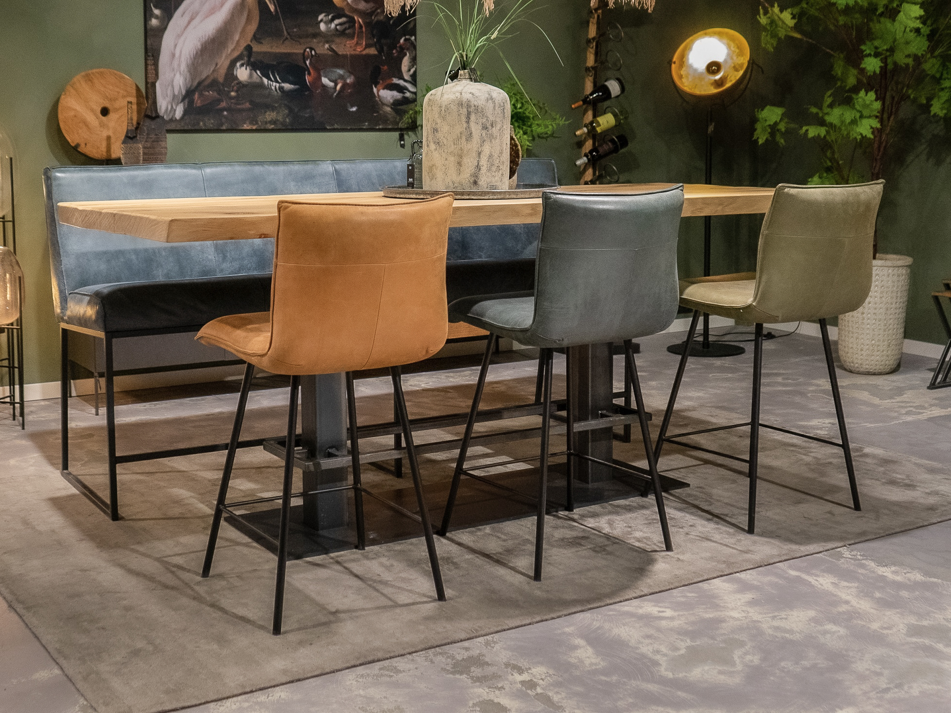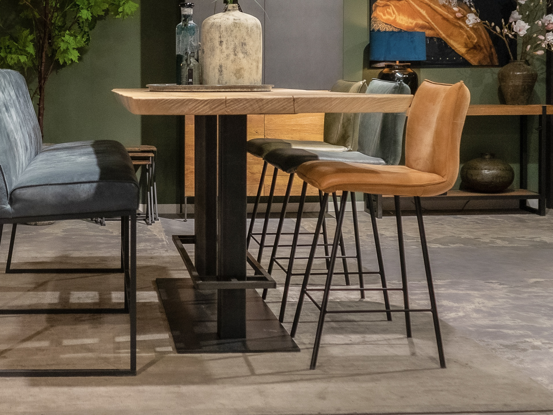 Heeft u ook nog een set nodig rondom uw nieuwe eetkamertafel? Dan kunt u de set compleet maken! Van deze barkrukken hebben we namelijk ook nog een eetkamerbank en eetkamerstoelen. Ook dezelfde materialen kunnen hier weer op toegepast worden.