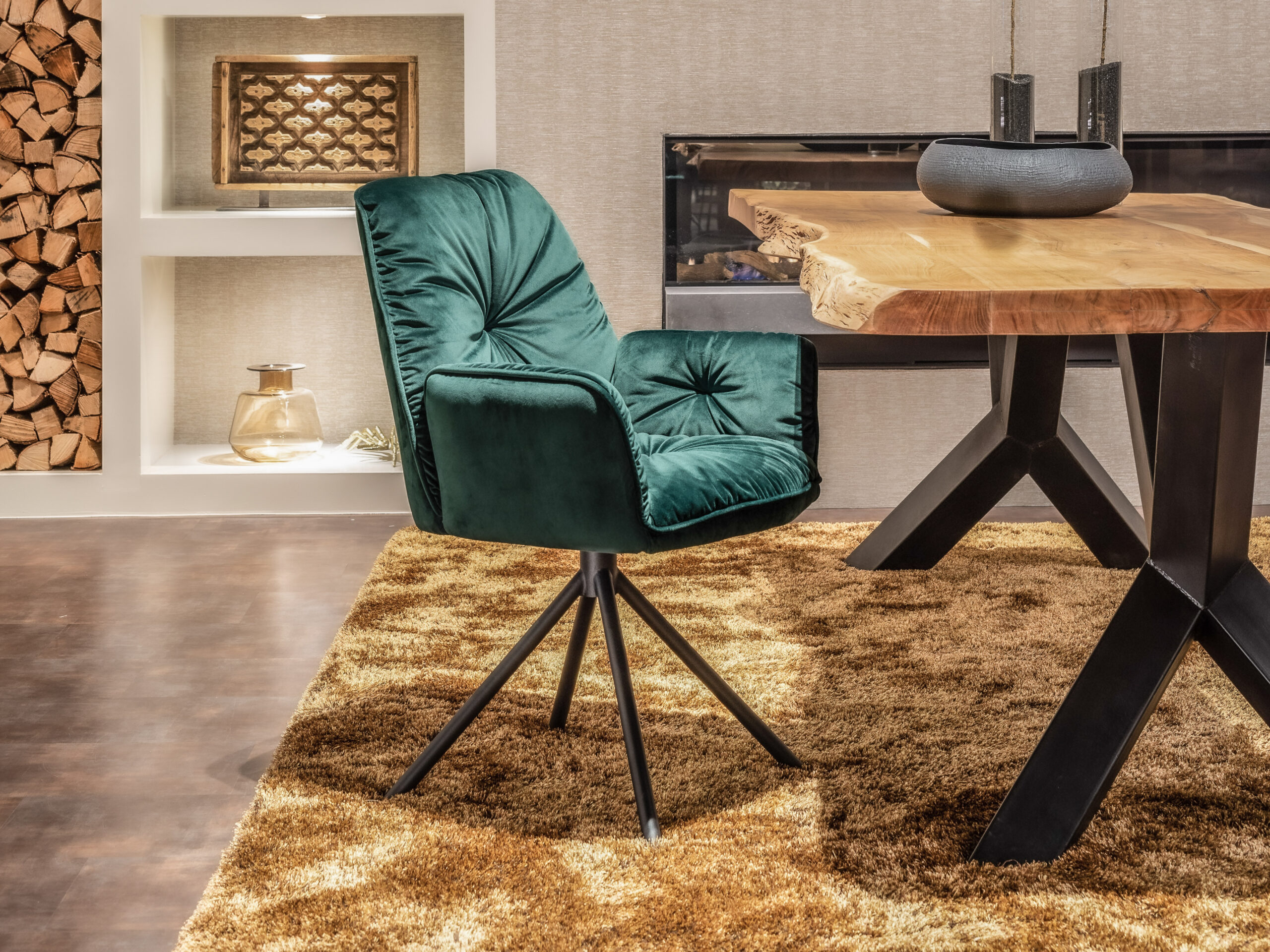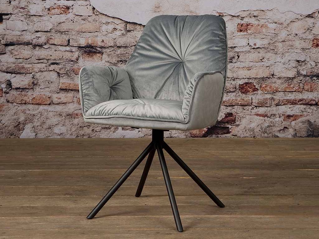 De eetkamerstoel Hamilton is een chique toevoeging aan de collectie eetkamerstoelen van Robuuste Tafels. Deze stoel heeft een prachtige velours bekleding, leverbaar in drie kleuren (grey, green & yellow). De aandacht gaat uit naar het middelpunt en de armleuningen van deze stoel. Hier is de stof namelijk naar binnen gestikt. De armhoogte van deze stoel is 66cm. Dit zorgt extra comfort en zorgt ervoor dat de stoel nagenoeg onder iedere eetkamertafel zal passen.