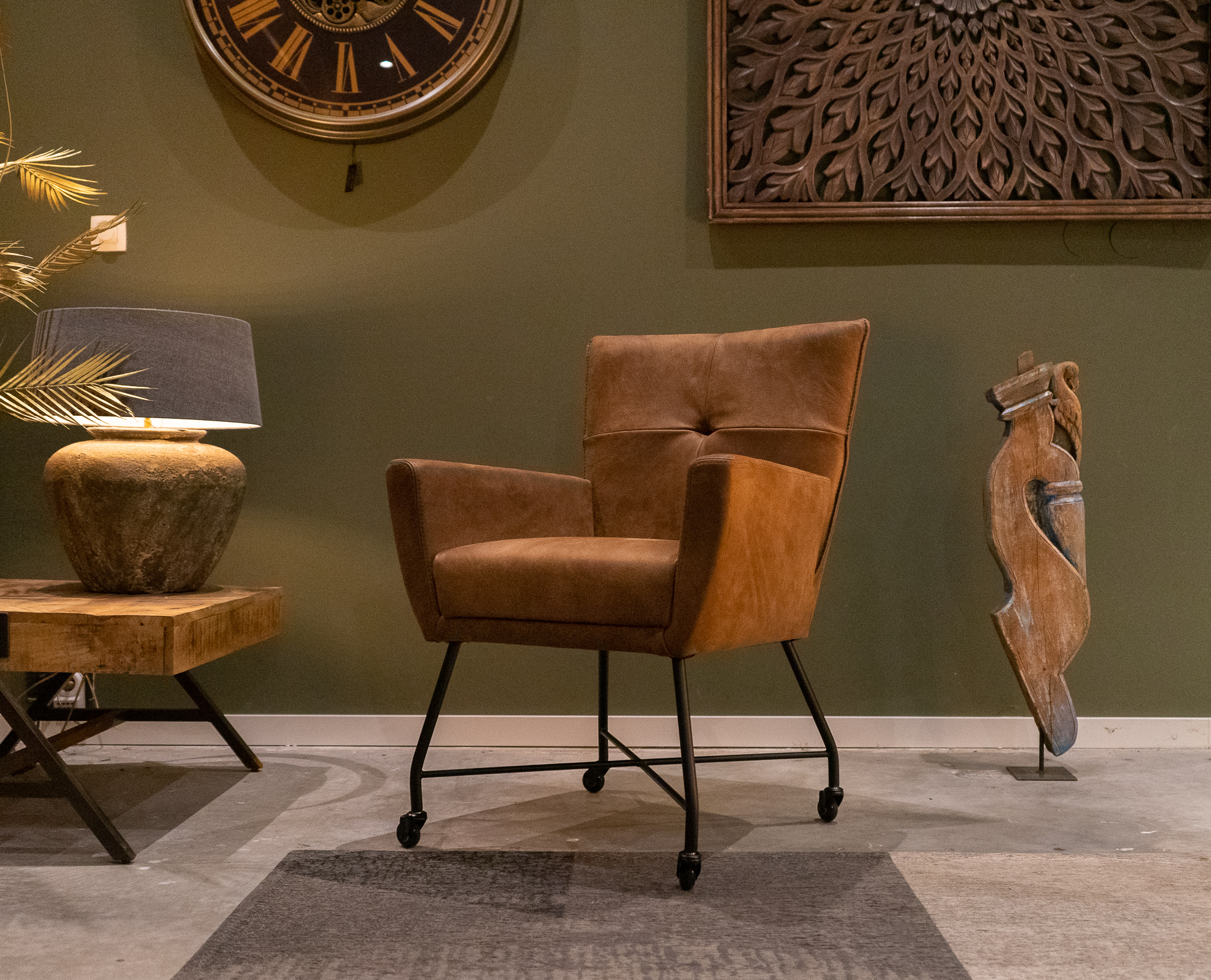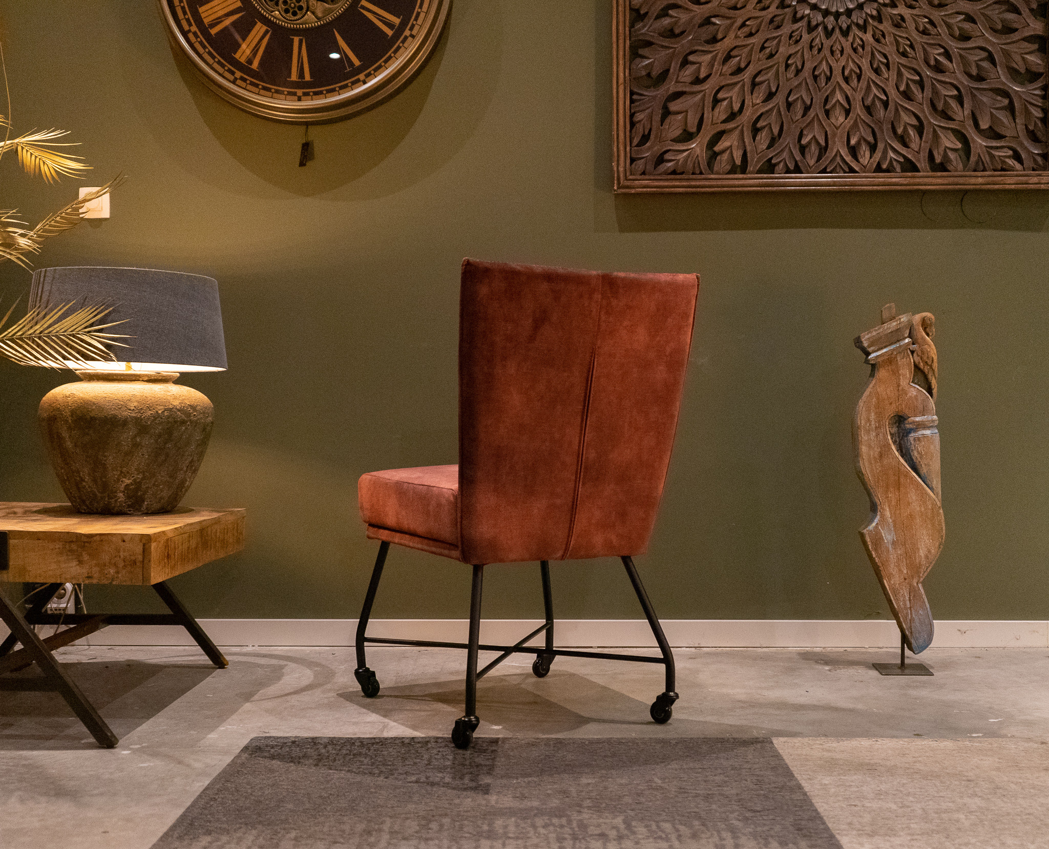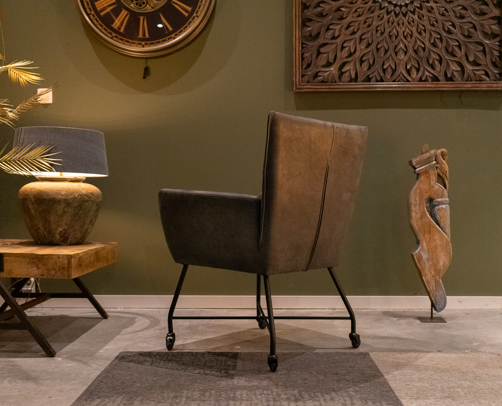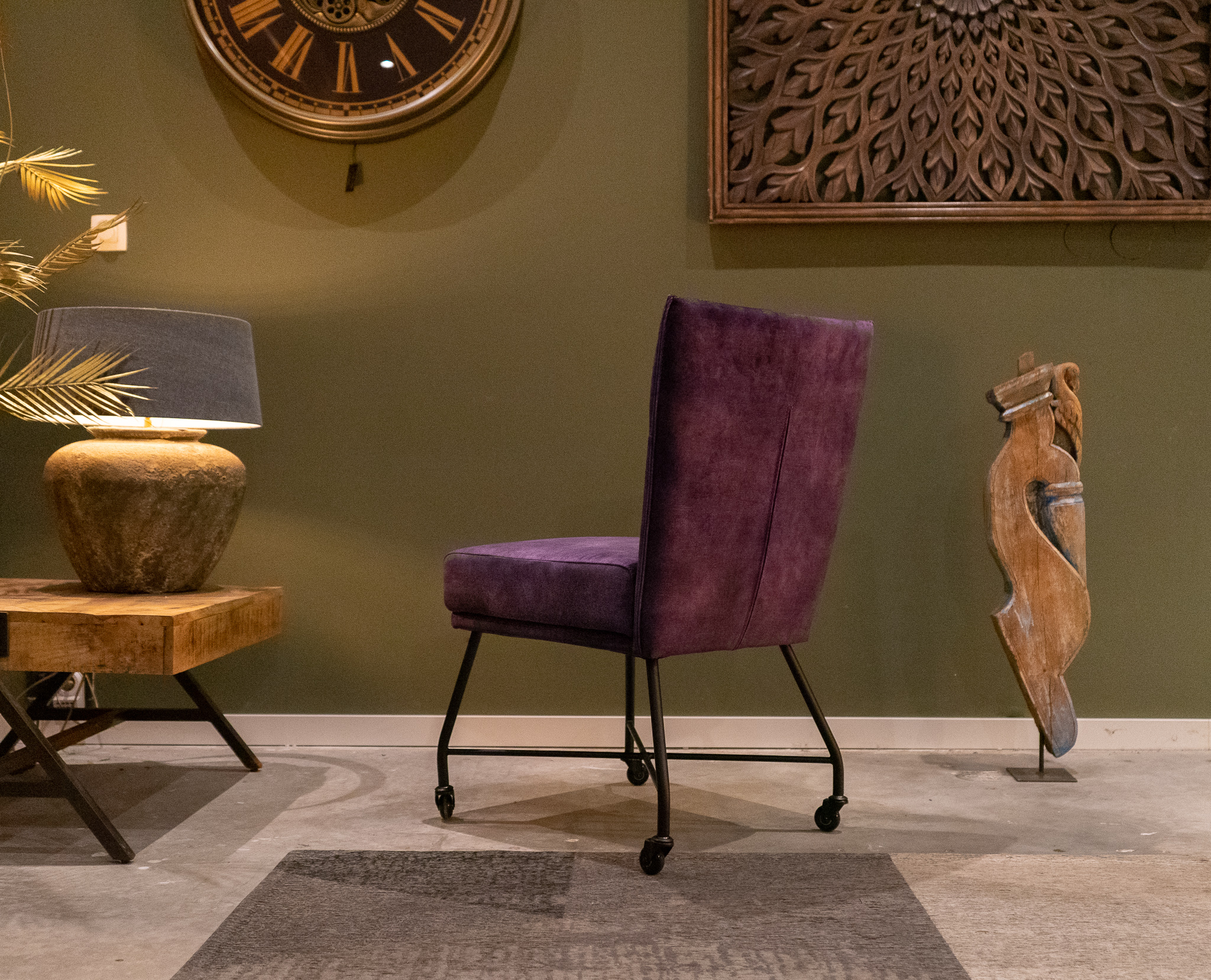 Stoere industriële eetkamerstoel leverbaar in leer en stof, zowel met als zonder wielen en met en zonder armleuning. Dit model leveren we in 2 soorten doorgekleurd leer en in 3 soorten stof waarvan 1 exclusief bij ons verkrijgbaar. Zowel in het stof als leer een zeer luxe eetkamerstoel, leverbaar met of zonder armleuning. Het metalen frame is voorzien van een beschermende poedercoat en maakt de stoere uitstraling compleet. Tevens leverbaar als barkruk of als eetkamerbank tot 240cm!