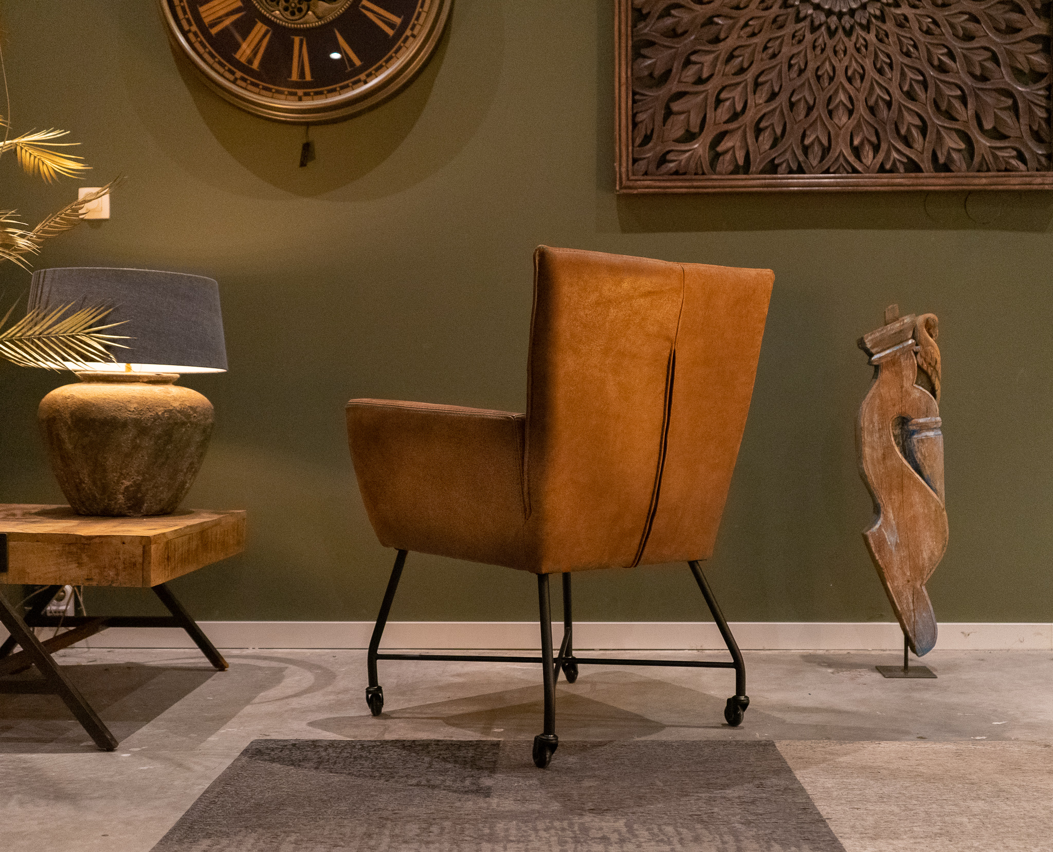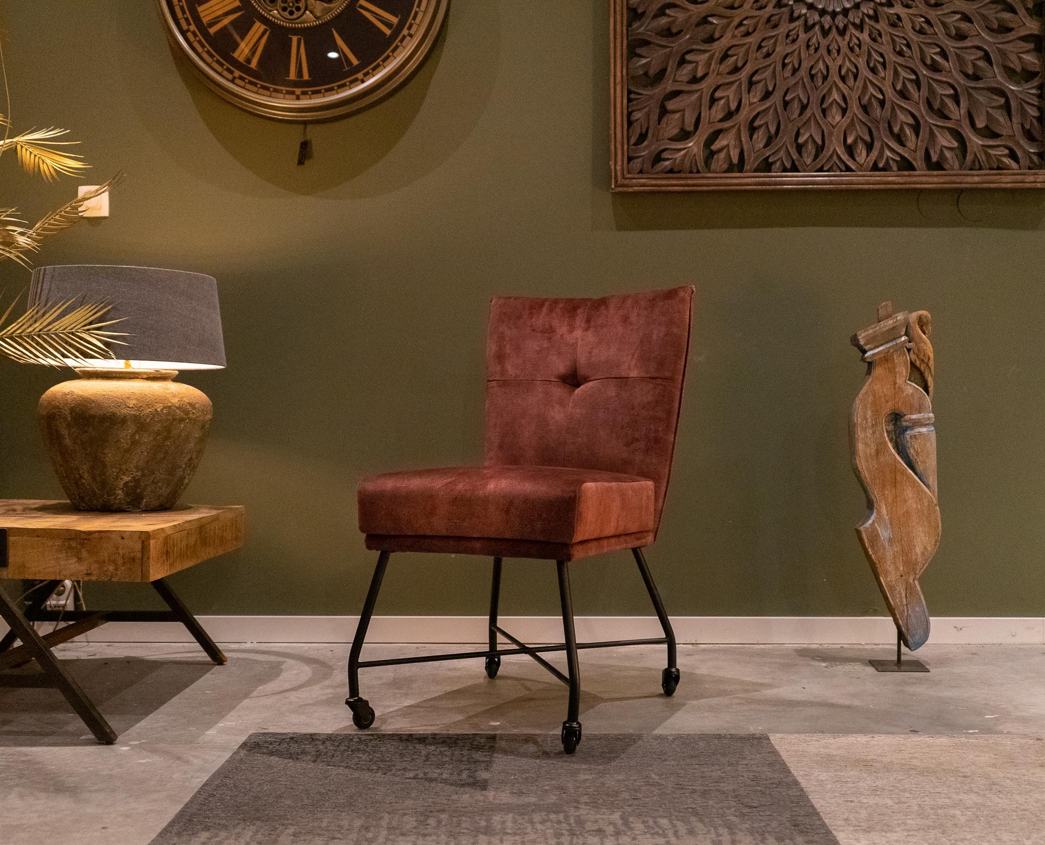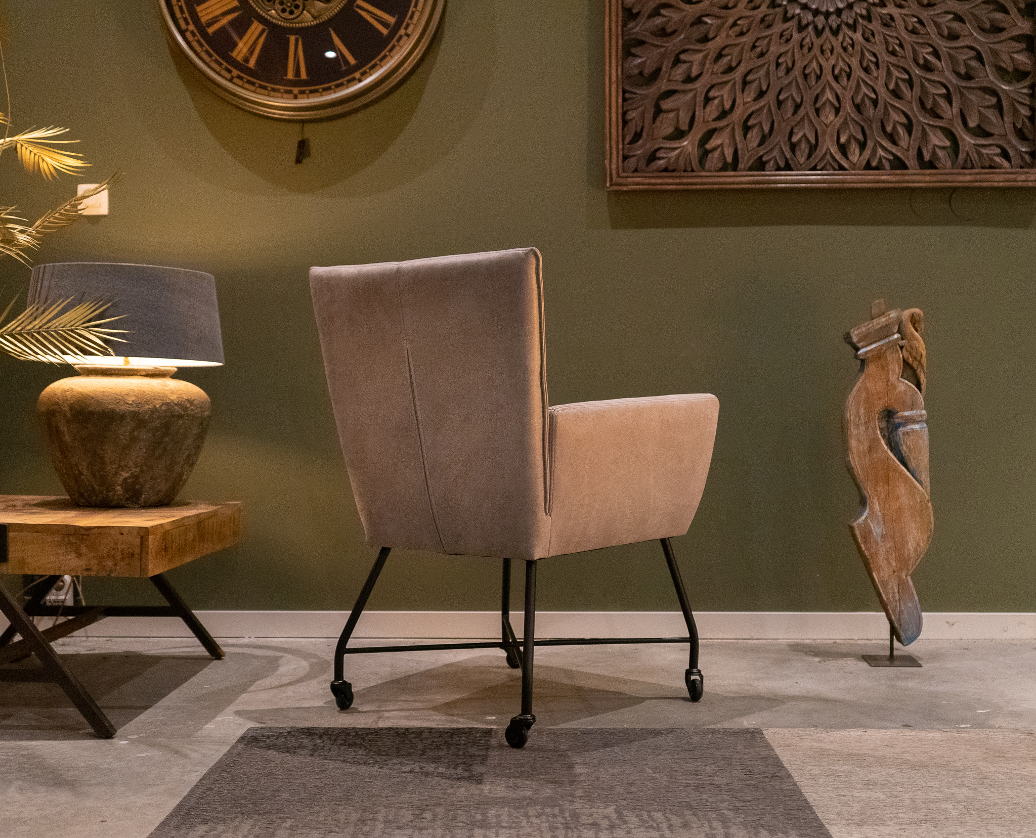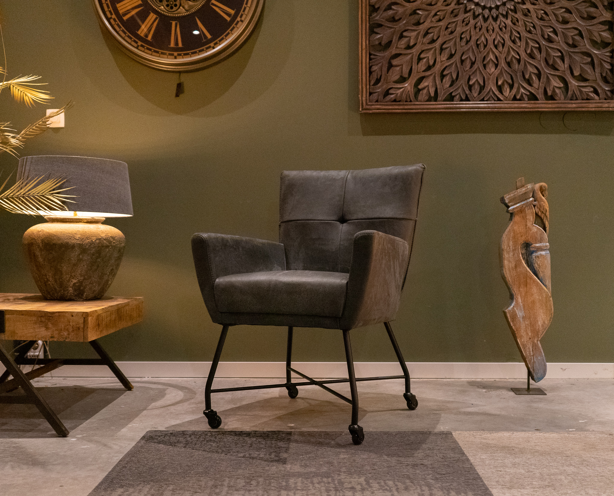 Stoere industriële eetkamerstoel leverbaar in leer en stof, zowel met als zonder wielen en met en zonder armleuning. Dit model leveren we in 2 soorten doorgekleurd leer en in 3 soorten stof waarvan 1 exclusief bij ons verkrijgbaar. Zowel in het stof als leer een zeer luxe eetkamerstoel, leverbaar met of zonder armleuning. Het metalen frame is voorzien van een beschermende poedercoat en maakt de stoere uitstraling compleet. Tevens leverbaar als barkruk of als eetkamerbank tot 240cm!