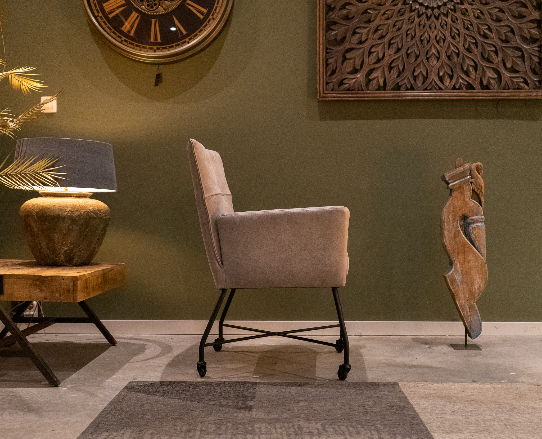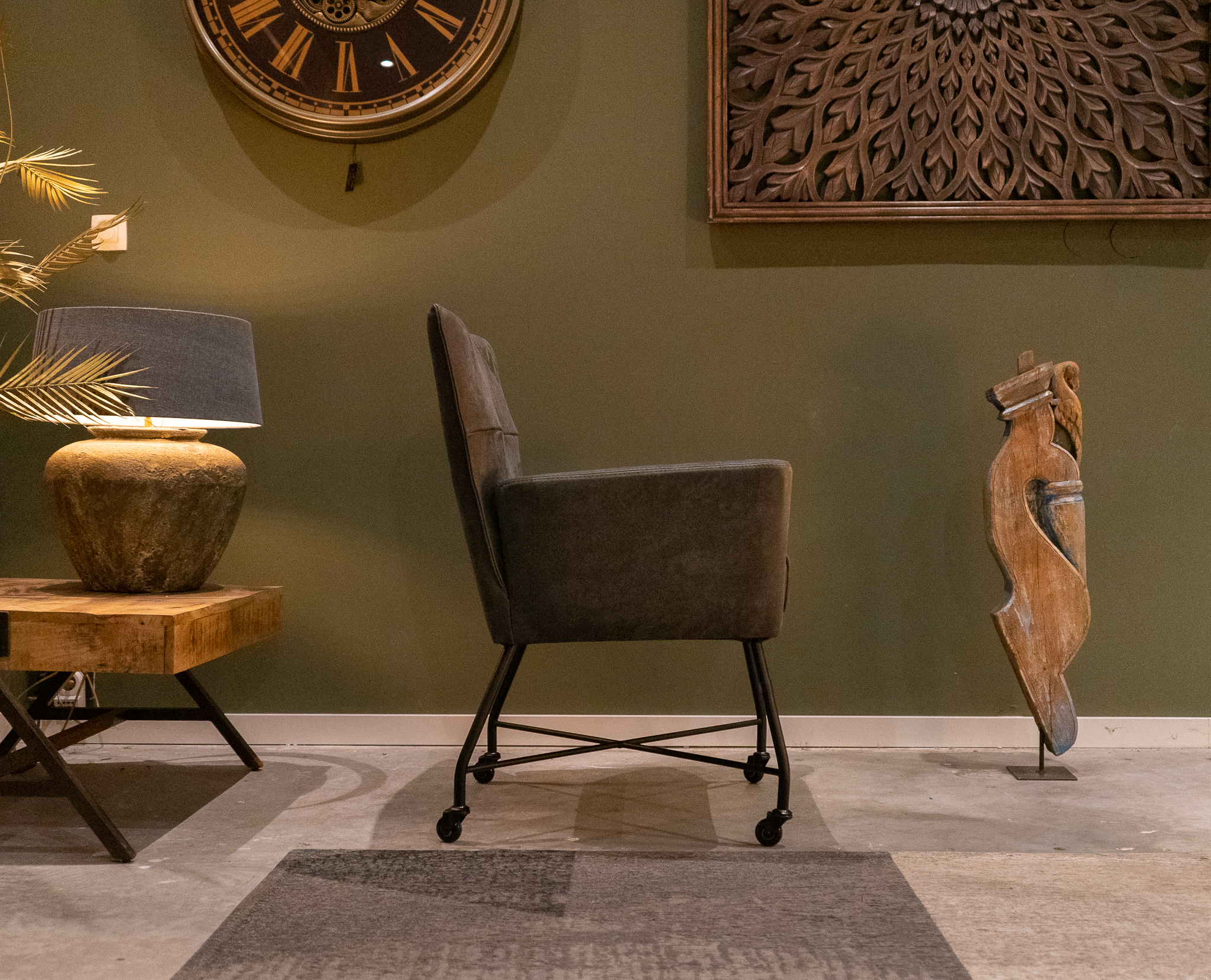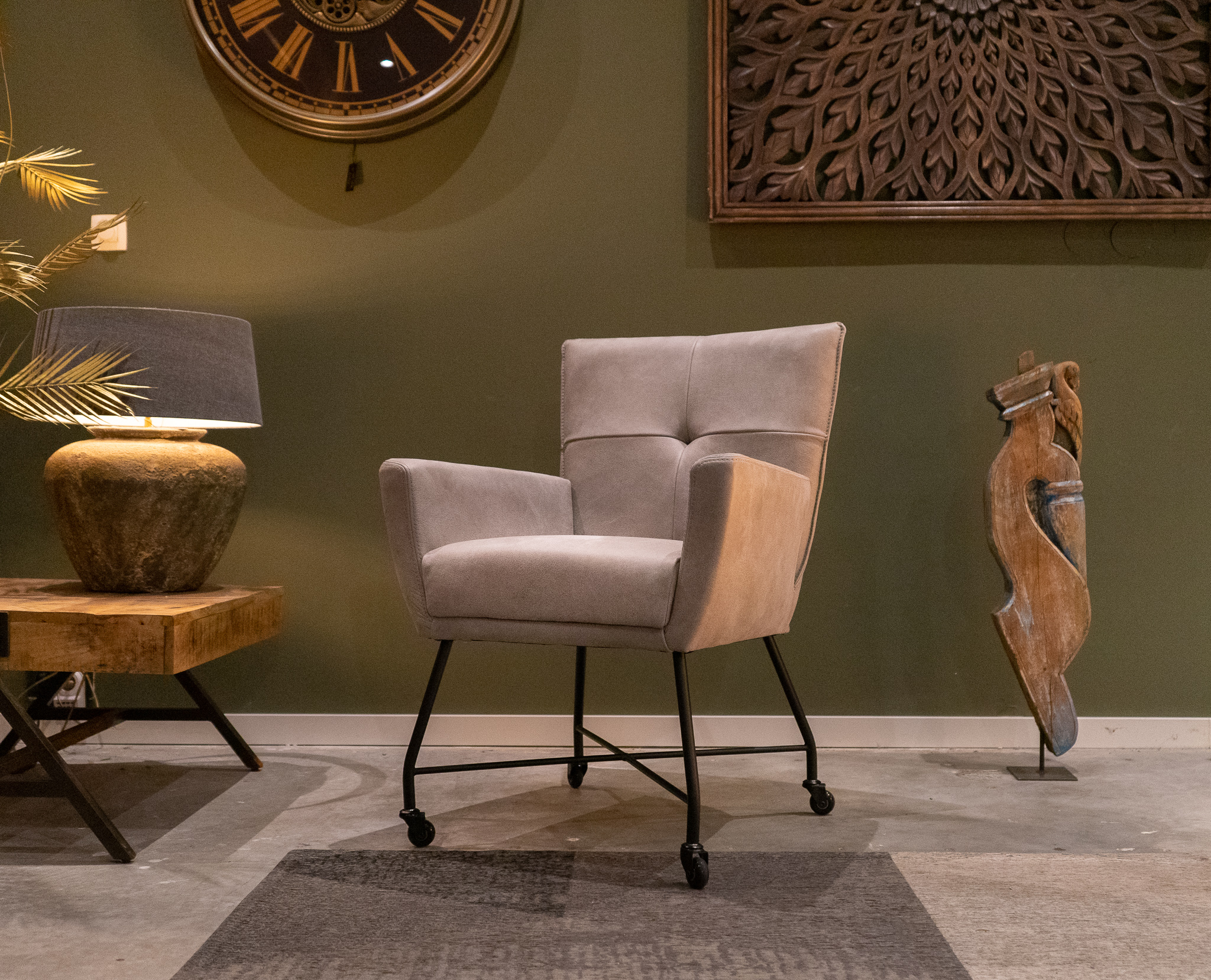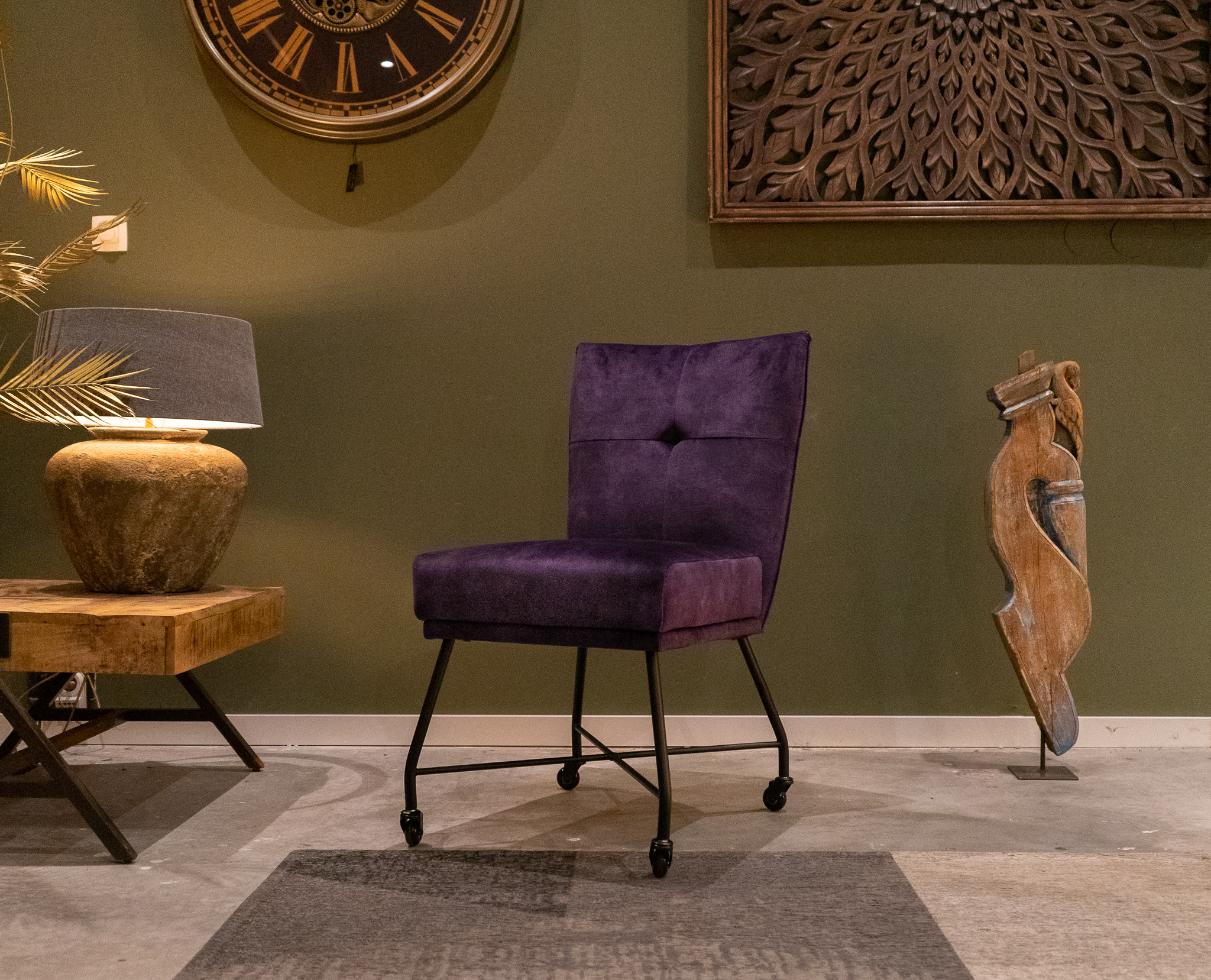 Stoere industriële eetkamerstoel leverbaar in leer en stof, zowel met als zonder wielen en met en zonder armleuning. Dit model leveren we in 2 soorten doorgekleurd leer en in 3 soorten stof waarvan 1 exclusief bij ons verkrijgbaar. Zowel in het stof als leer een zeer luxe eetkamerstoel, leverbaar met of zonder armleuning. Het metalen frame is voorzien van een beschermende poedercoat en maakt de stoere uitstraling compleet. Tevens leverbaar als barkruk of als eetkamerbank tot 240cm!