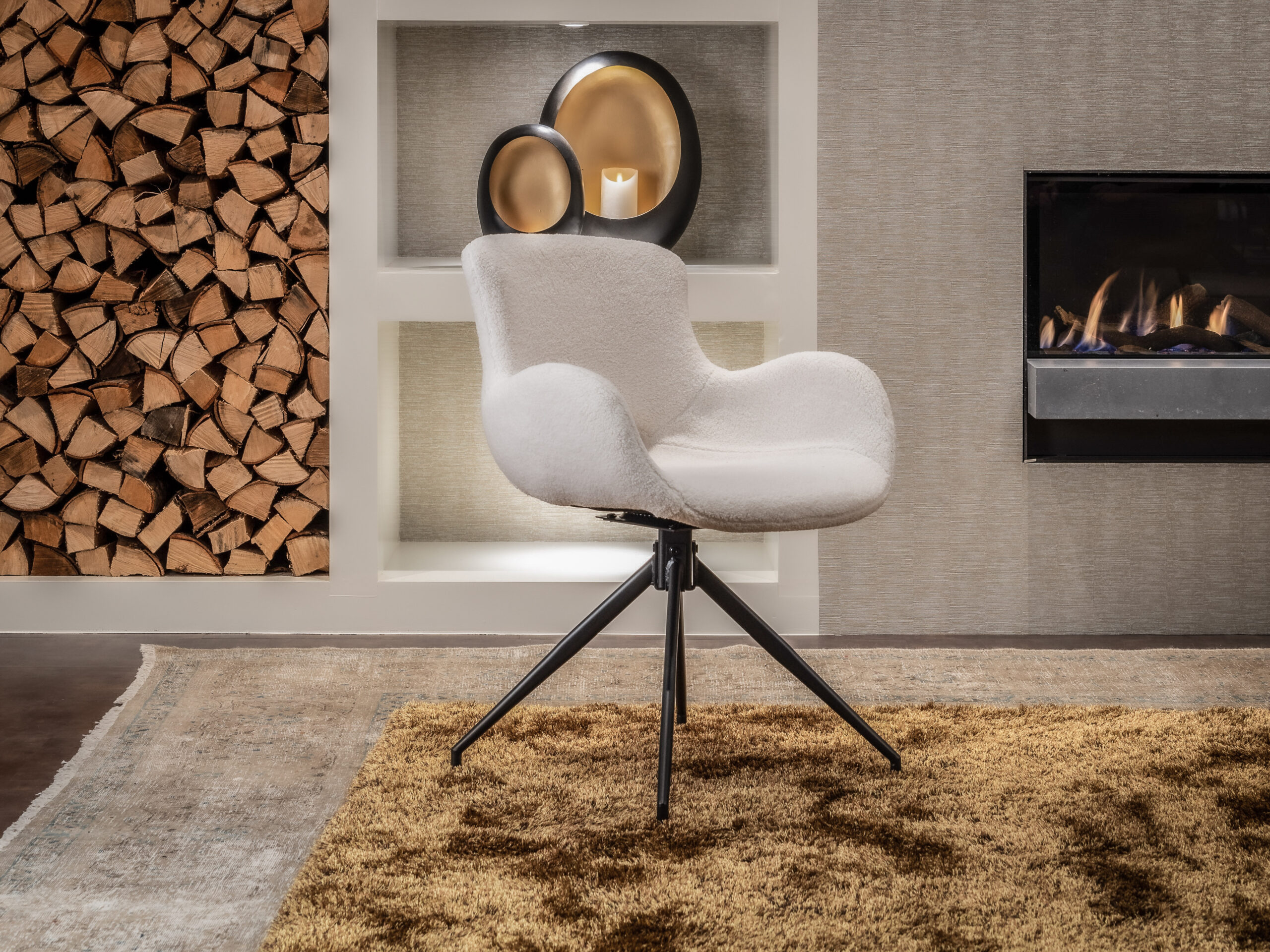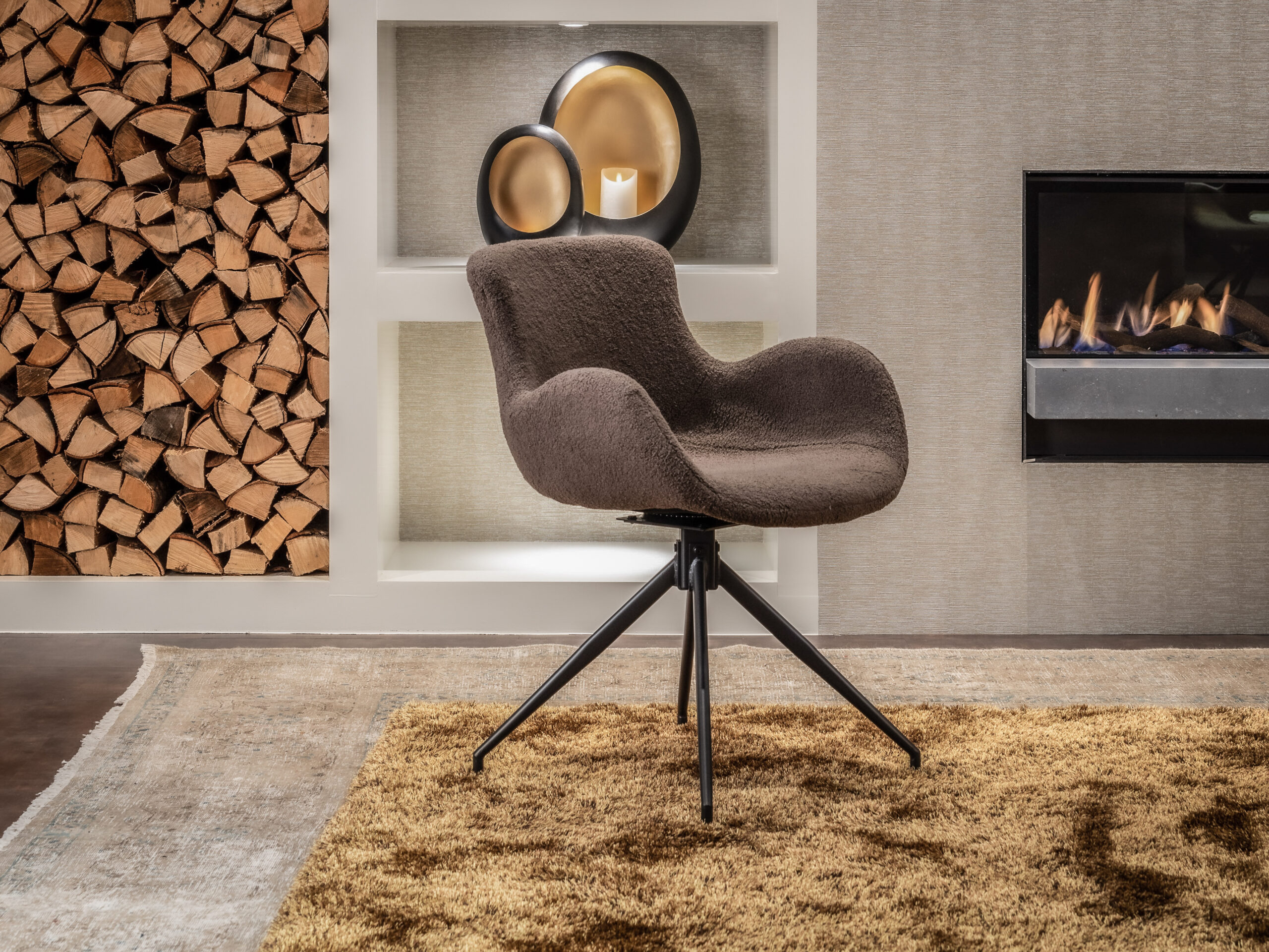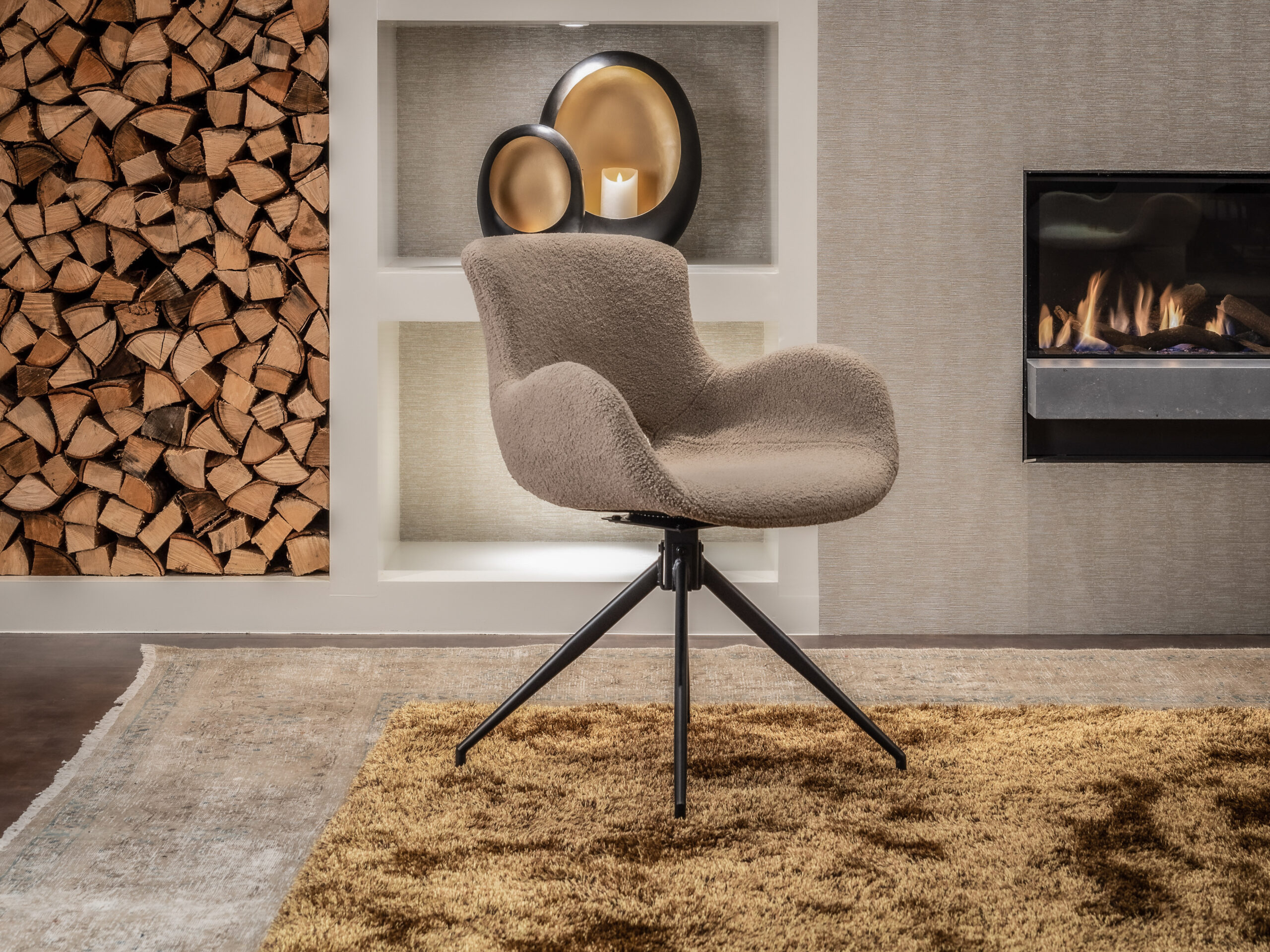 Waanzinnig knuffelbare eetkamerstoel Ottawa direct uit voorraad in 3 kleuren teddy stof (wit lichtbruin & donkerbruin), ook wel bouclé genoemd. Het is natuurlijk leuk om diverse kleuren met elkaar te combineren. Deze zitting van deze elegante eetkamerstoel is zacht, de armleuning is zacht, de rugleuning is zacht en dat in combinatie met de enorm zachte teddy stof maakt dit een ware knuffelbeer!