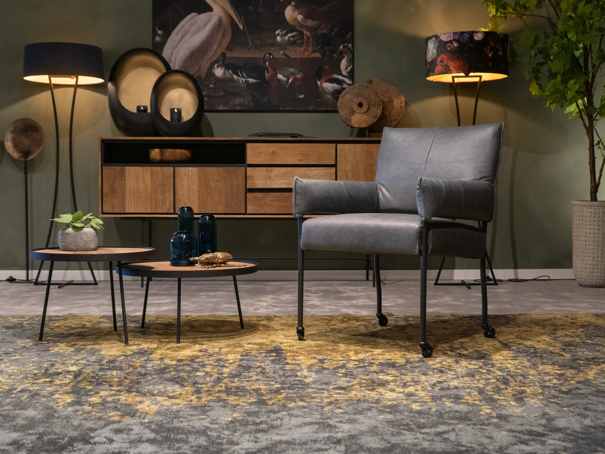 Exclusieve en uiterst comfortabele eetkamerstoel op mooi zwarte skatewielen. Deze in Nederland gemaakte eetkamerstoel leveren we in leer en stof en is tevens verkrijgbaar zonder armleuning. Dit model komt dus in bijzonder veel uitvoeringen en kleuren.