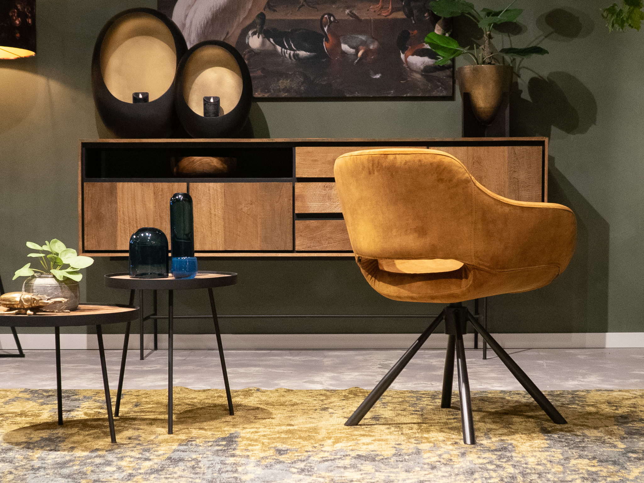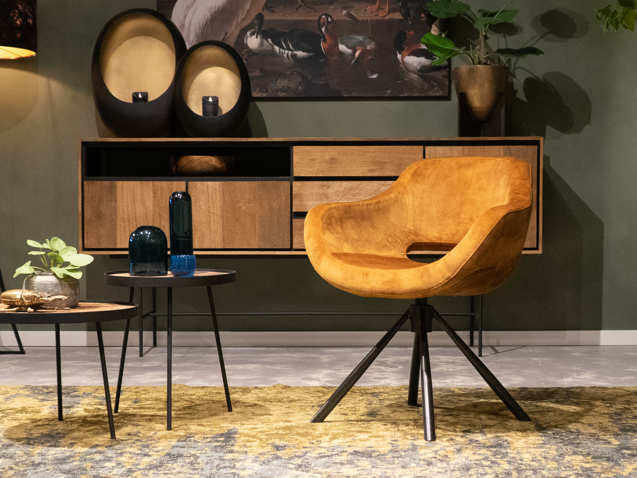 Chique kuipstoel Monsano met vier zwarte poten met auto-return draaifuntie. Deze eetkamerstoel heeft een armleuning en is mooi vlak gestikt rondom. De eetkamerstoel Monsano is verkrijgbaar in stof, bull eco leder en dik doorgekleurd rundleder. In totaal kunt u kiezen uit meer dan 100 kleuren. Kom gerust eens proefzitten in onze showroom of vraag naar de mogelijkheden.