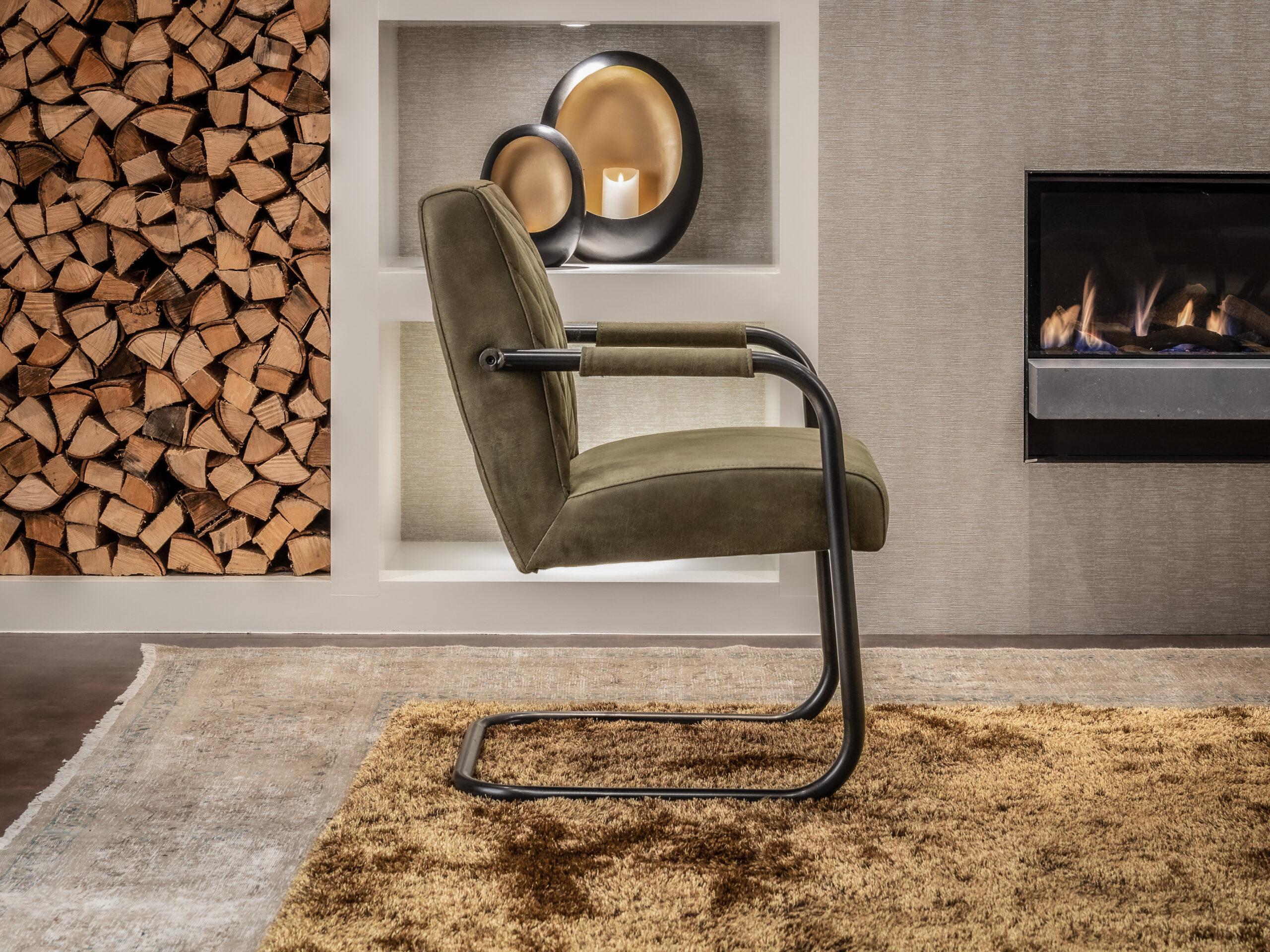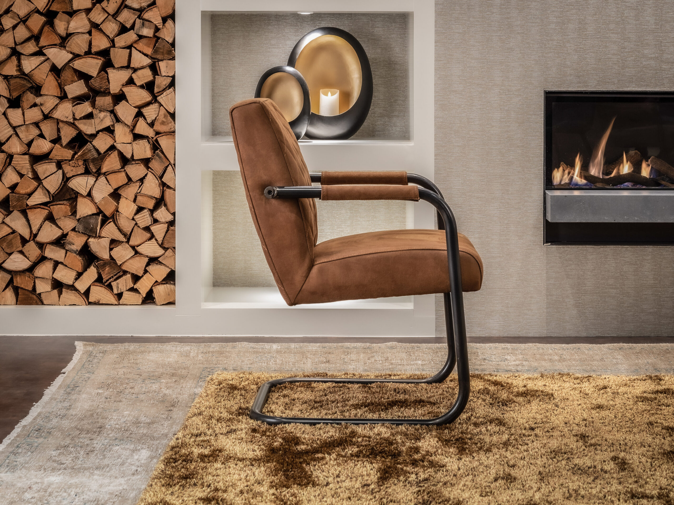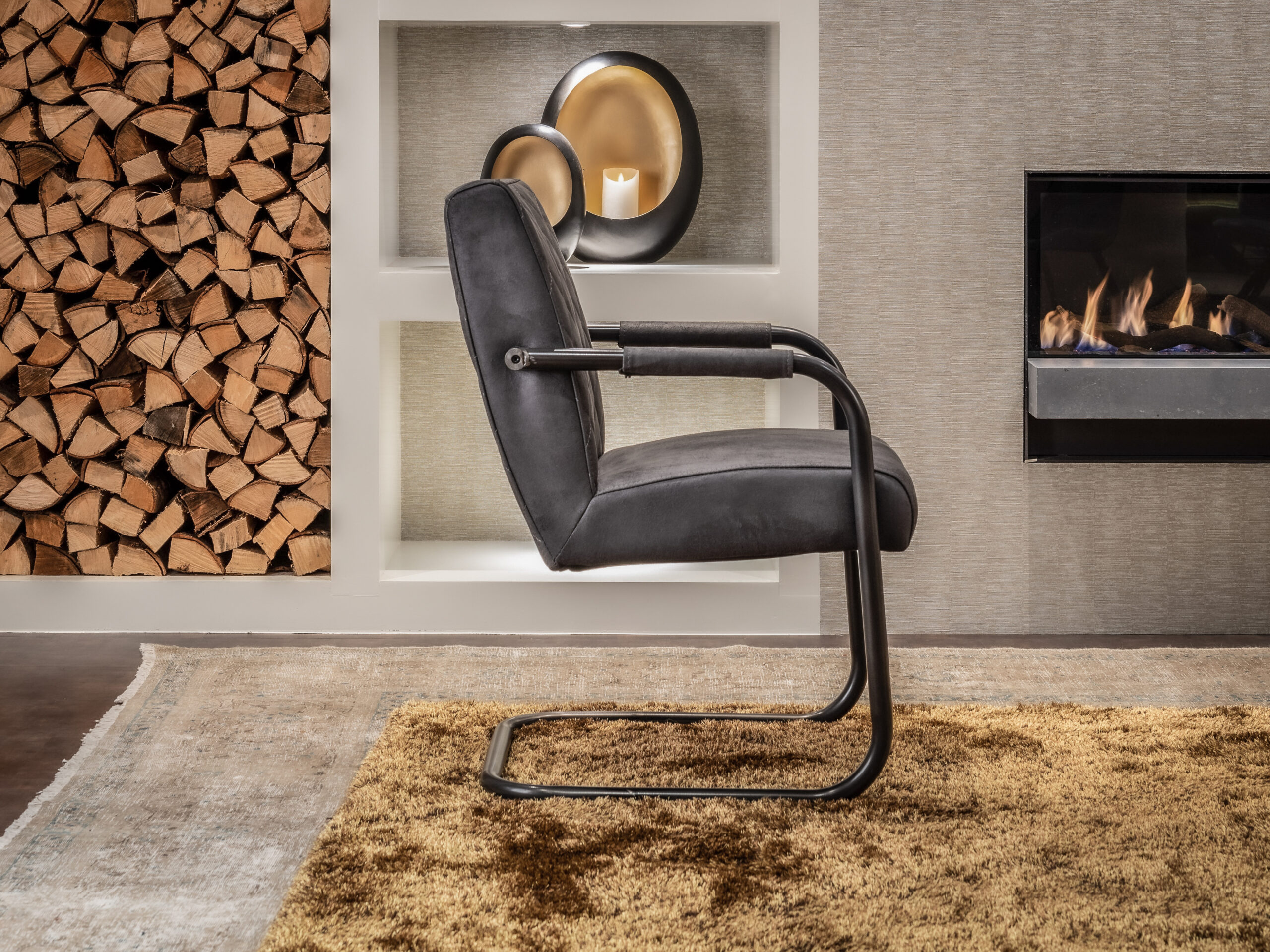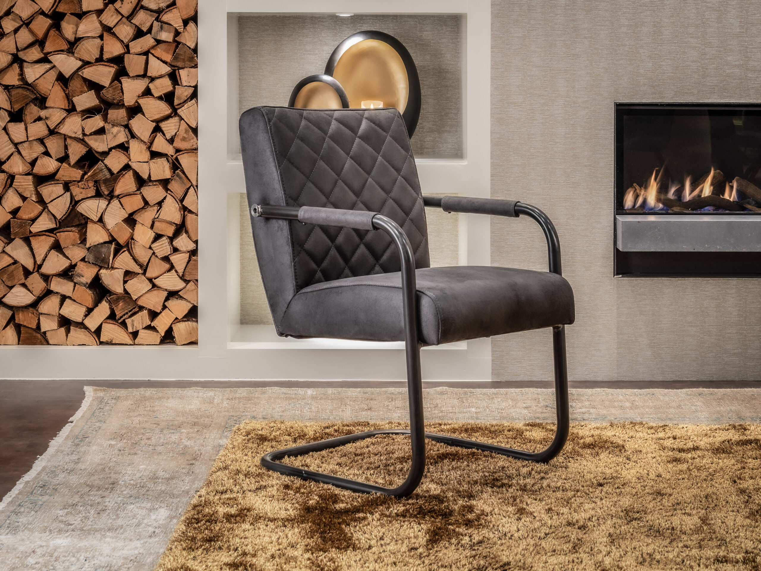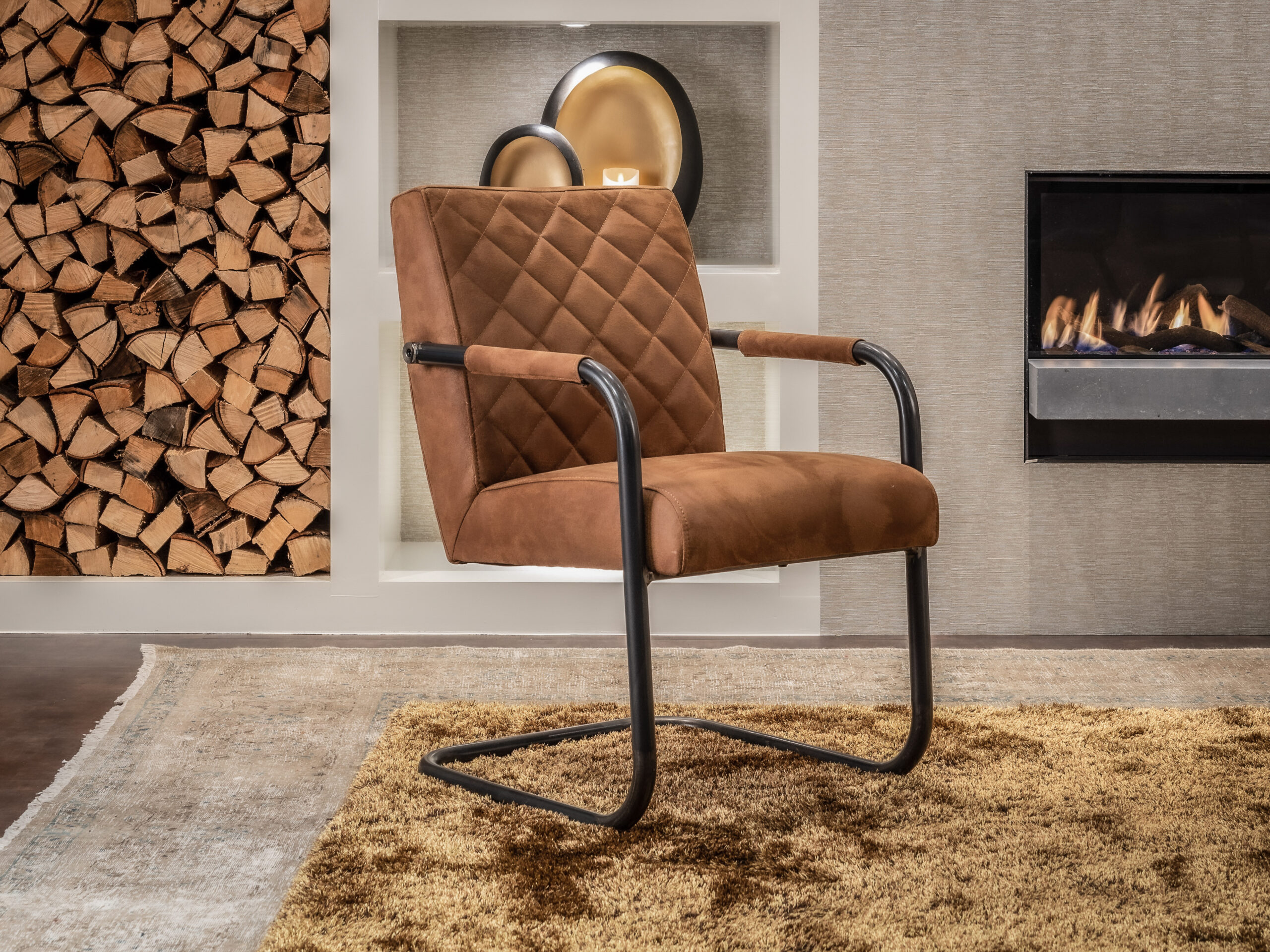 De armleuningen hebben mooie leren accenten met hetzelfde bull eco leder als de kussens. Het is een duurzame stof die goed combineert met andere materialen en heel goed past binnen een industrieel interieur. Deze stoel heeft een comfortabele zitting en rugleuning voor een heerlijk zitcomfort. Doorgaans is deze stoel direct uit voorraad leverbaar in alle kleuren!
