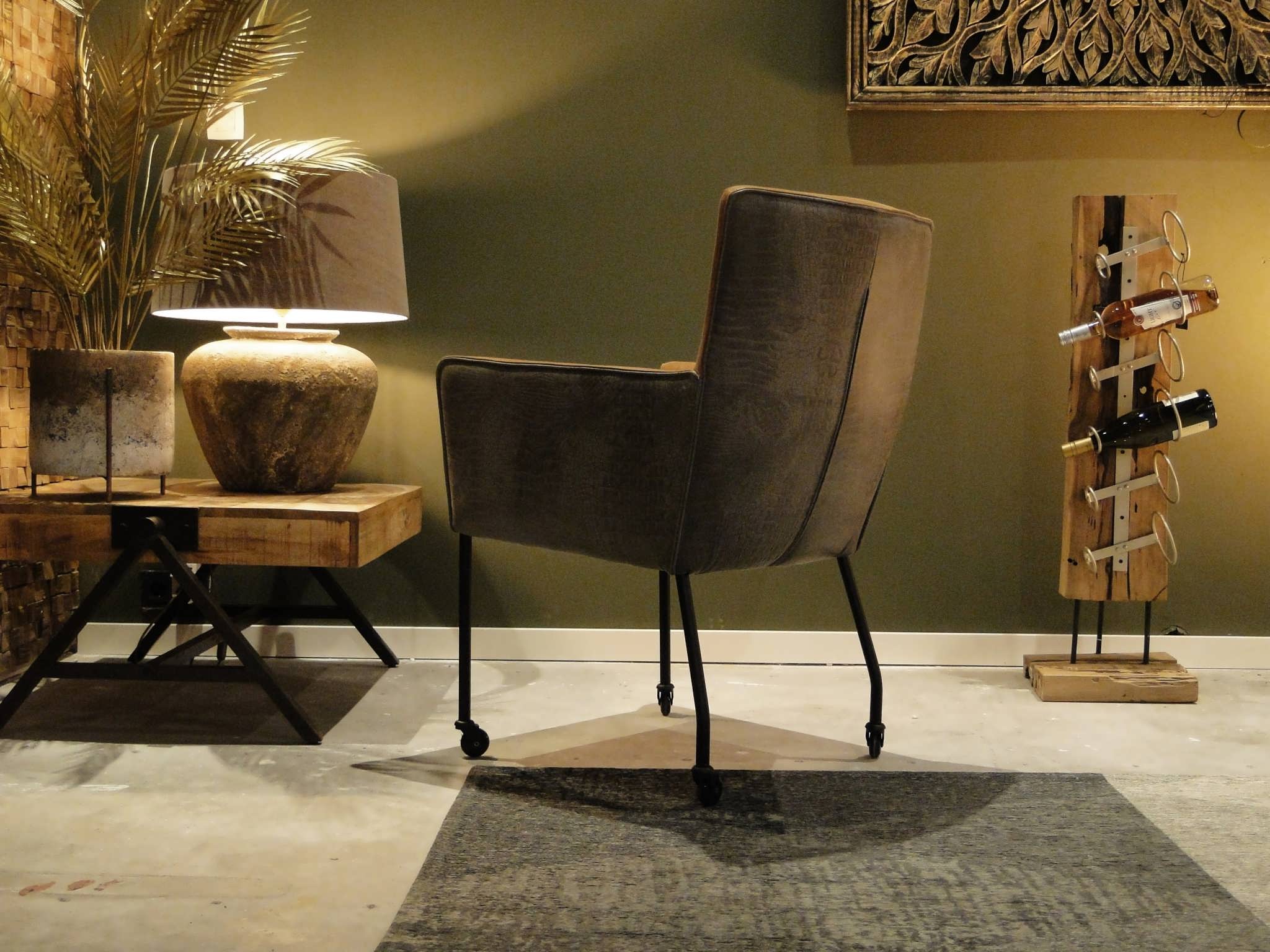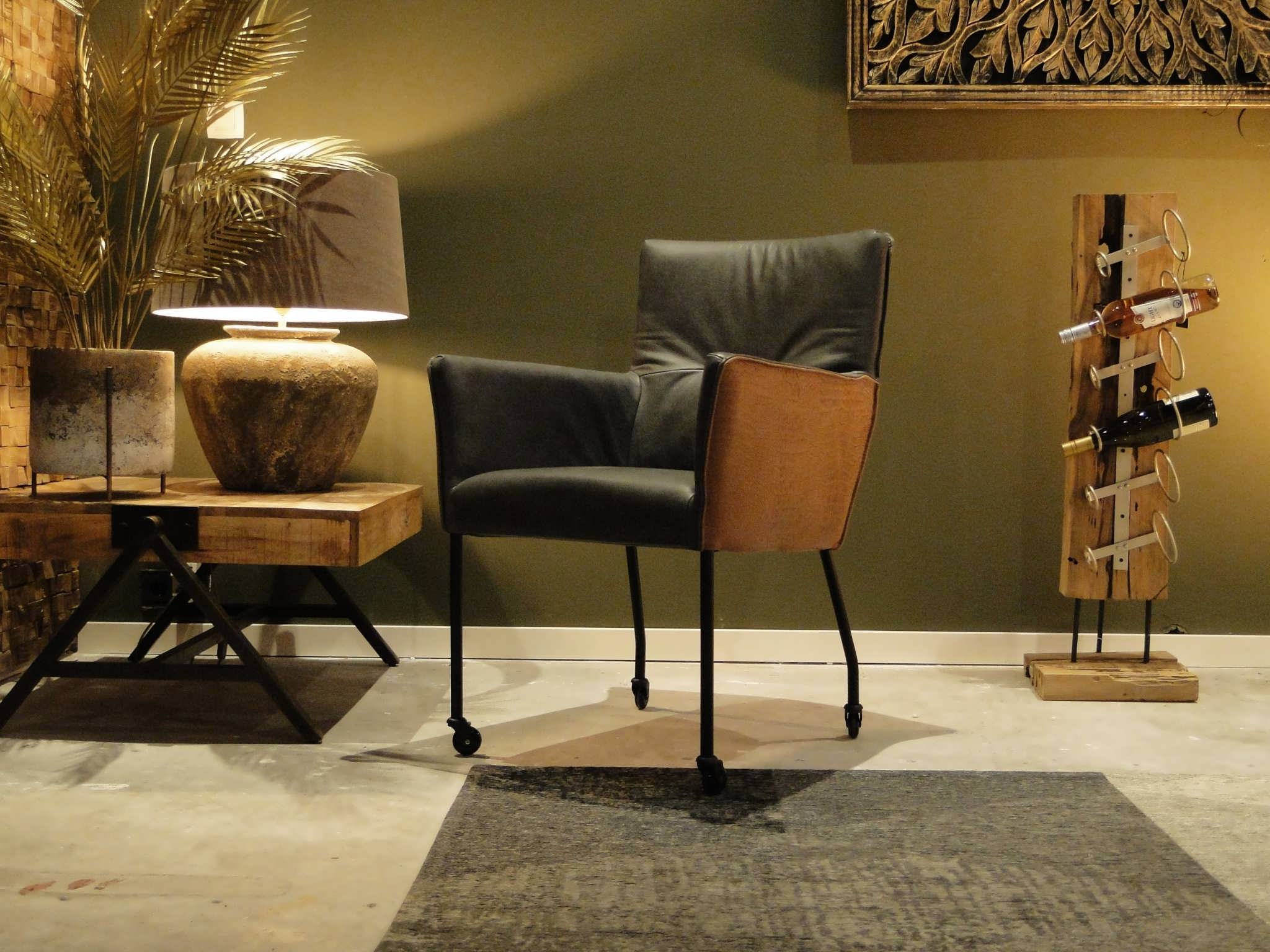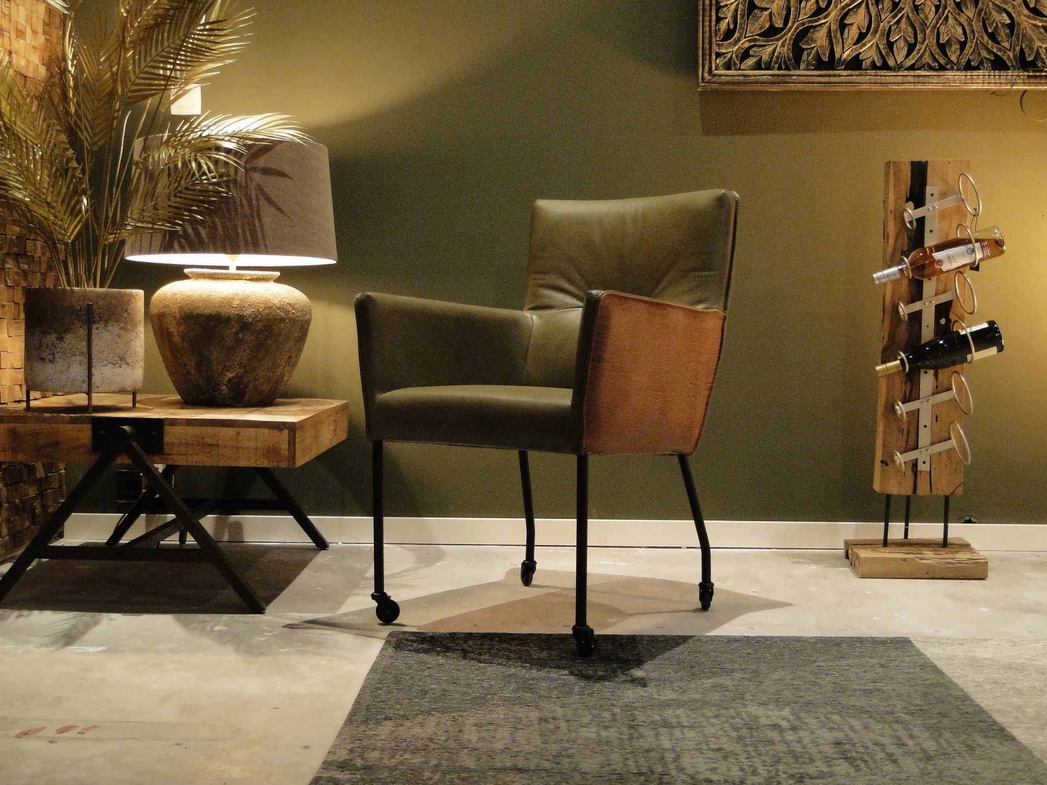 Exclusieve eetkamerstoel leverbaar in leer en stof zowel met als zonder wielen. Dit model leveren we in bijzonder veel uitvoeringen en diverse kleuren. Deze eetkamerstoel is leverbaar in caiman leer met een mooie croq print. Gemaakt in Nederland geeft het veel opties, zo is het ook mogelijk om bijvoorbeeld een achterkant in caiman leer en een voorkant in antigo leer te bestellen. Indien er caiman leer op het zitvlak gekozen wordt moet u er rekening mee houden dat de print over tijd zal vervagen.