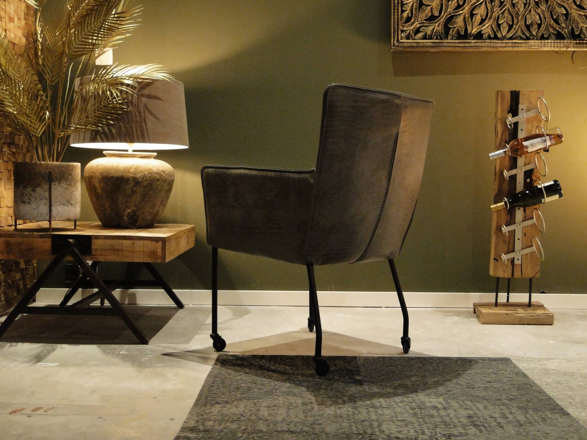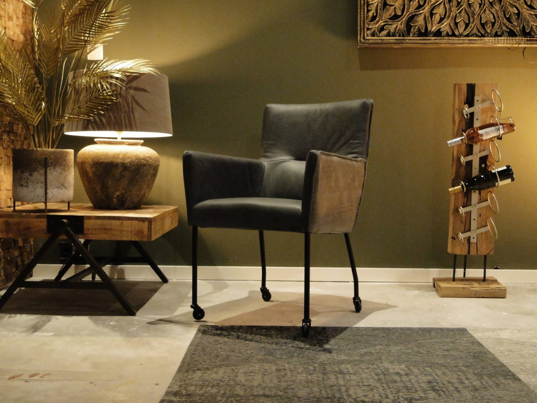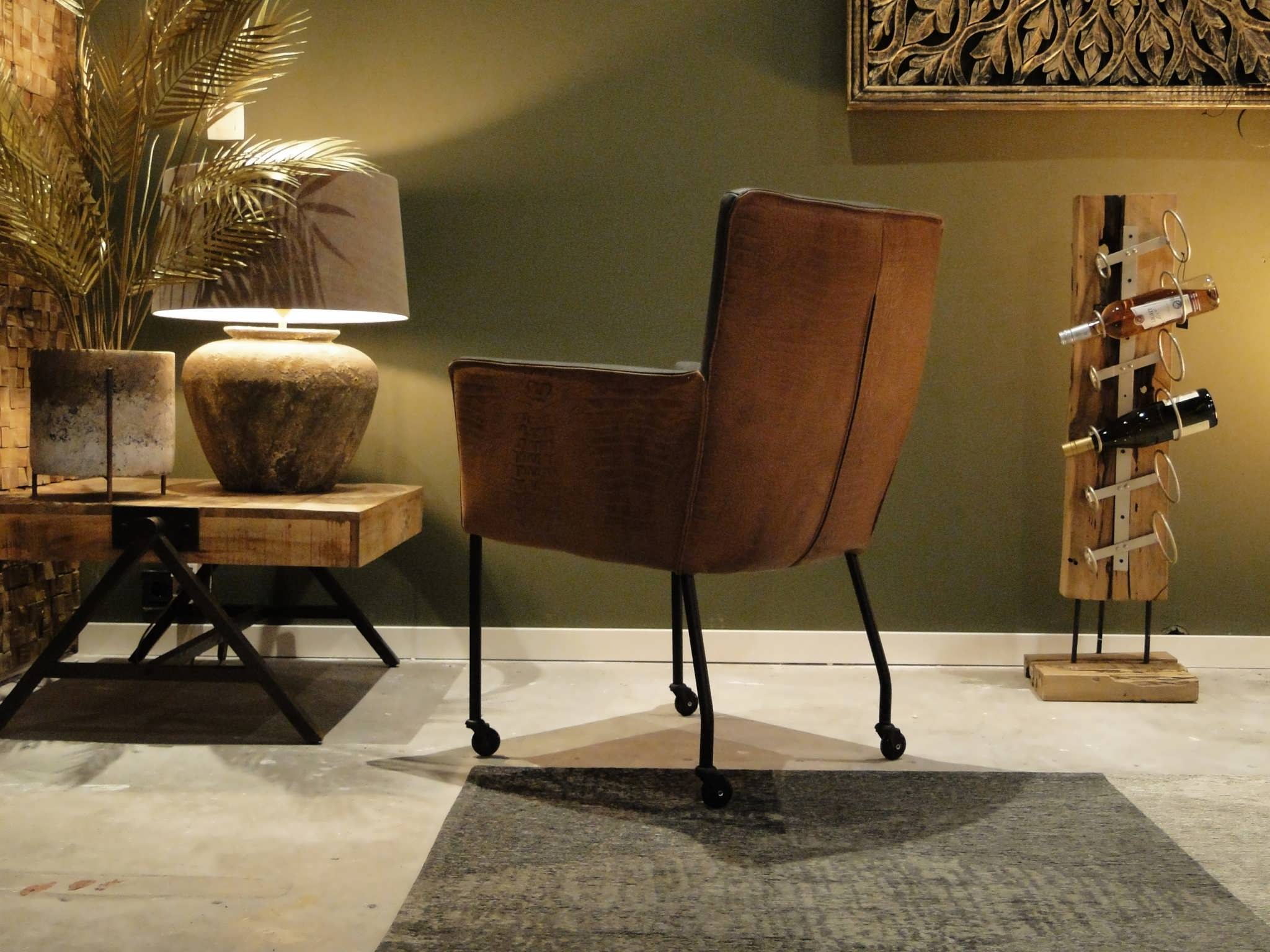 Exclusieve eetkamerstoel leverbaar in leer en stof zowel met als zonder wielen. Dit model leveren we in bijzonder veel uitvoeringen en diverse kleuren. Deze eetkamerstoel is leverbaar in caiman leer met een mooie croq print. Gemaakt in Nederland geeft het veel opties, zo is het ook mogelijk om bijvoorbeeld een achterkant in caiman leer en een voorkant in antigo leer te bestellen. Indien er caiman leer op het zitvlak gekozen wordt moet u er rekening mee houden dat de print over tijd zal vervagen.