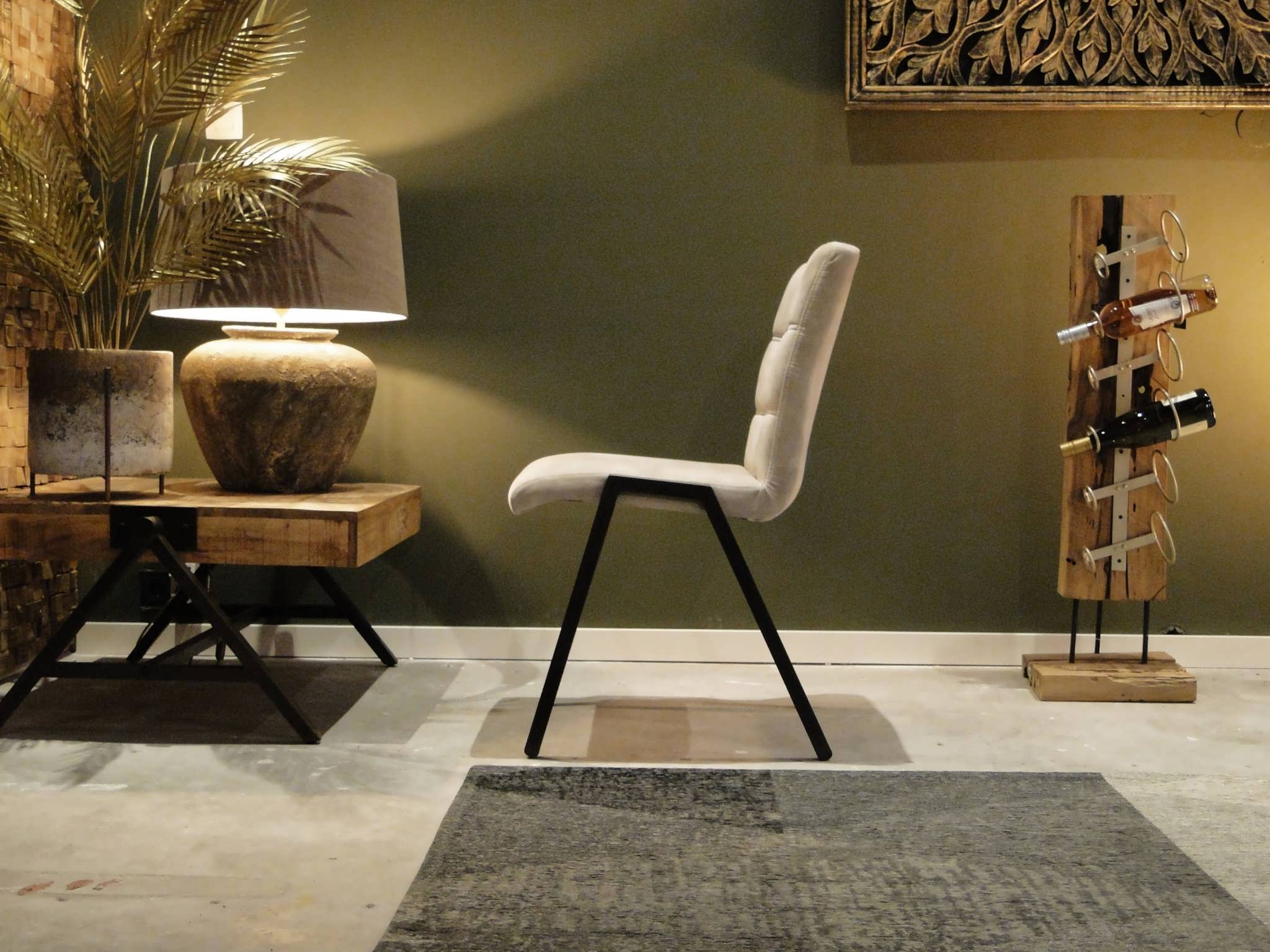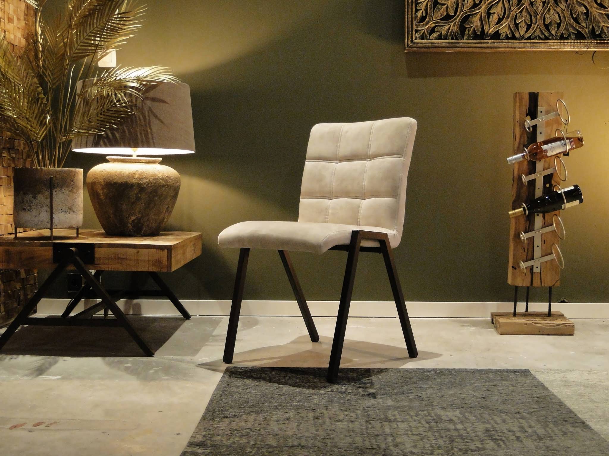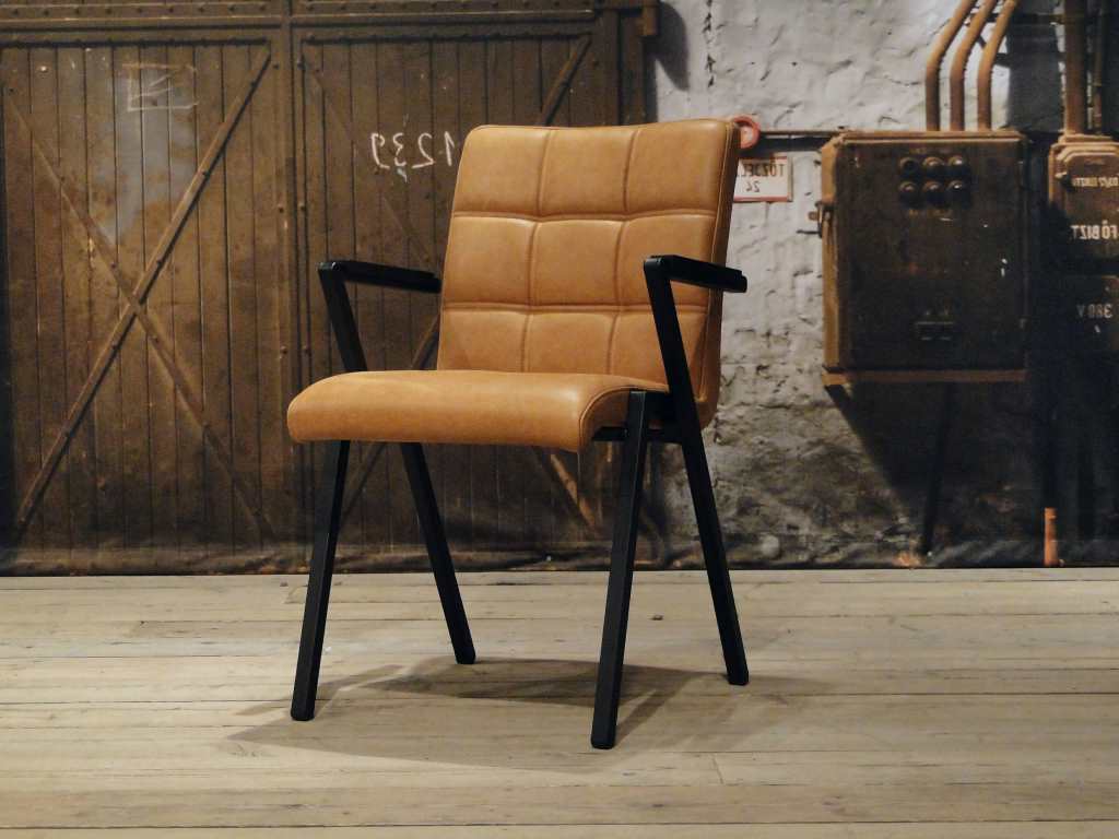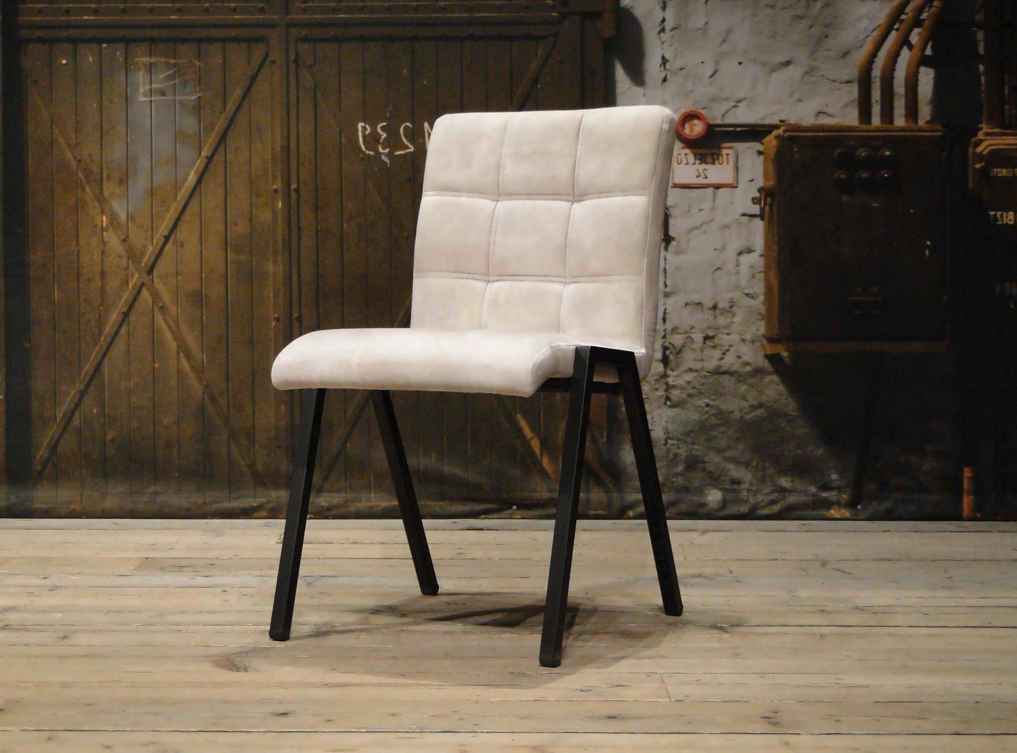 Stoere industriële eetkamerstoel leverbaar in leer en stof. Dit model leveren we in 2 soorten doorgekleurd leer en in 2 soorten stof waarvan 1 exclusief bij ons verkrijgbaar . Zowel in het stof als leer een zeer luxe eetkamerstoel, leverbaar met of zonder armleuning. Het metalen frame is voorzien van een beschermende poedercoat en maakt de stoere industriële uitstraling compleet.