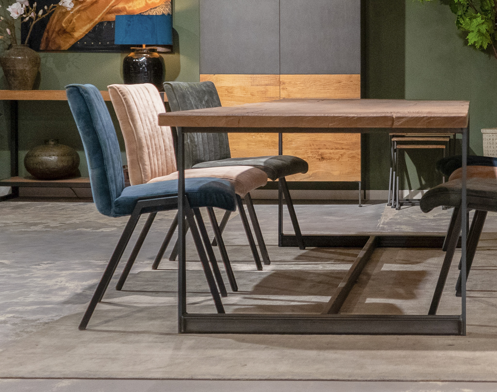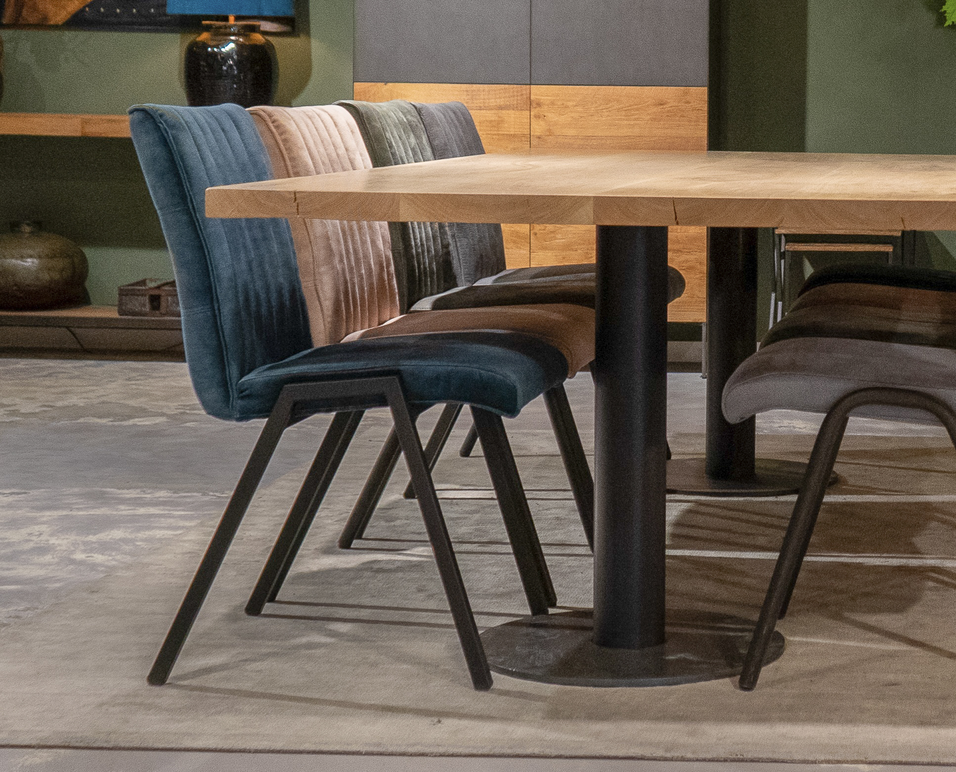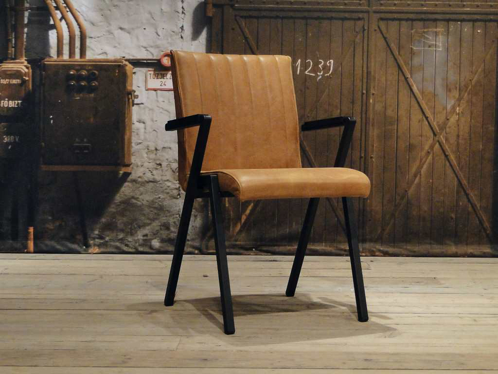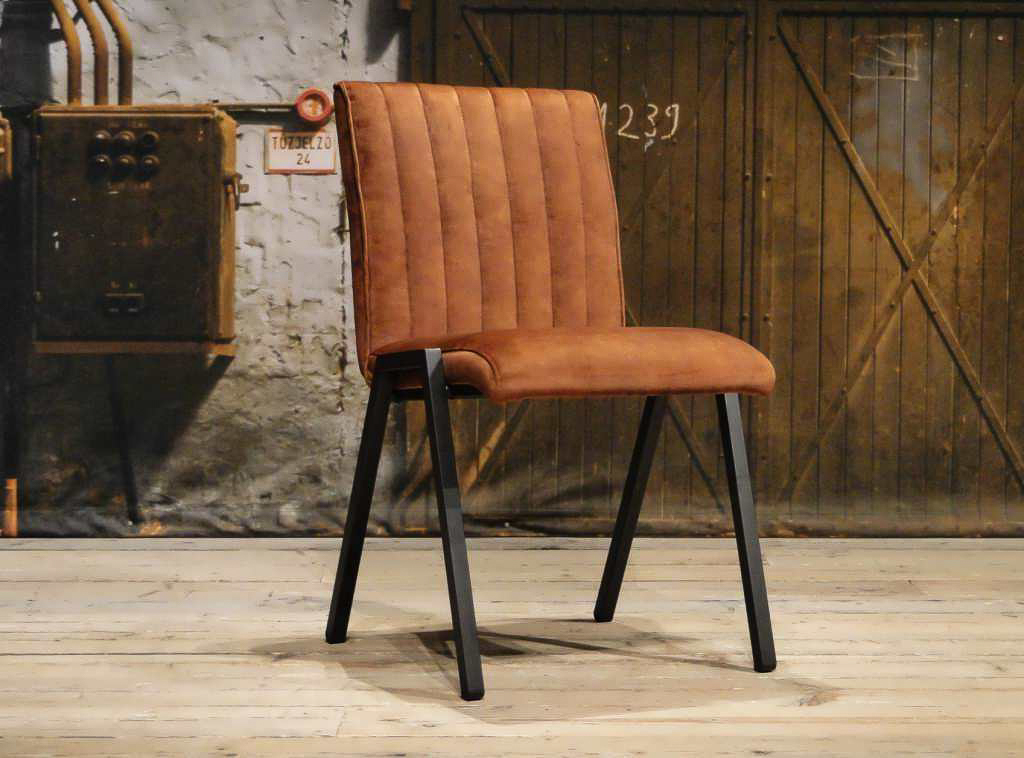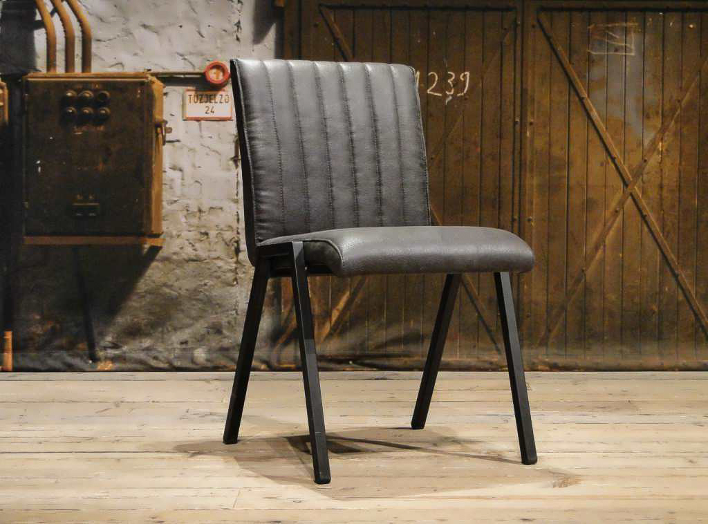 Stoere industriële eetkamerstoel leverbaar in leer en stof. Dit model leveren we in 2 soorten doorgekleurd leer en in 2 soorten stof waarvan 1 exclusief bij ons verkrijgbaar . Zowel in het stof als leer een zeer luxe eetkamerstoel, leverbaar met of zonder armleuning. Het metalen frame is voorzien van een beschermende poedercoat en maakt de stoere industriële uitstraling compleet.