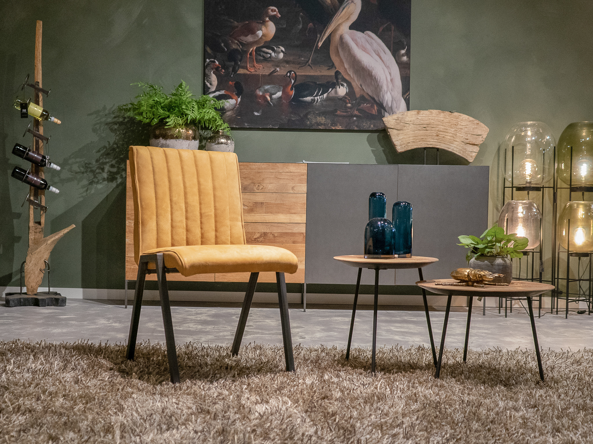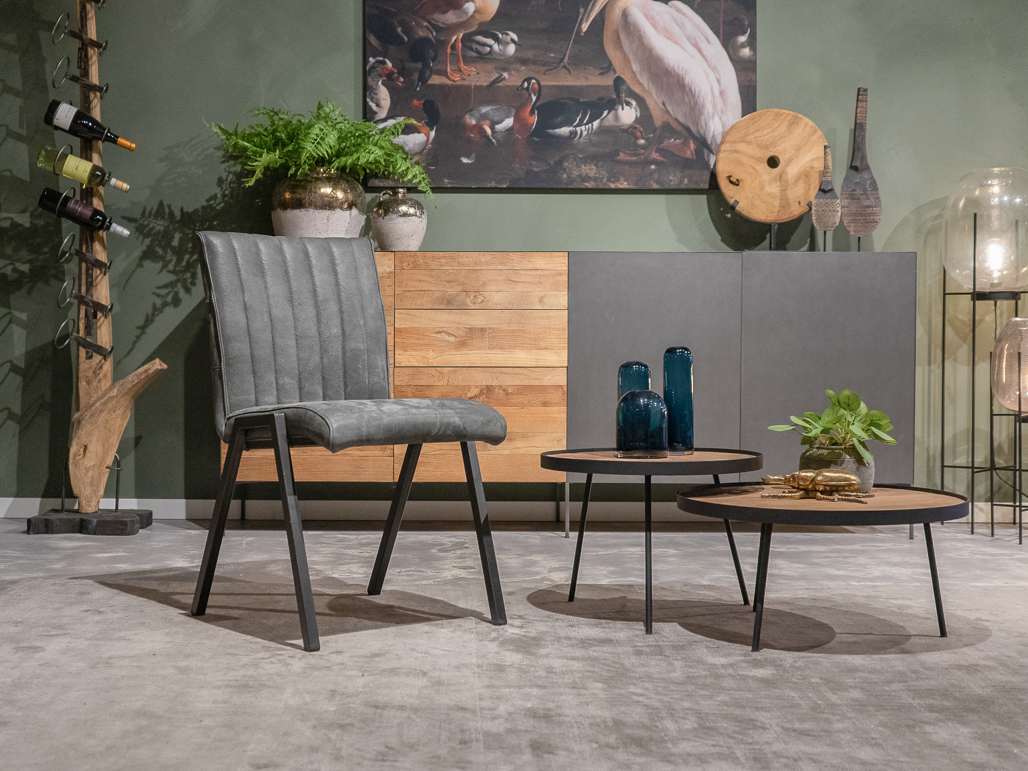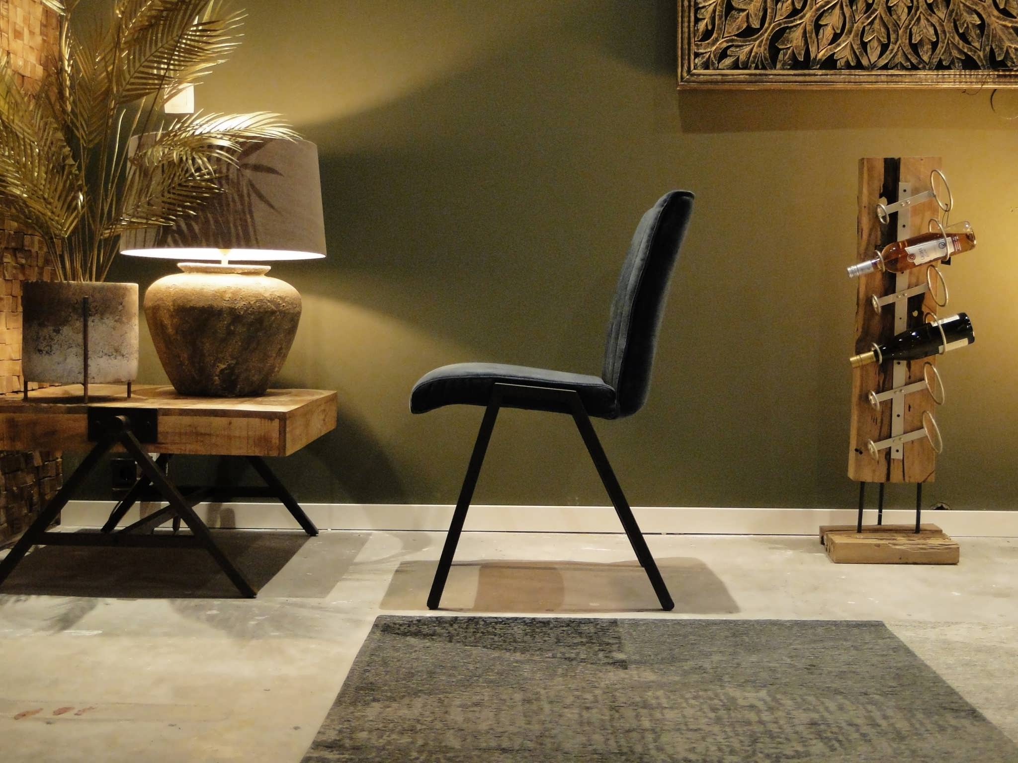 Stoere industriële eetkamerstoel leverbaar in leer en stof. Dit model leveren we in 2 soorten doorgekleurd leer en in 2 soorten stof waarvan 1 exclusief bij ons verkrijgbaar . Zowel in het stof als leer een zeer luxe eetkamerstoel, leverbaar met of zonder armleuning. Het metalen frame is voorzien van een beschermende poedercoat en maakt de stoere industriële uitstraling compleet.