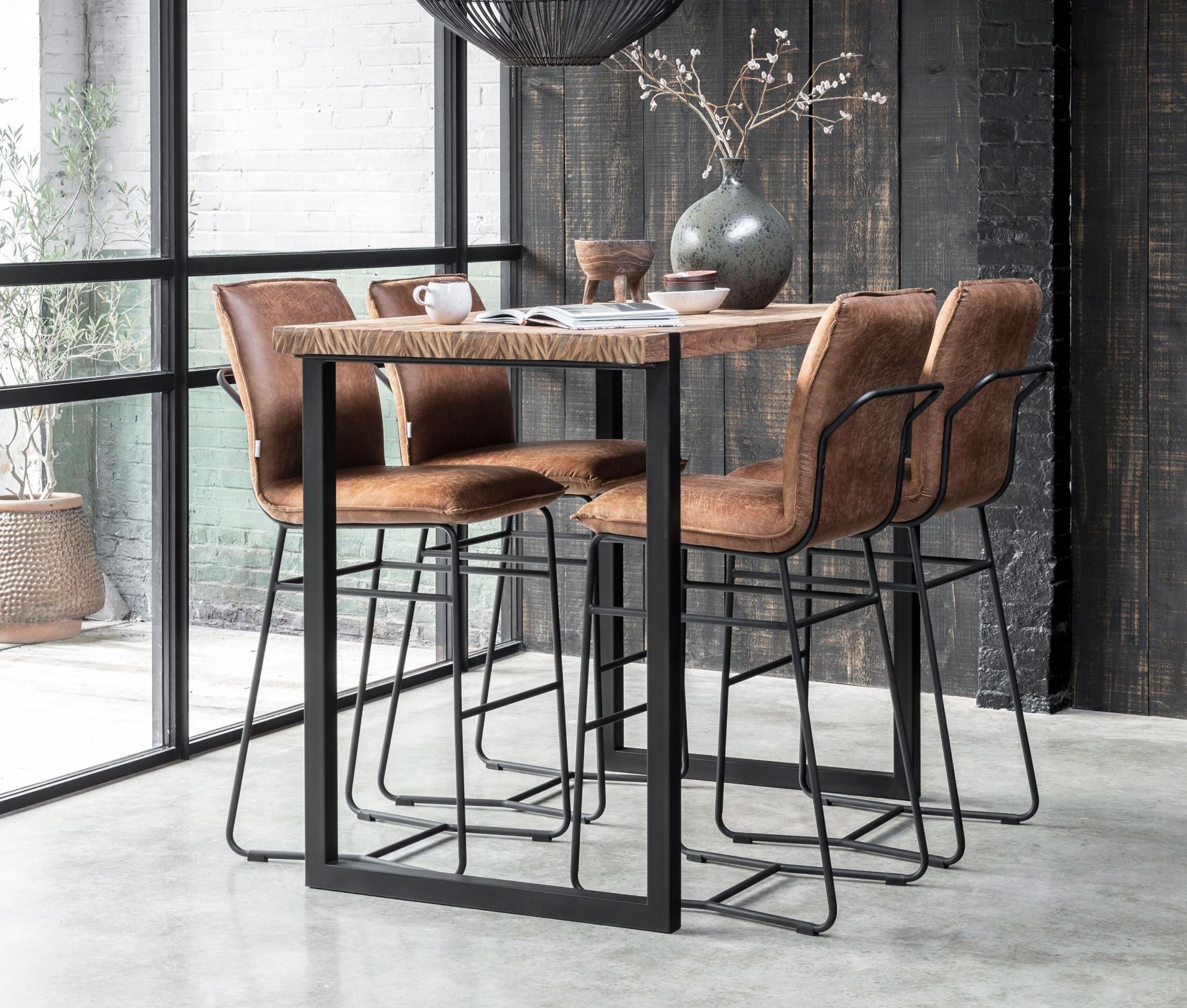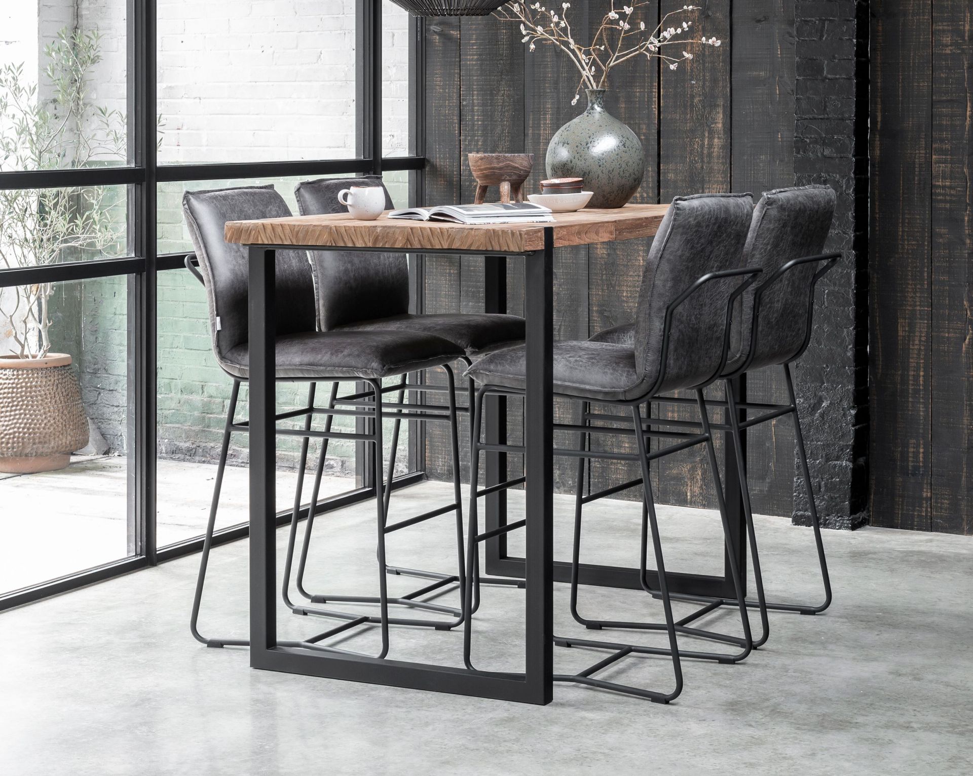 Stoere industriele teak bartafel van oud recycled teak en stalen poten, gemaakt van hetzelfde hout als onze Ferro tafel maar dan met een iets ranker blad. Leverbaar doorgaans direct uit voorraad. Gemaakt van dit hout staat de Noma tafel in alle showrooms en de Ferro en Cavallo tafel staanBartafel ook in onze showroom Sliedrecht.