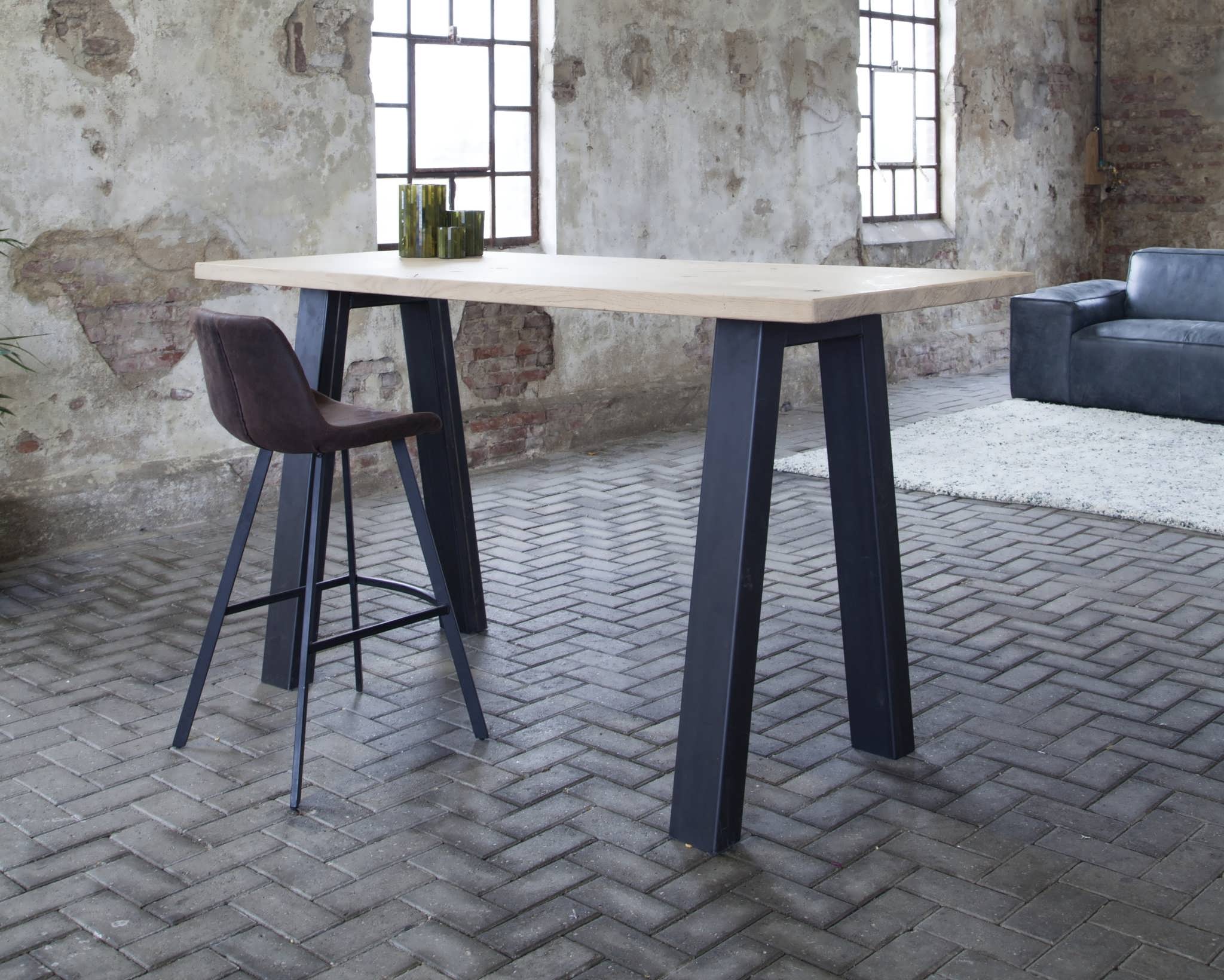 Om de industriële bartafel af te maken, kunt u het blad ook zelf samenstellen. Van afmetingen tot de afwerking van het blad. Het blad is altijd gemaakt van massief eikenhout met een bladdikte van 4 cm of 6 cm. De rest van de afmetingen kunt u ook zelf bepalen. Dit houdt in lengte, breedte en totale hoogte maat. Wilt u de bartafel op 110 cm hoogte bovenkant blad of gaat u voor dezelfde hoogte als uw keukenblad wat vaak rond de 95 cm is? Kiest u voor een tussenhoogte dan is dat voor ons ook geen probleem, dit is per cm aan te geven. Uiteraard kunt u de kleur van het blad kiezen, gaat u voor een frisse lichte kleur (ultra matte lak) of voor een donkere uitstraling (dubbel gerookt oud eiken). Naast deze twee keuzes, zijn er uiteraard nog meer details te kiezen.