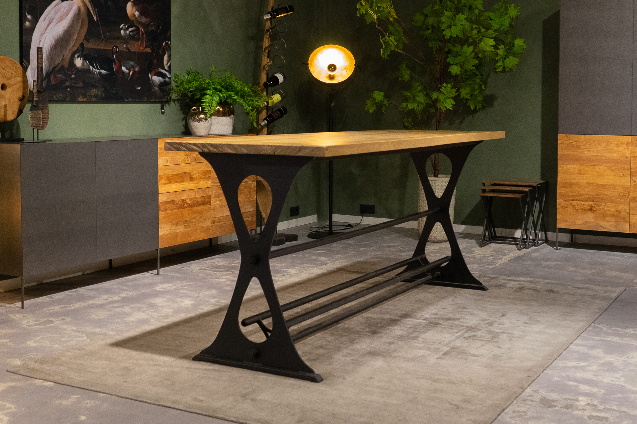 De Atessa bartafel is een uniek ontwerp qua onderstel, dit komt door de druppelvormige uitsneden in het plaatstaal. De gepoedercoate laag geeft een strakke afwerking van het staal en door de grove bouten toch een industriële uitstraling. In combinatie met een massief eiken blad in verschillende afmetingen en afwerkingen, kunt u de tafel naar eigen wens aanpassen.