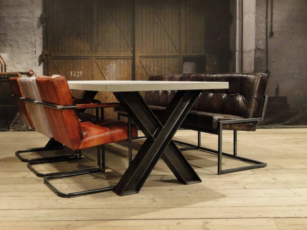 Beton tafel met stalen X poot Prato