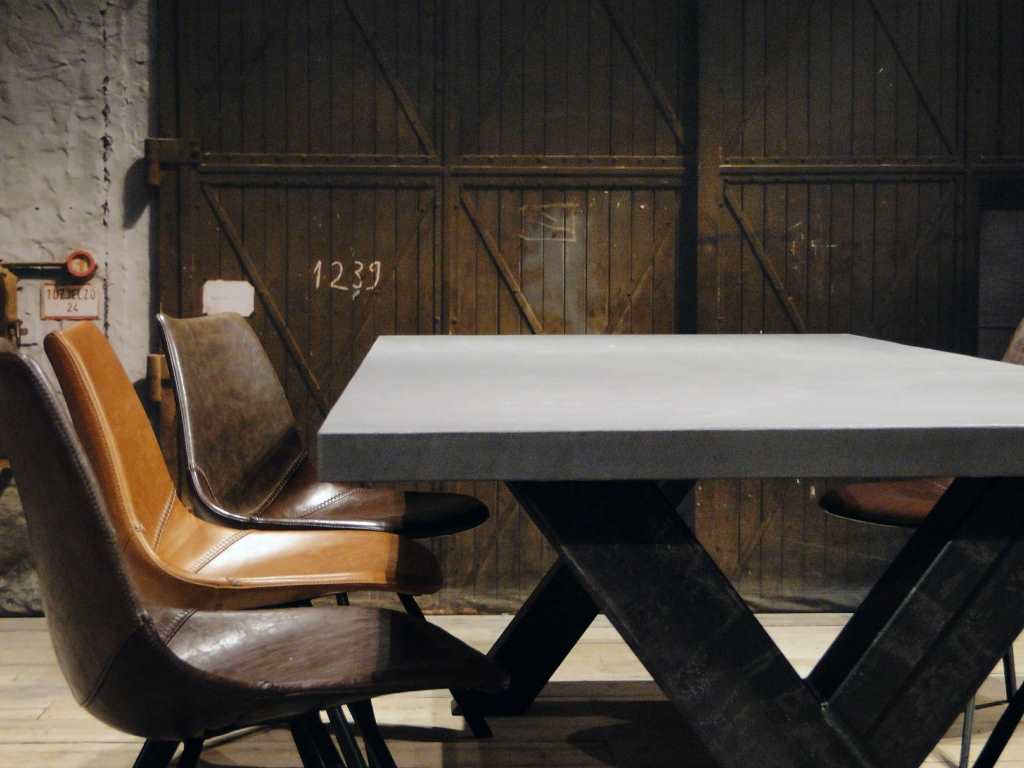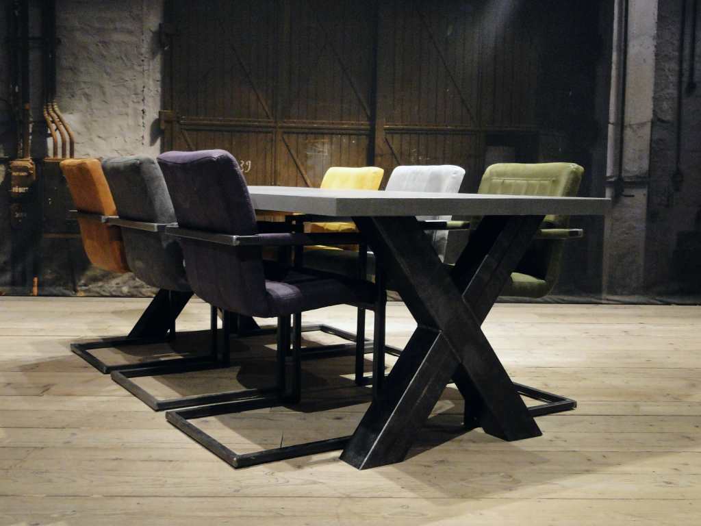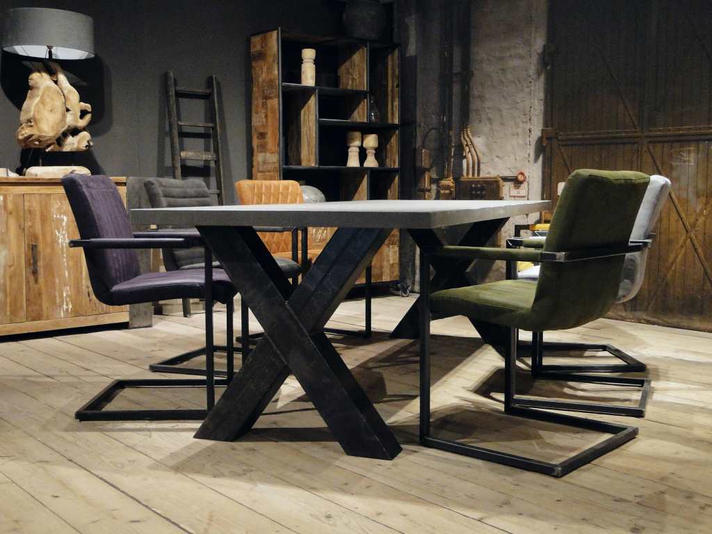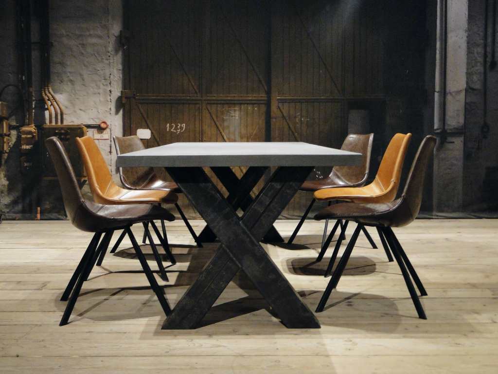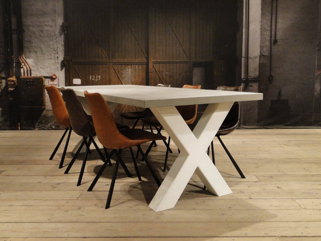Robuuste industriele betontafel, leverbaar in diverse maten en kleuren met een keuze uit diverse stalen onderstellen. Deze industriele betontafel kan tegen een stootje, echt gegoten beton met een finish welke hem uitermate vlekwerend maakt. Naast rechthoekige exemplaren hebben wij ook ronde industriele betontafels, vierkant is ook geen probleem. Ga je voor een zwarte poot met een grijs blad, of kies je een RAL gespoten onderstel met een antraciet of zwart betonblad, allemaal mogelijk en allemaal mooi!
