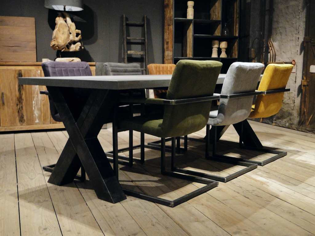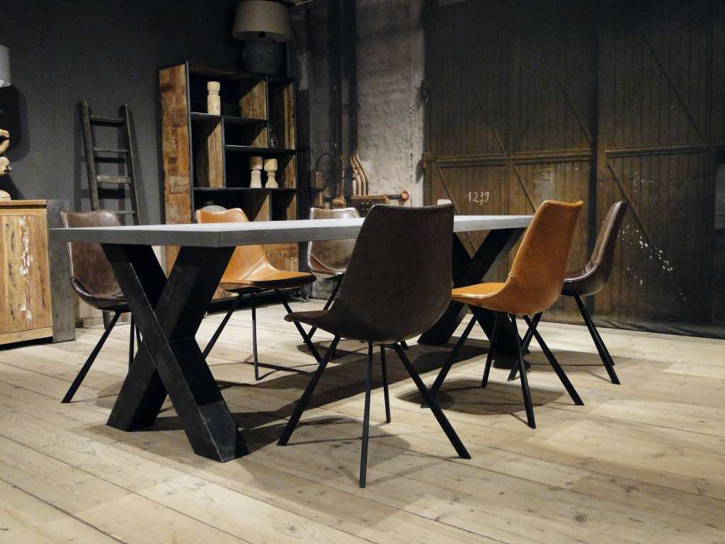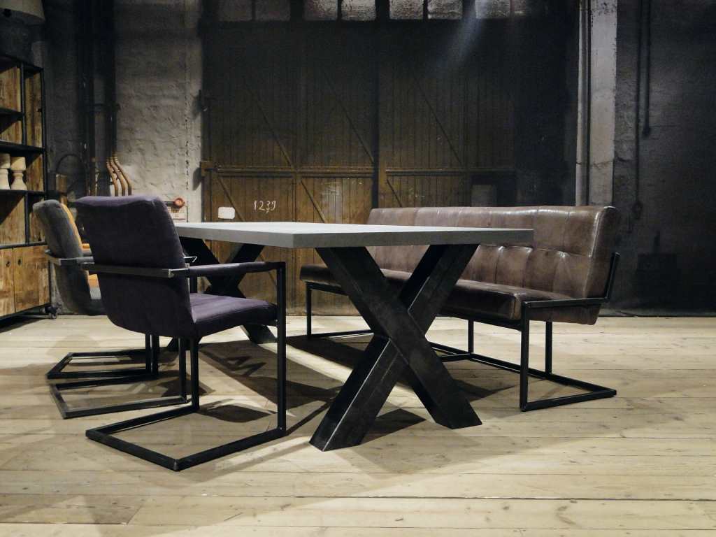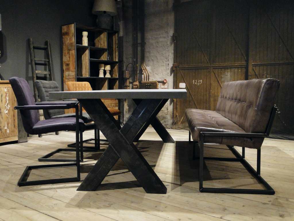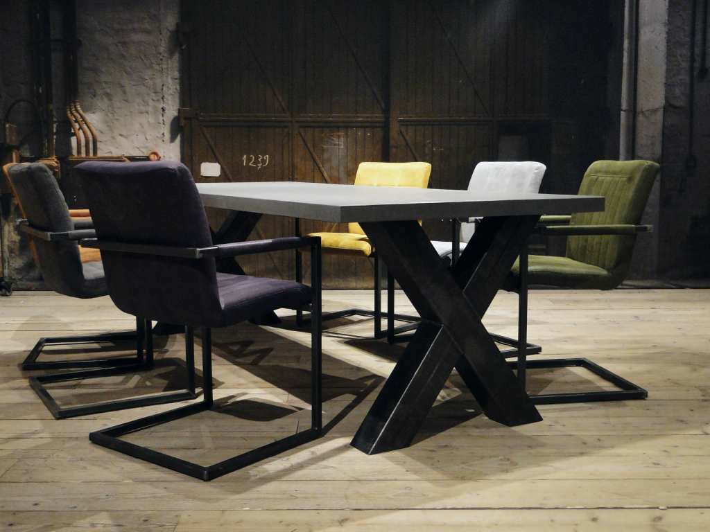Robuuste industriele betontafel, leverbaar in diverse maten en kleuren met een keuze uit diverse stalen onderstellen. Deze industriele betontafel kan tegen een stootje, echt gegoten beton met een finish welke hem uitermate vlekwerend maakt. Naast rechthoekige exemplaren hebben wij ook ronde industriele betontafels, vierkant is ook geen probleem. Ga je voor een zwarte poot met een grijs blad, of kies je een RAL gespoten onderstel met een antraciet of zwart betonblad, allemaal mogelijk en allemaal mooi!