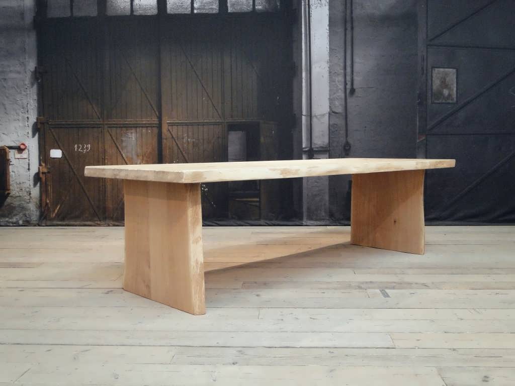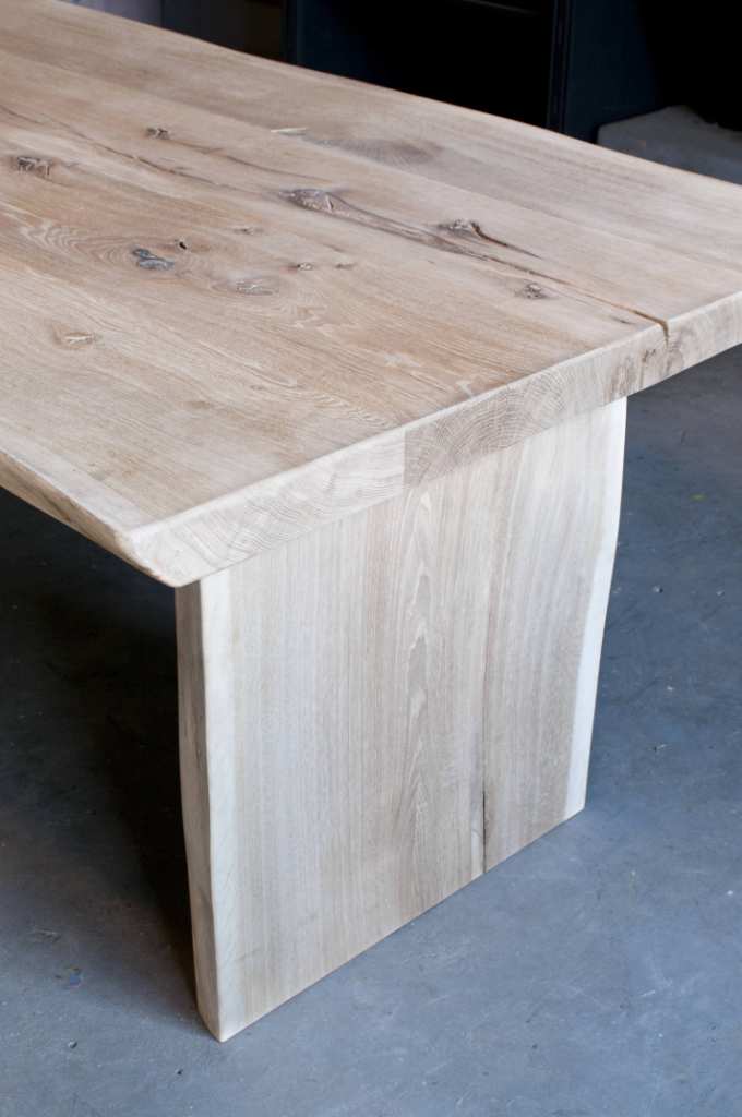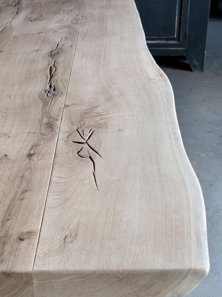 Minstens 100 jaar duurt het, voor de stam van een eik dik en sterk genoeg is om er robuuste tafels met slechts 3 of 4 brede planken van te maken. Het hout wordt zorgvuldig geselecteerd uit duurzaam beheerde Duitse en Franse productiebossen. Alleen het mooiste en beste hout wordt geselecteerd om dit model van te maken. Na het drogingsproces worden de juiste planken geselecteerd om uw geheel op maat gemaakte tafel van te maken. Dit model uit eigen werkplaats is ook leverbaar groter dan een 3 meter tafel, zelfs tot wel 4 meter lang en 120cm breed. Voor tafels groter dan 3 meter vragen we wel wat assisterende spierballen bij levering. Montage verzorgen wij.