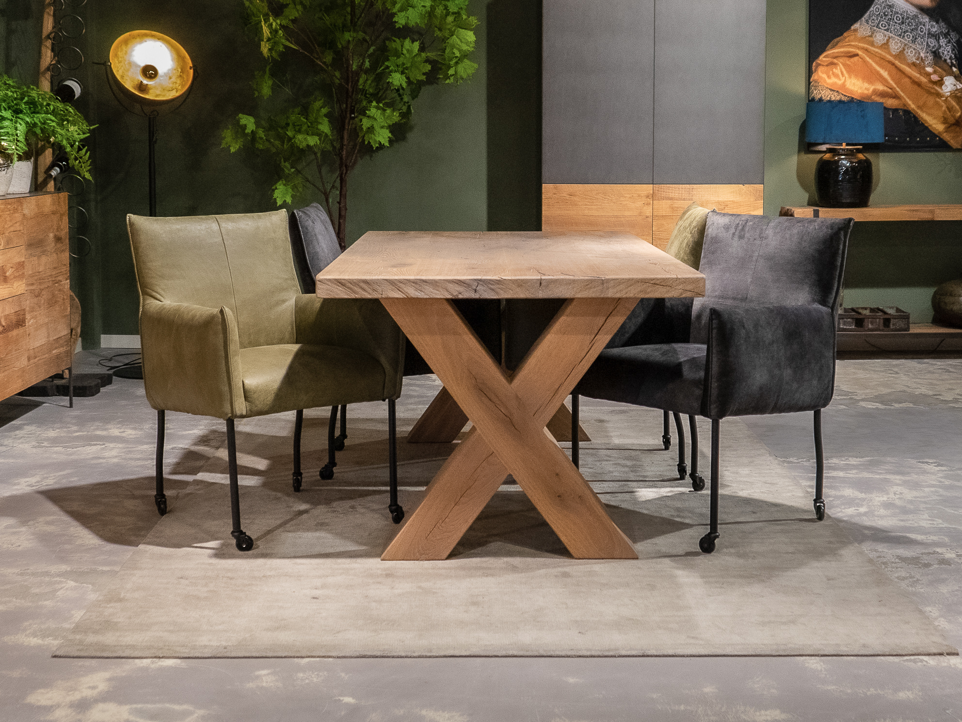 In beide showrooms vindt u een ruim aanbod van onze eigen maatwerk tafels, de diverse behandelingen, blad stijlen en afwerkingen van het tafelblad kunt u hier in het echt zien. We hebben echter niet alle tafels in de showroom staan, bent u op zoek naar een specifiek model, neem dan contact op om te horen of en in welke showroom dat model staat.