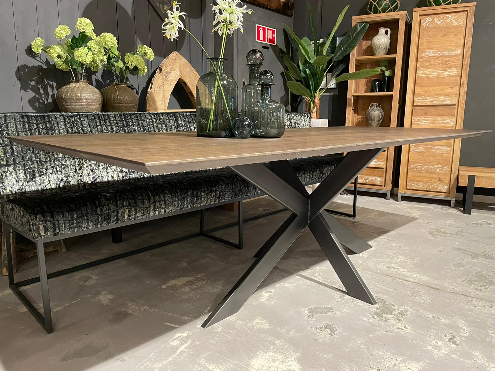 De Vesoul is een eettafel uit onze collectie die u niet kunt missen. Door zijn opvallende ranke matrix onderstel, ook wel spinnenpoot genoemd is deze tafel een opvallende verschijning en een ideale partner voor een eetkamerbank. Daarnaast is deze tafel ook ideaal om aan de kopse kant te zitten. Het blad is gemaakt van 3cm massief eiken en is standaard verjongd. Deze tafel is verkrijgbaar in veel verschillende maten.